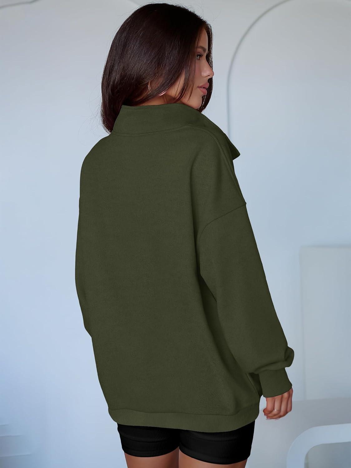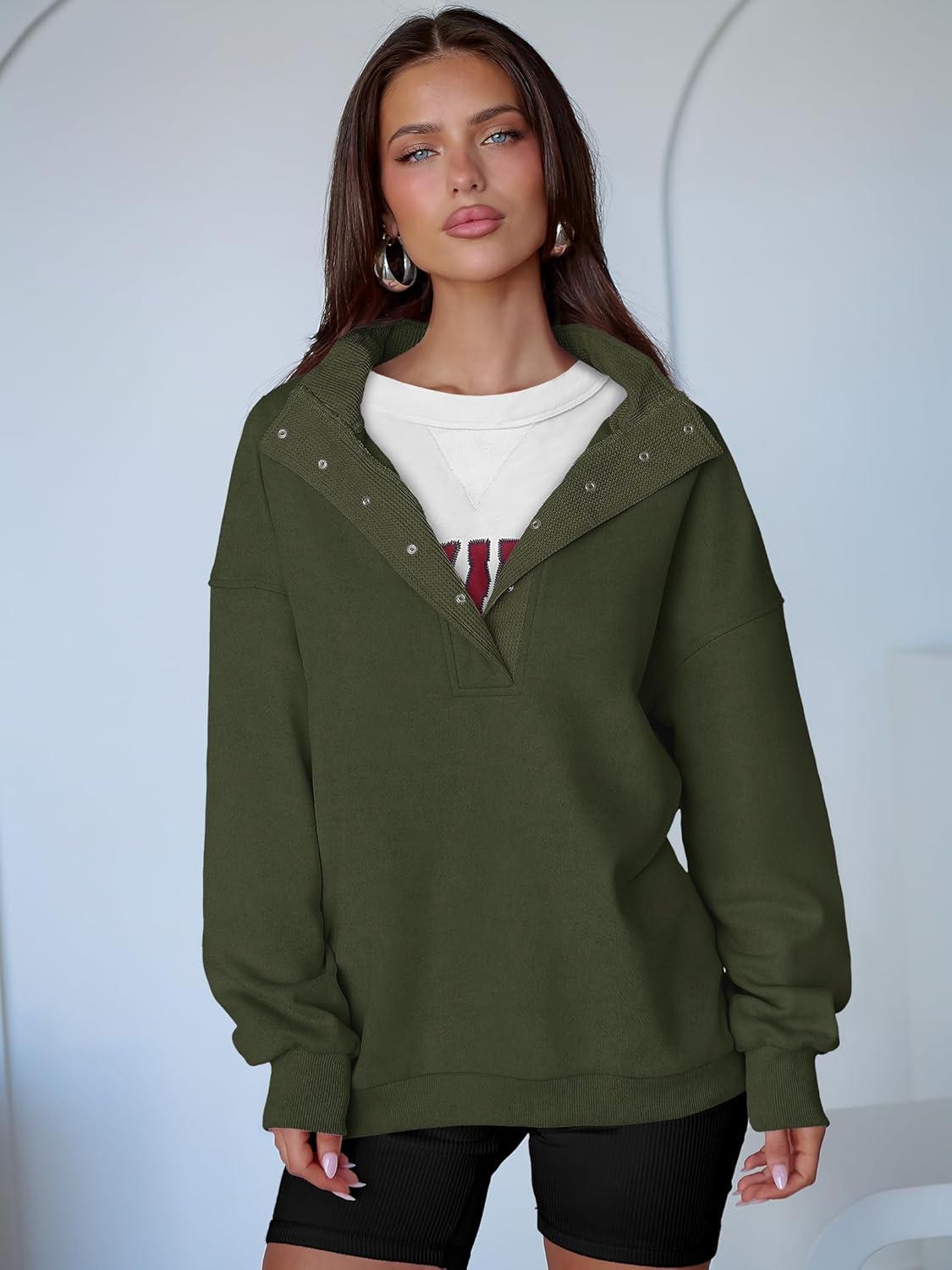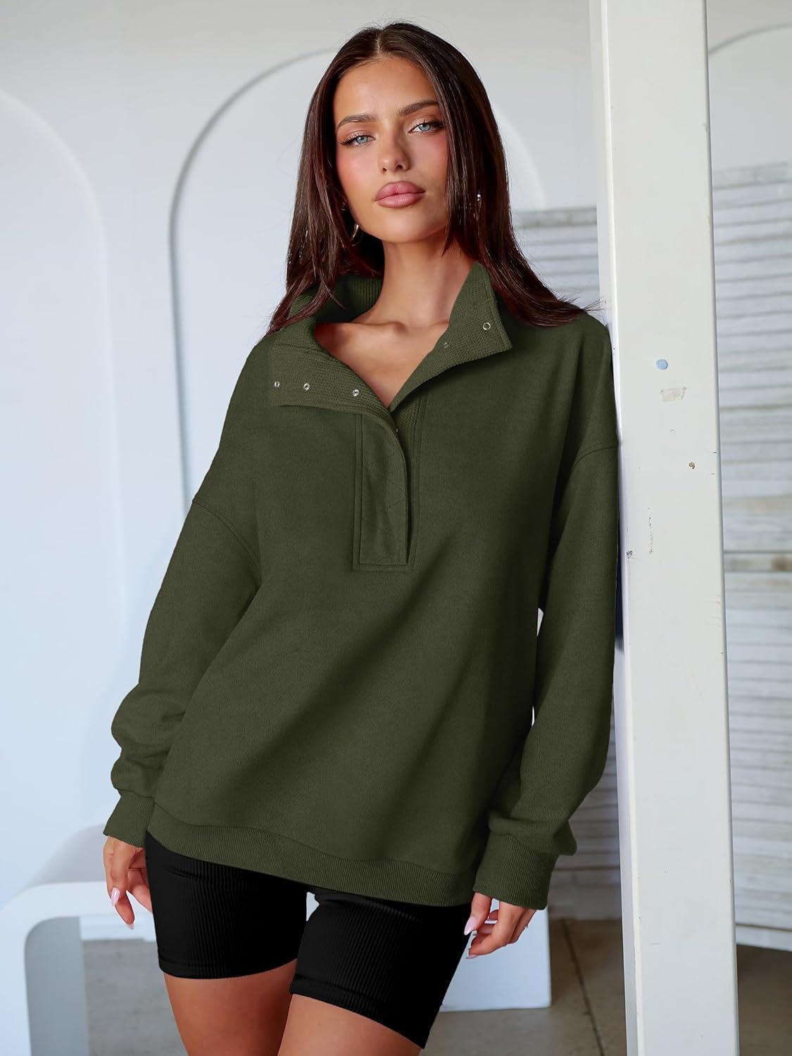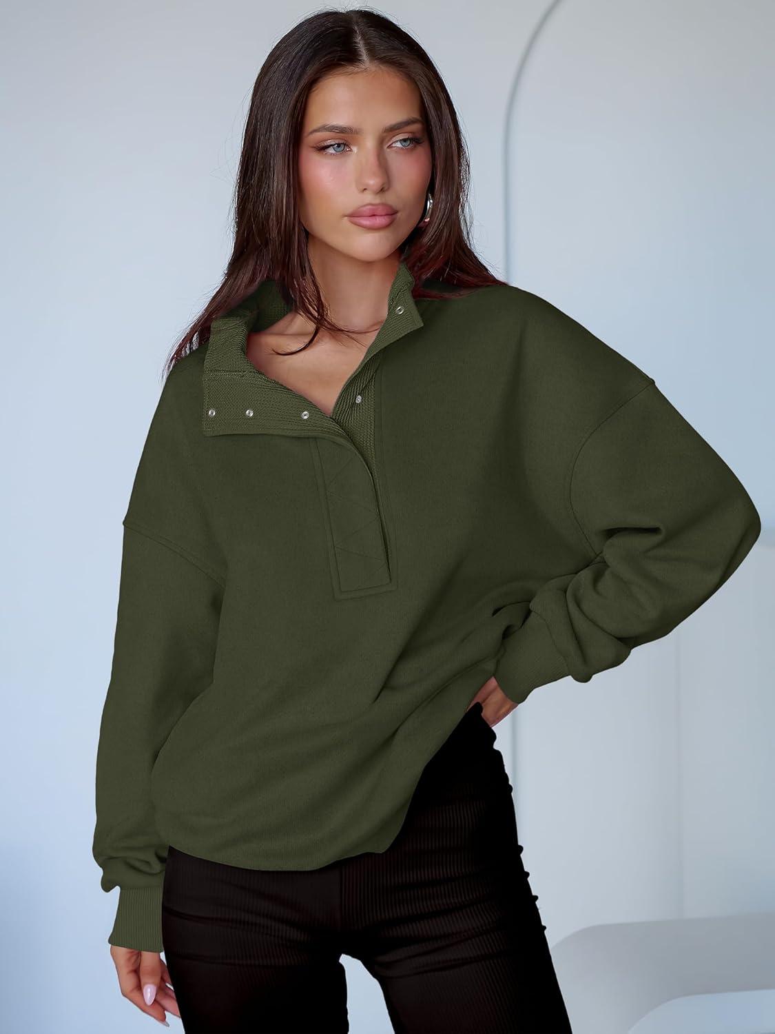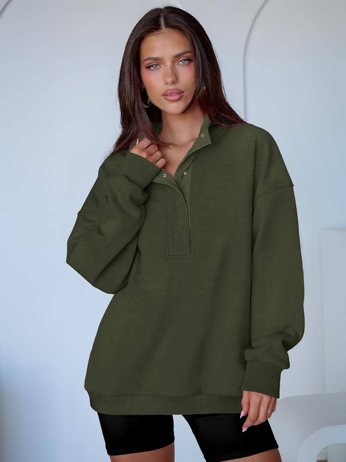 ANRABESS Womens Oversized Sweatshirt Long Sleeve Henley Pullover Tops 2026 Spring Casual Button Loose Fit Teens Outfits(Army Green)