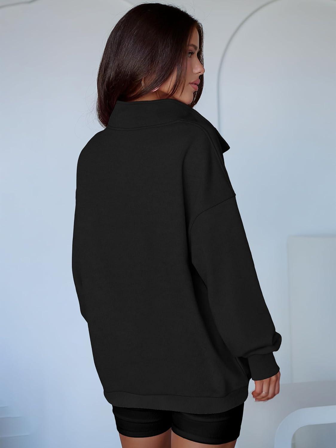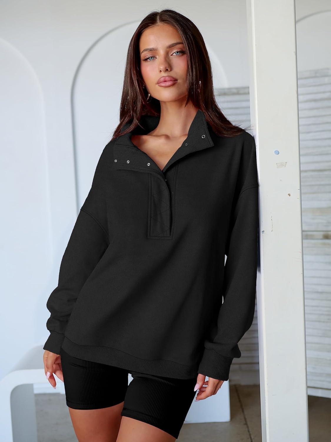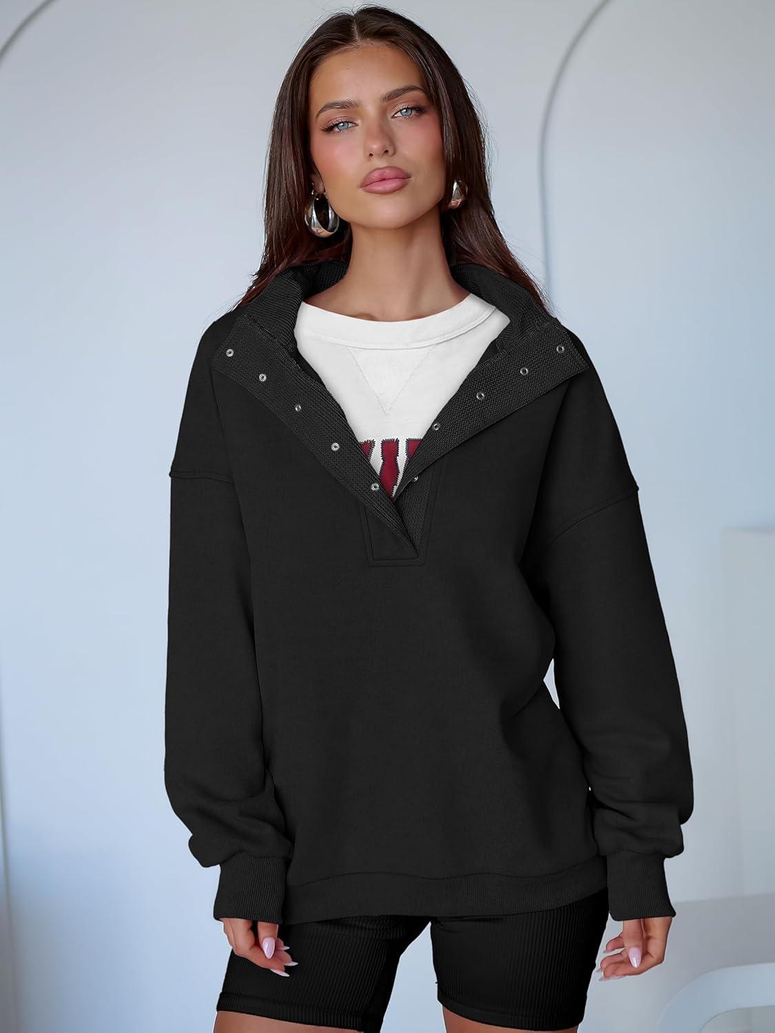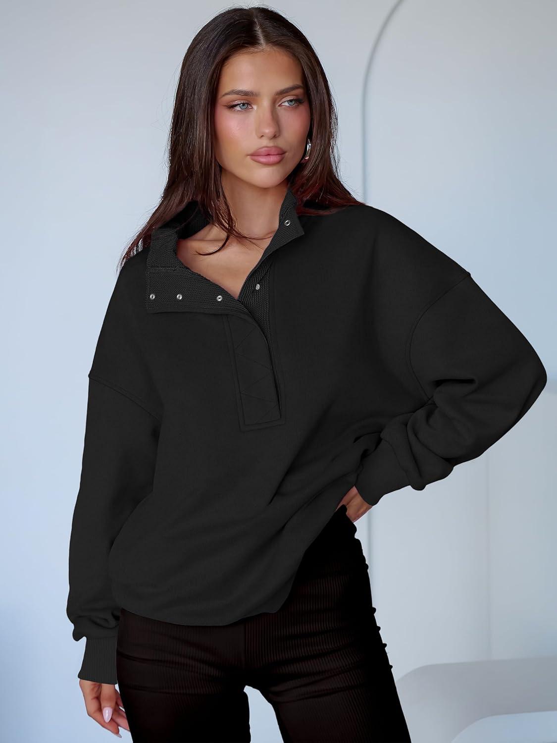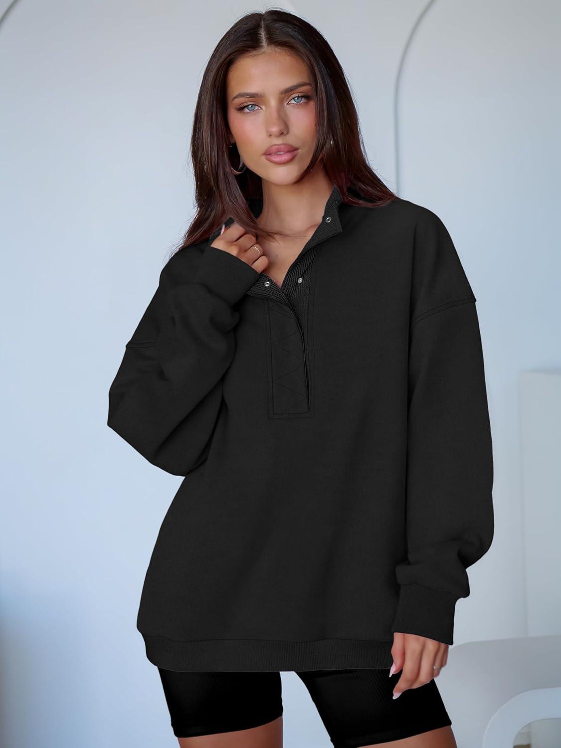 ANRABESS Womens Oversized Sweatshirt Long Sleeve Henley Pullover Tops 2026 Spring Casual Button Loose Fit Teens Outfits(Black)