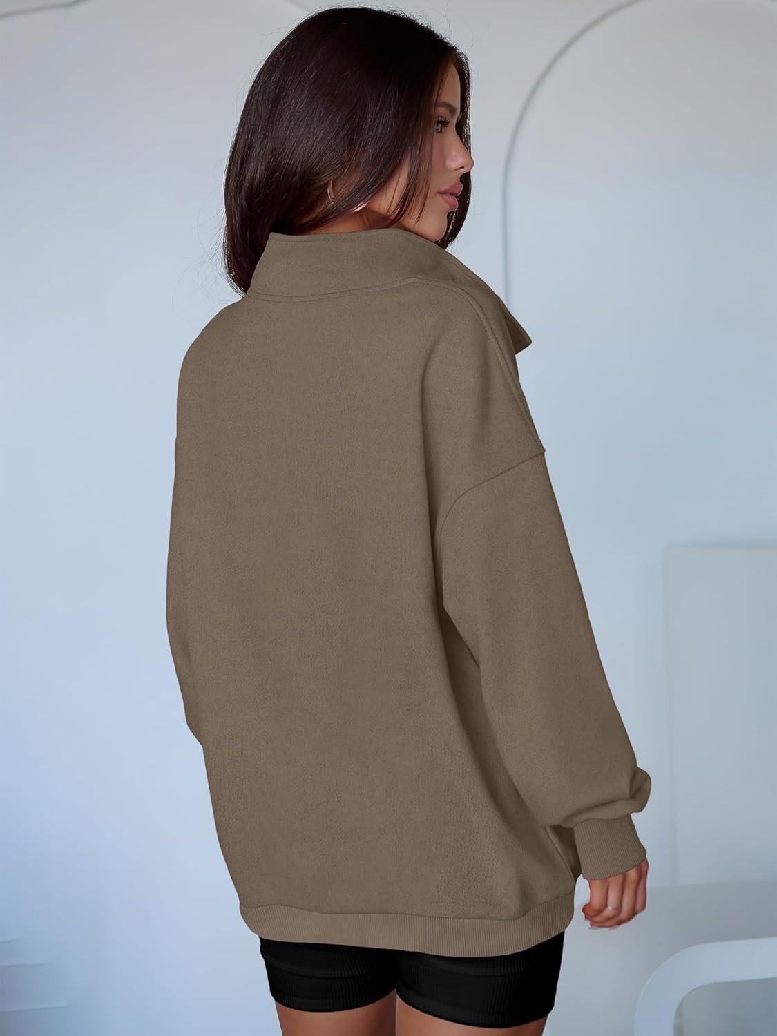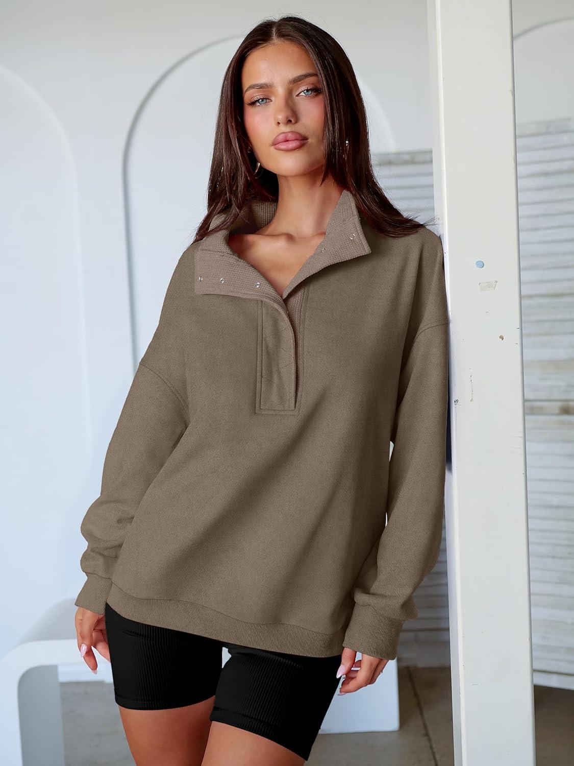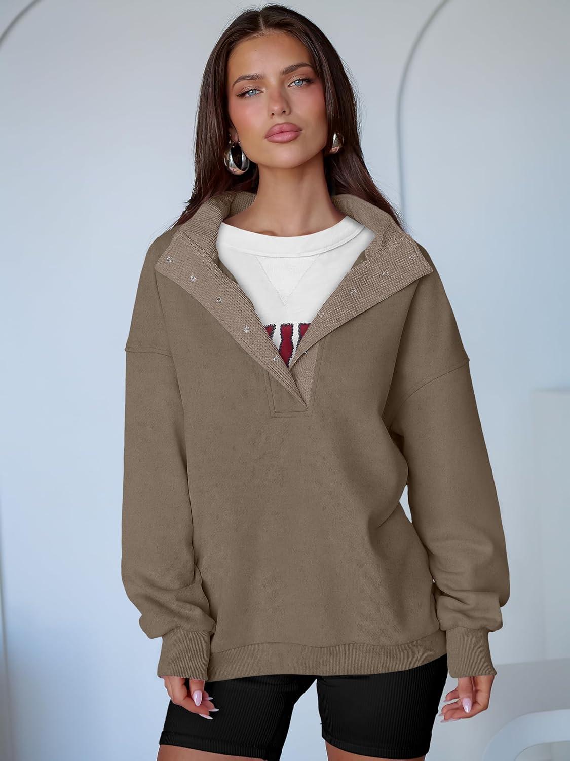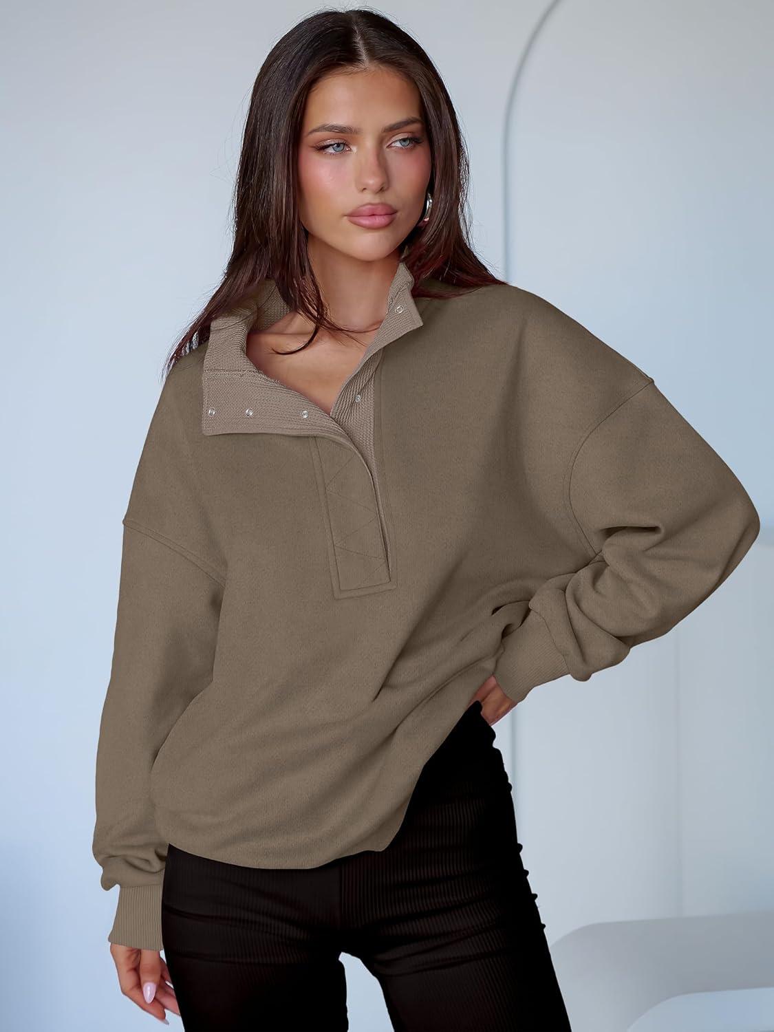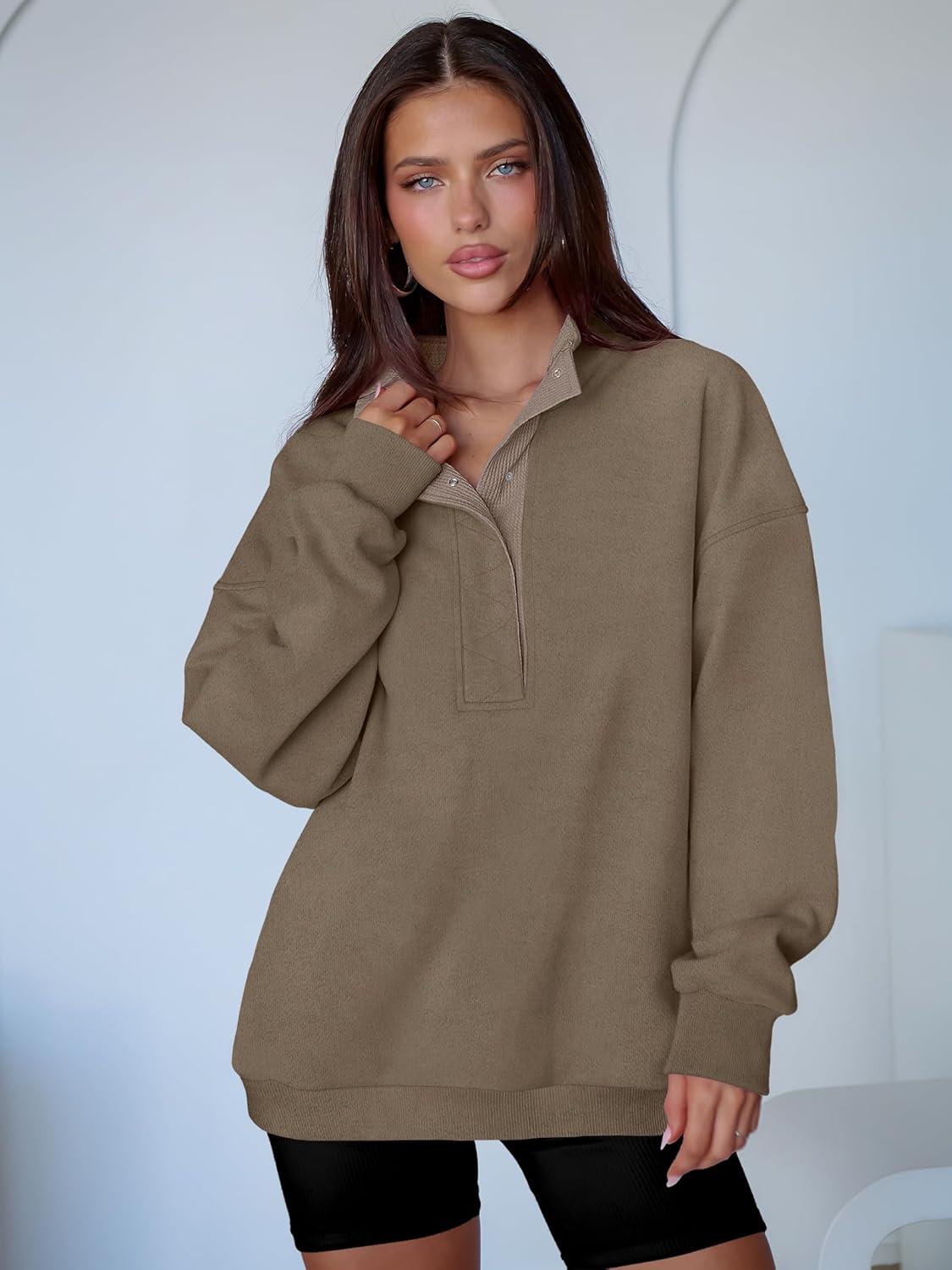 ANRABESS Womens Oversized Sweatshirt Long Sleeve Henley Pullover Tops 2026 Spring Casual Button Loose Fit Teens Outfits(Brown)