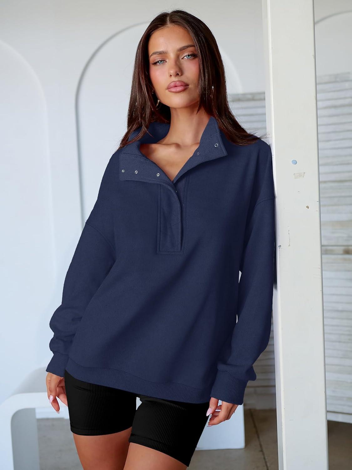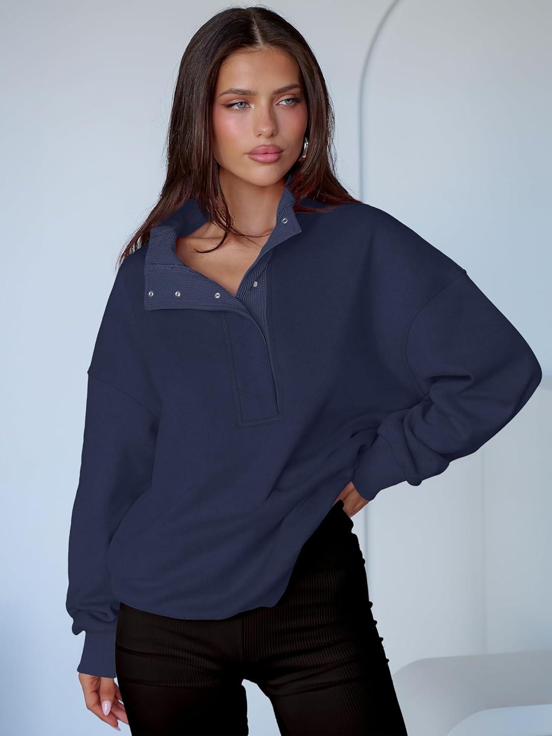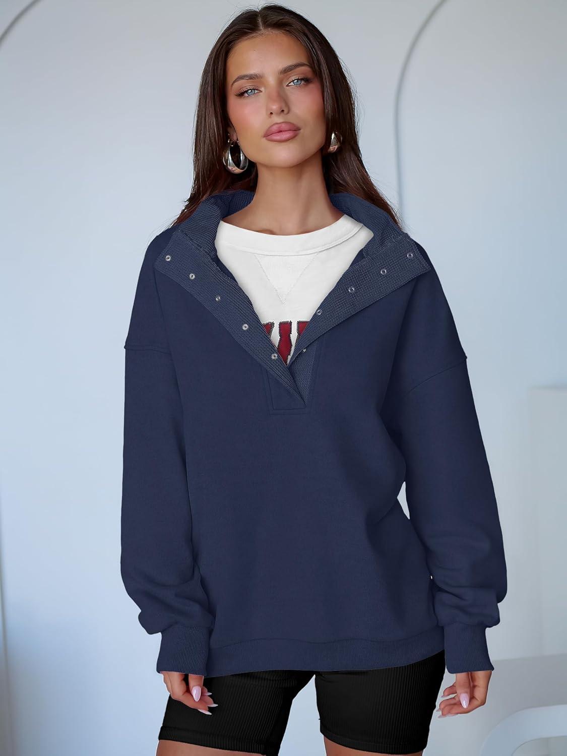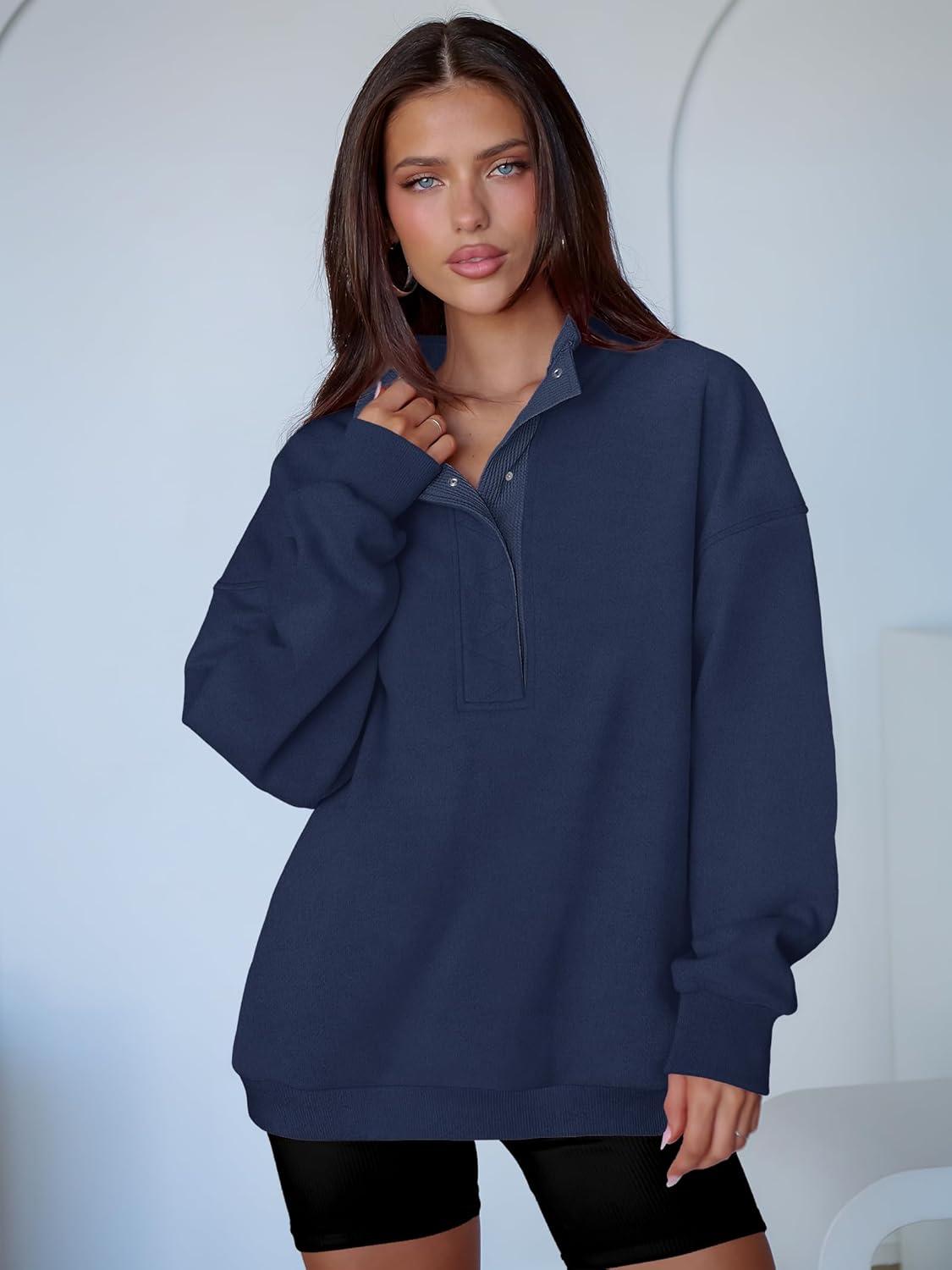 ANRABESS Womens Oversized Sweatshirt Long Sleeve Henley Pullover Tops 2026 Spring Casual Button Loose Fit Teens Outfits(Dark Blue)