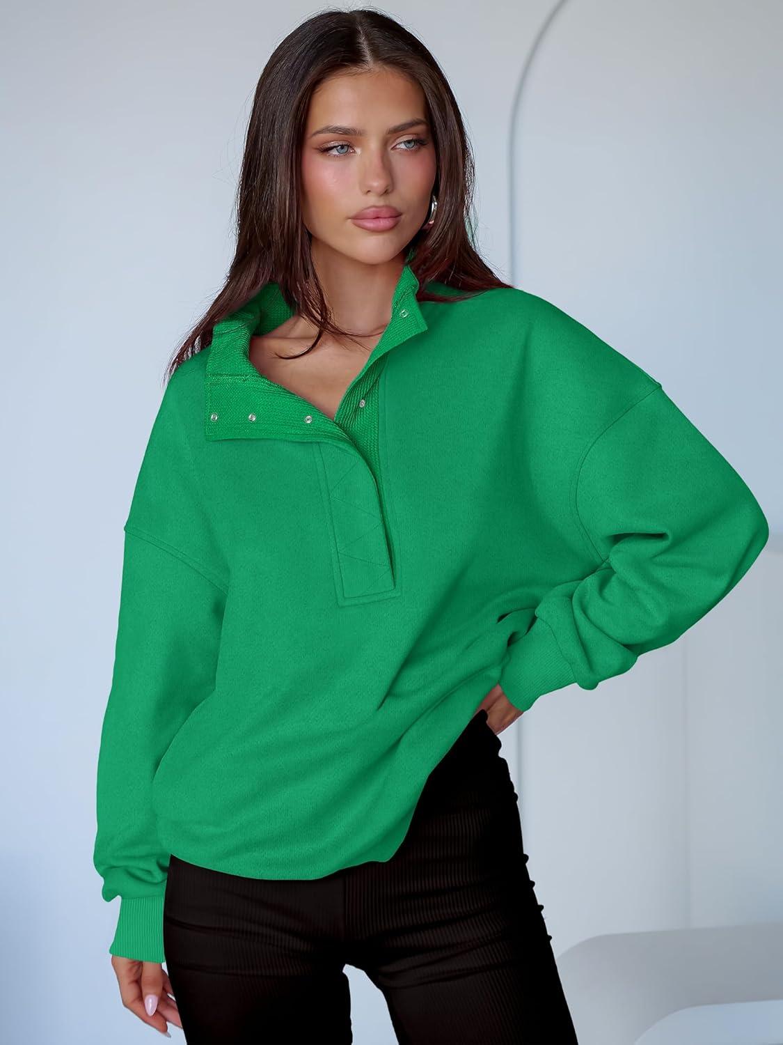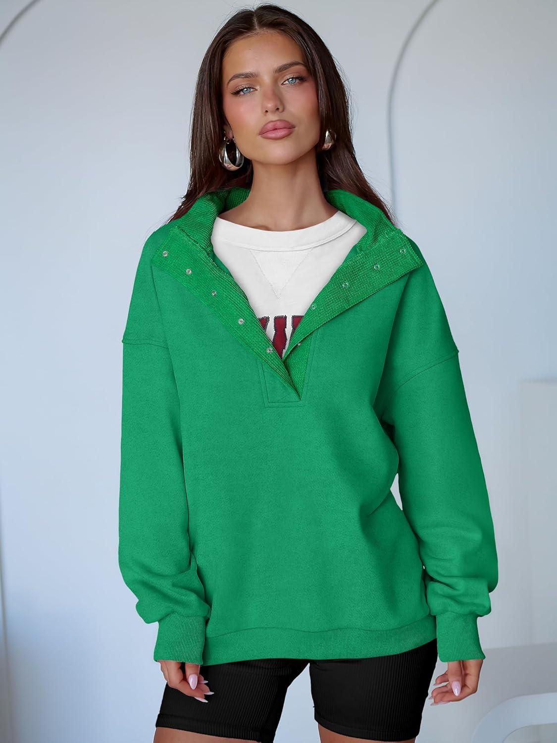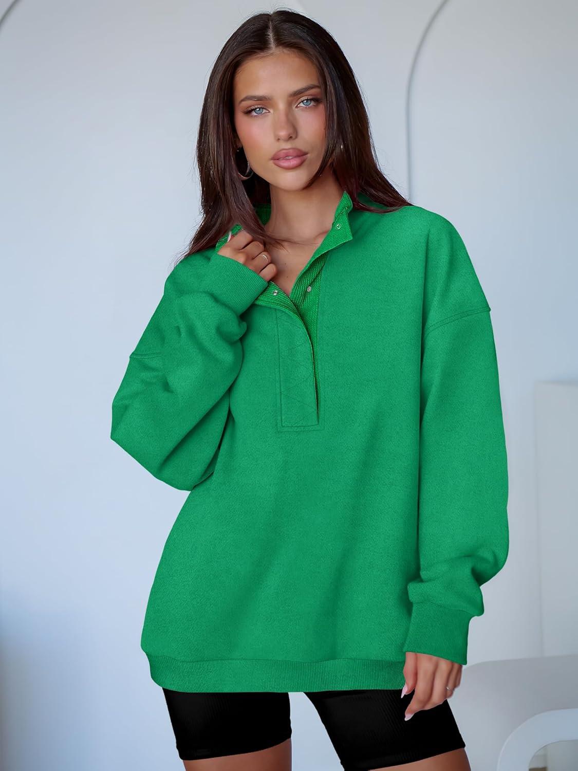 ANRABESS Womens Oversized Sweatshirt Long Sleeve Henley Pullover Tops 2026 Spring Casual Button Loose Fit Teens Outfits(Lake Green)