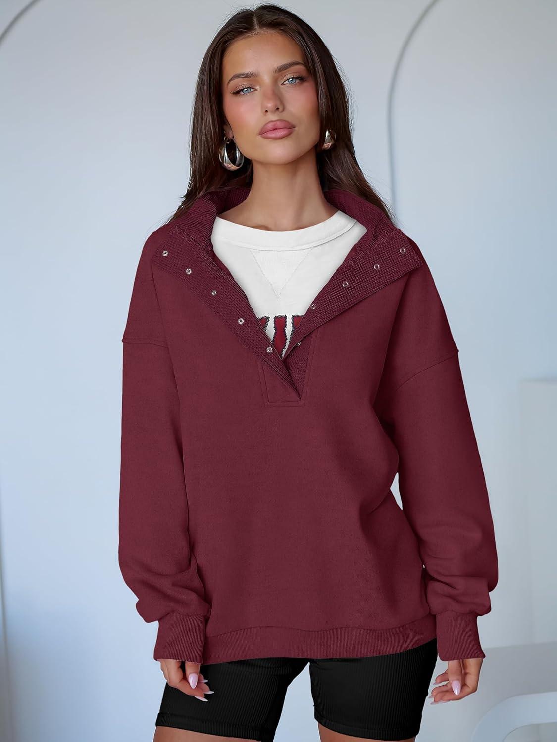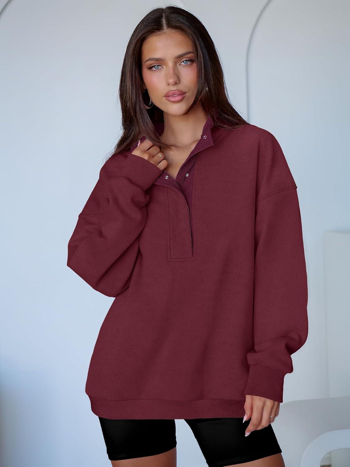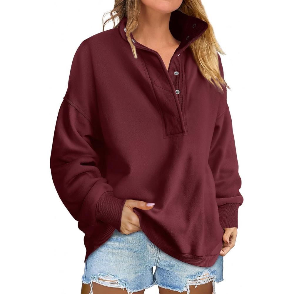 ANRABESS Womens Oversized Sweatshirt Long Sleeve Henley Pullover Tops 2026 Spring Casual Button Loose Fit Teens Outfits(Wine Red)