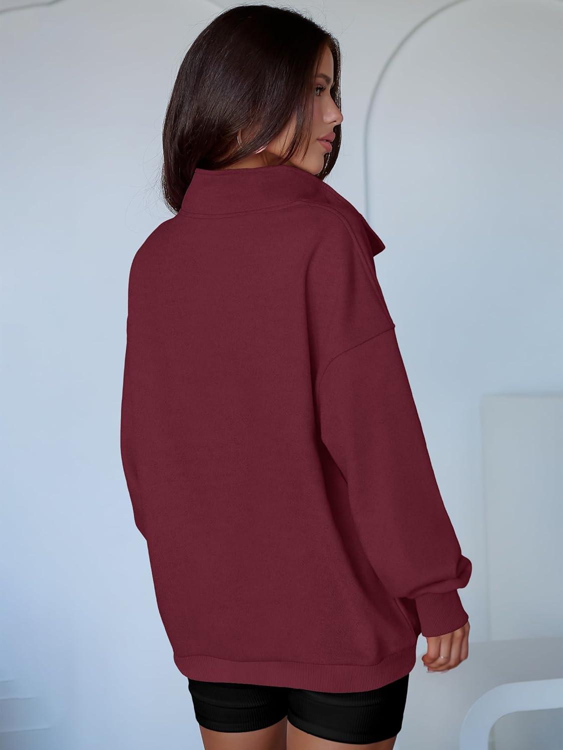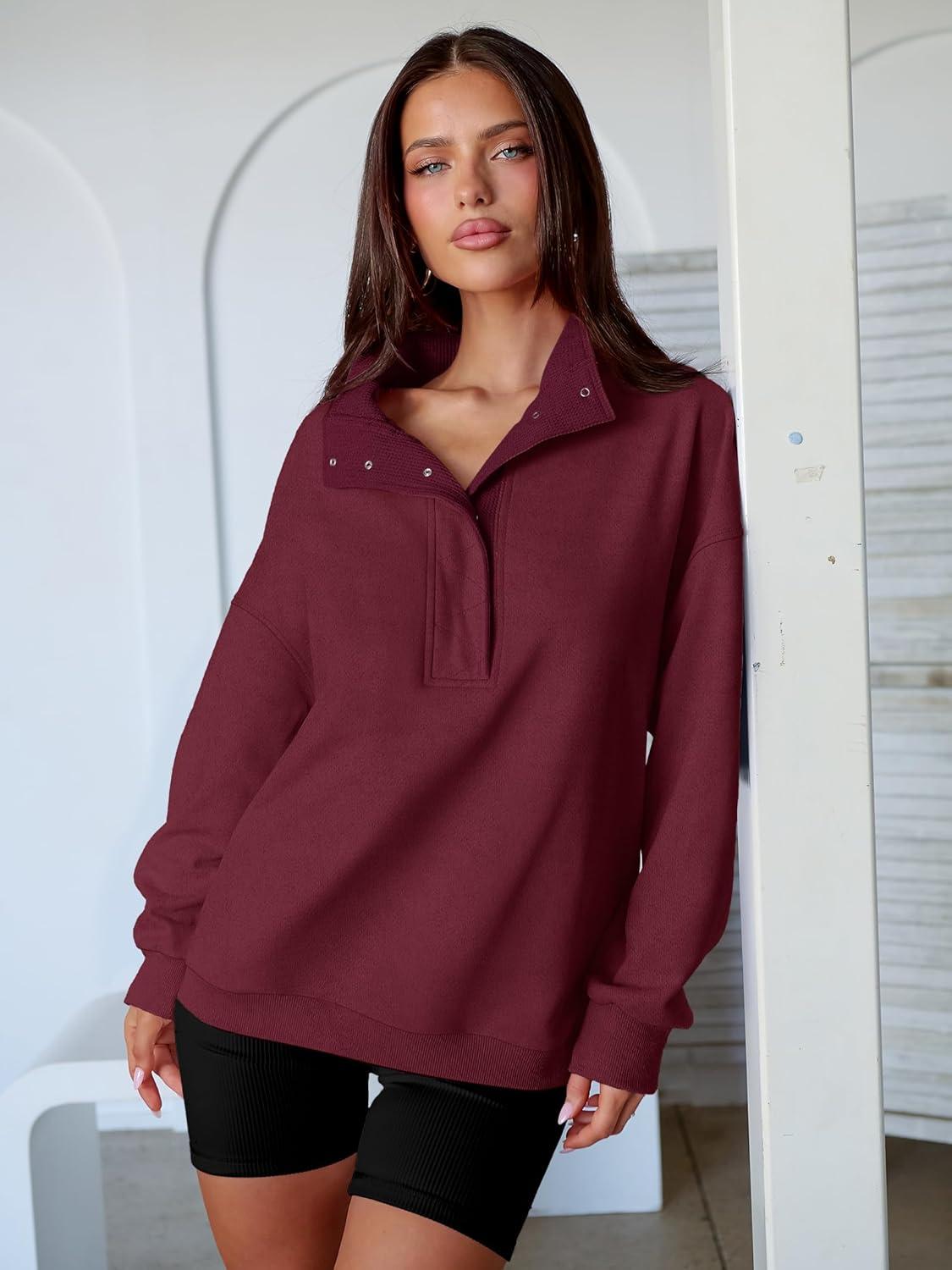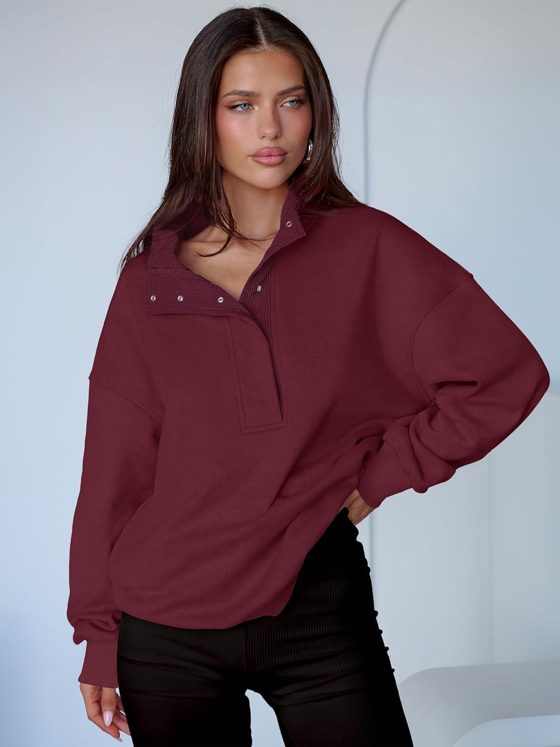 ANRABESS Womens Oversized Sweatshirt Long Sleeve Henley Pullover Tops 2026 Spring Casual Button Loose Fit Teens Outfits(Wine Red)