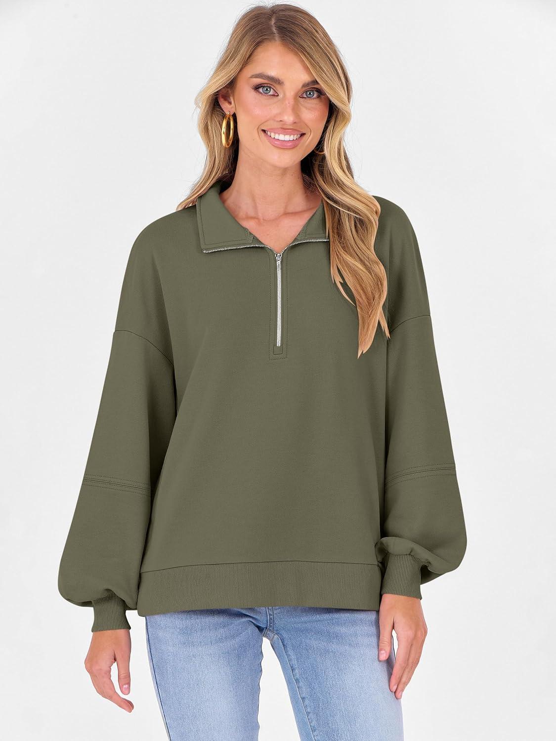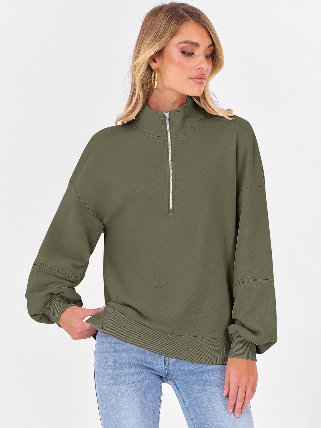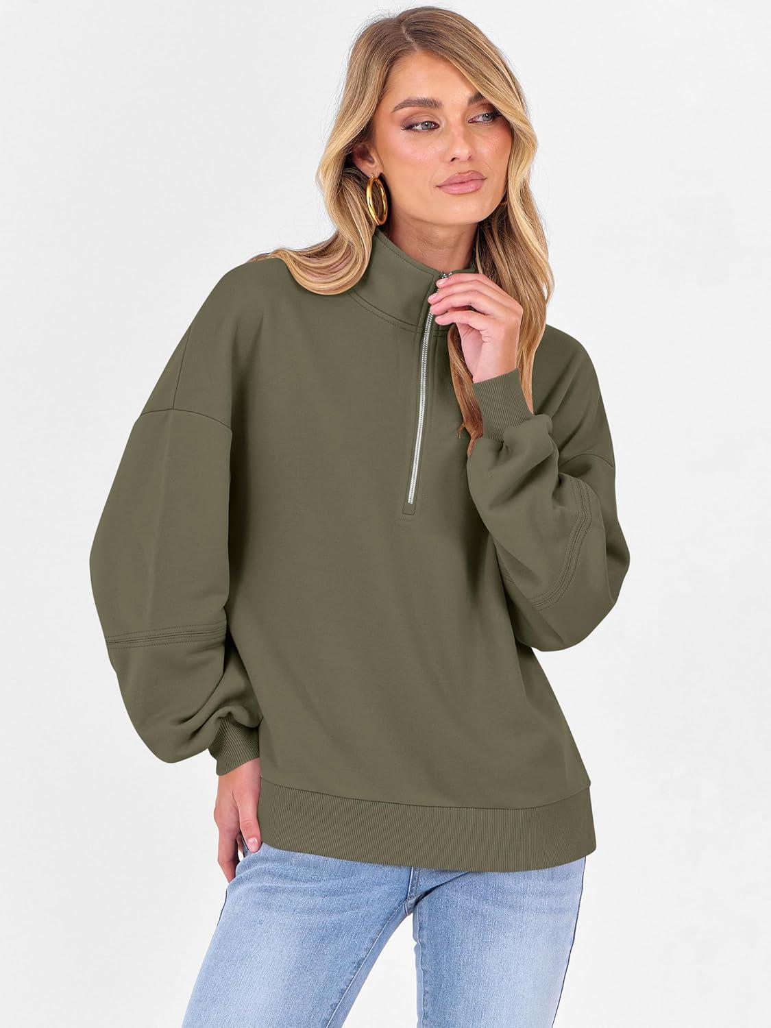 ANRABESS Womens Oversized Sweatshirts Quarter Zip Long Sleeve Comfy Casual Pullover Tops 2025 Fall Trendy Y2K Clothes(Army Green)