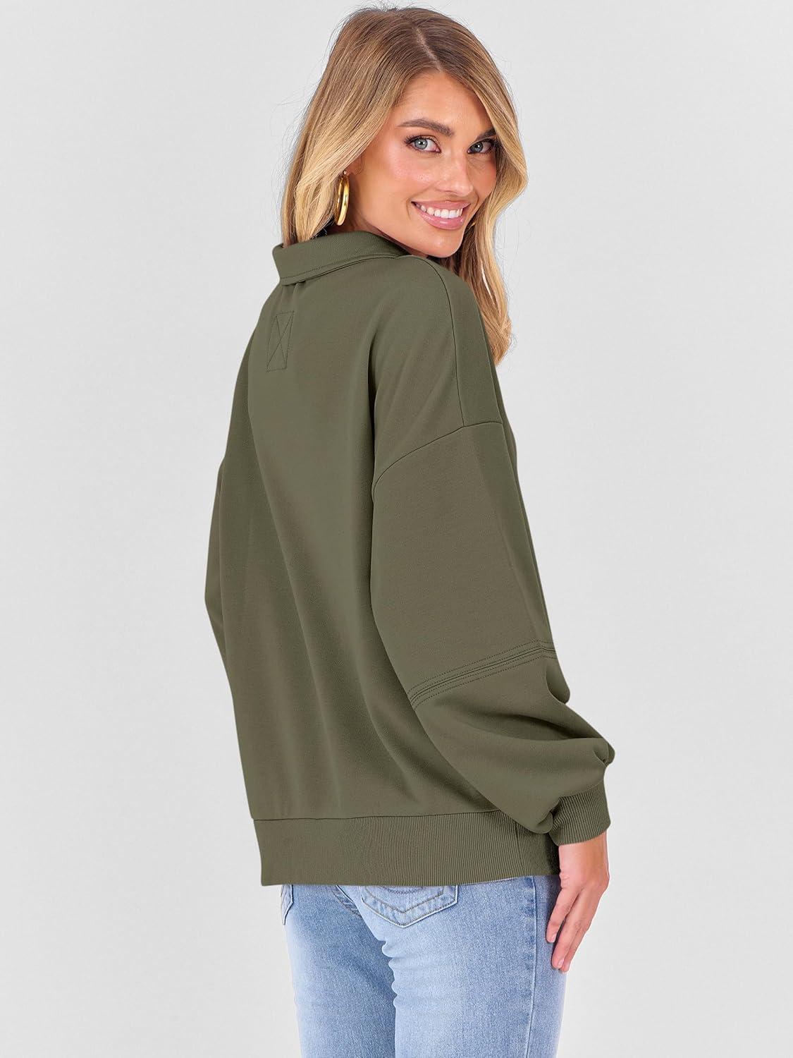 imageANRABESS Womens Oversized Sweatshirts Quarter Zip Long Sleeve Comfy Casual Pullover Tops 2025 Fall Trendy Y2K ClothesArmy Green