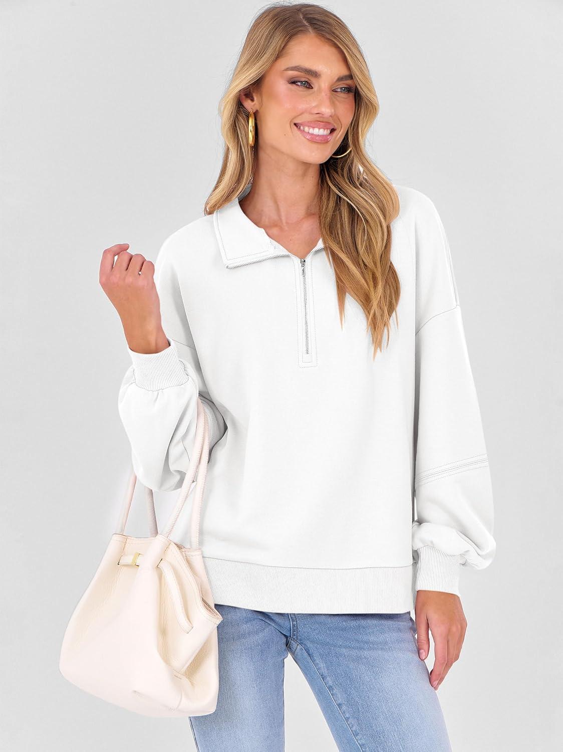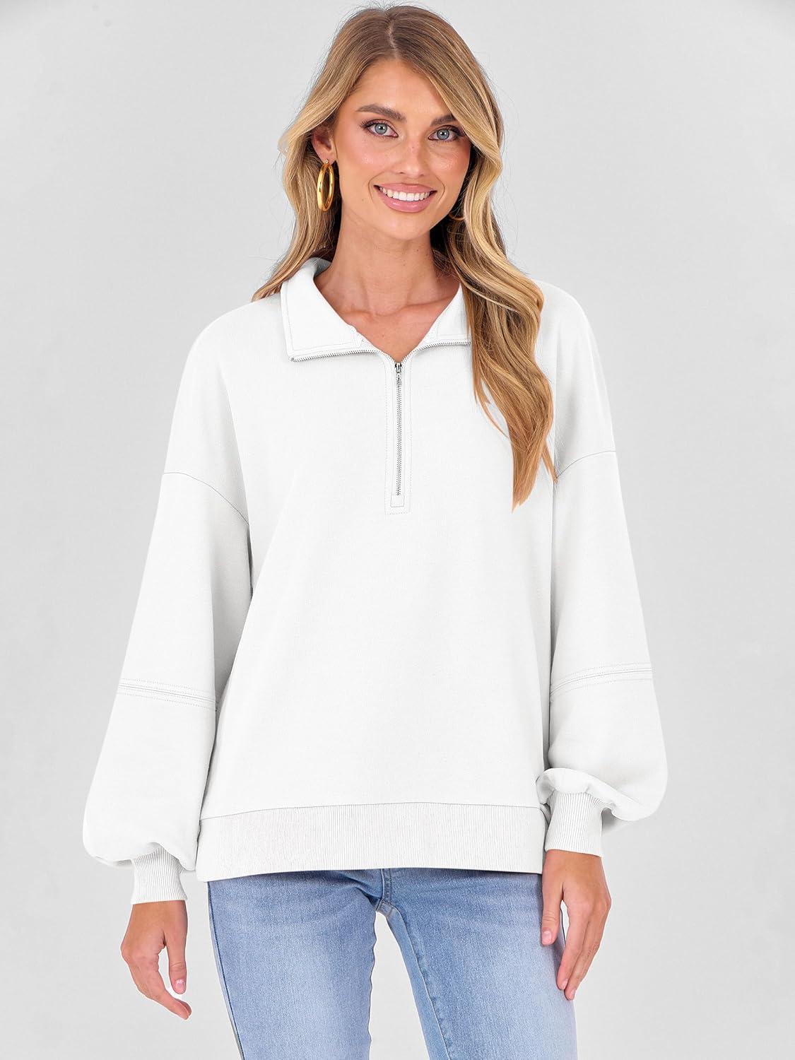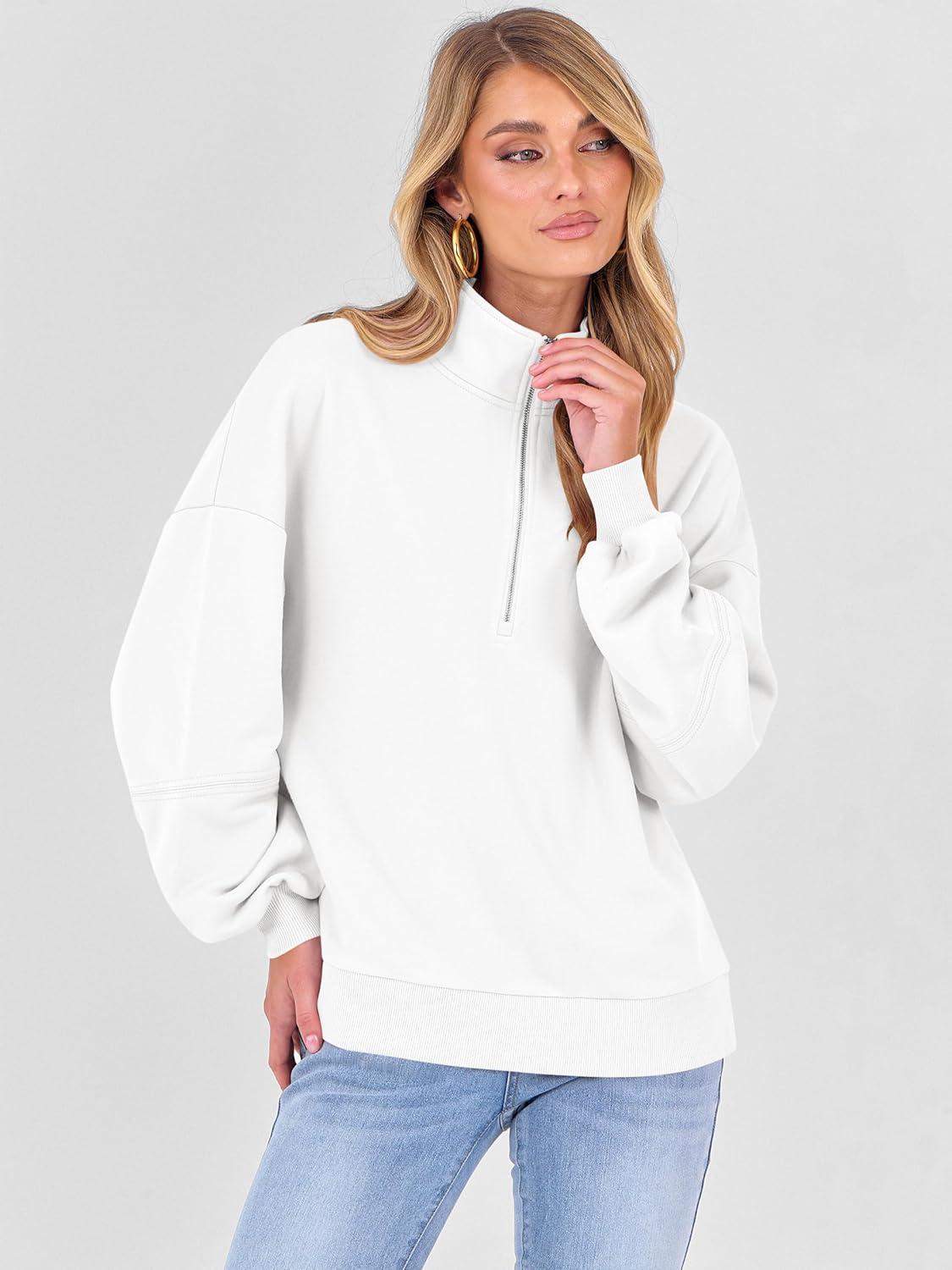 ANRABESS Womens Oversized Sweatshirts Quarter Zip Long Sleeve Comfy Casual Pullover Tops 2025 Fall Trendy Y2K Clothes(White)