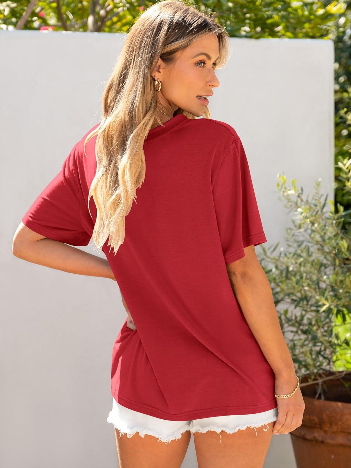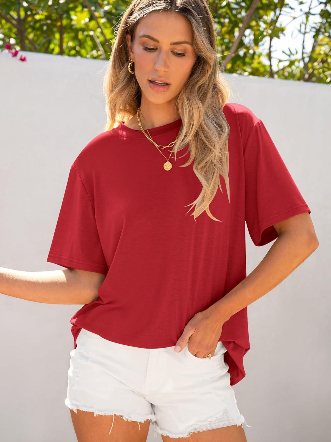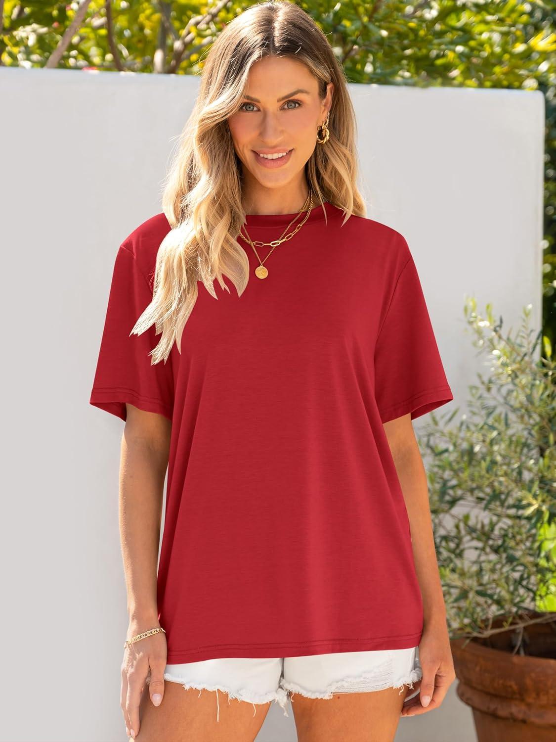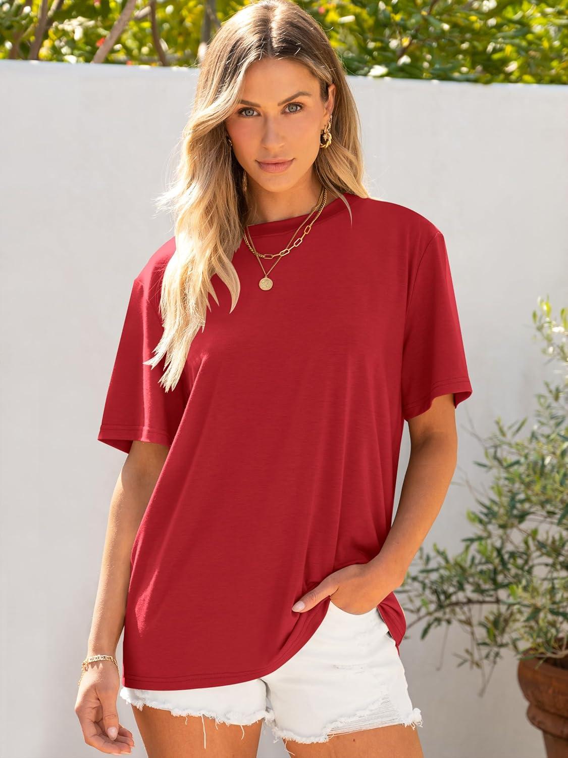 ANRABESS Womens Oversized T Shirts Short Sleeve Crewneck Tops Casual Loose Basic Tee Shirts 2026 Summer Trendy Outfits(Red)