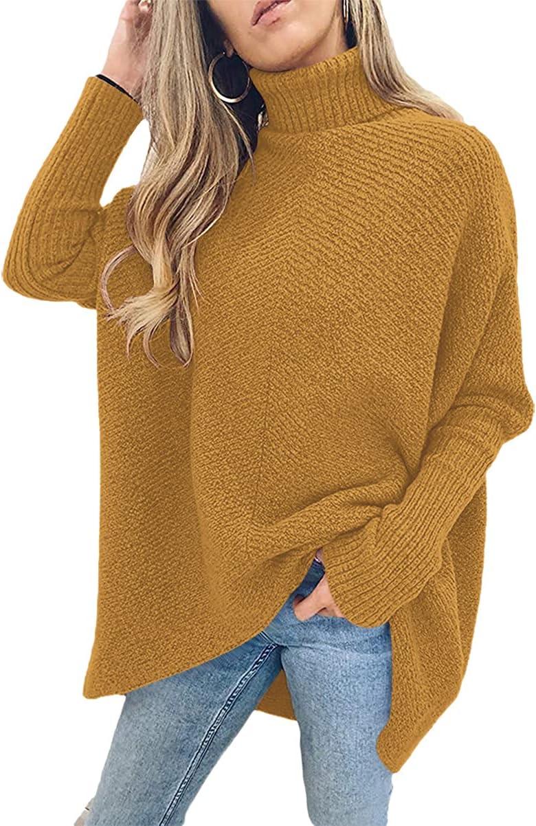 ANRABESS Womens Oversized Turtleneck Batwing Long Sleeve Casual Cozy Baggy Knit Pullover Tunic Sweater 2025 Fall Outfits(Camel)