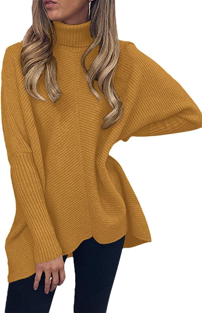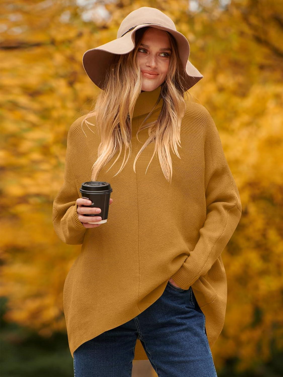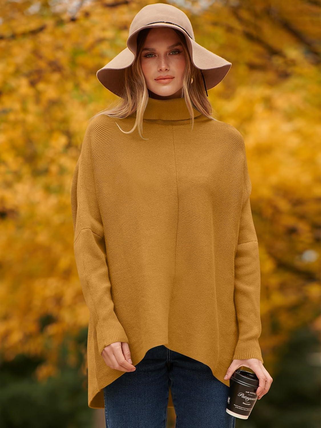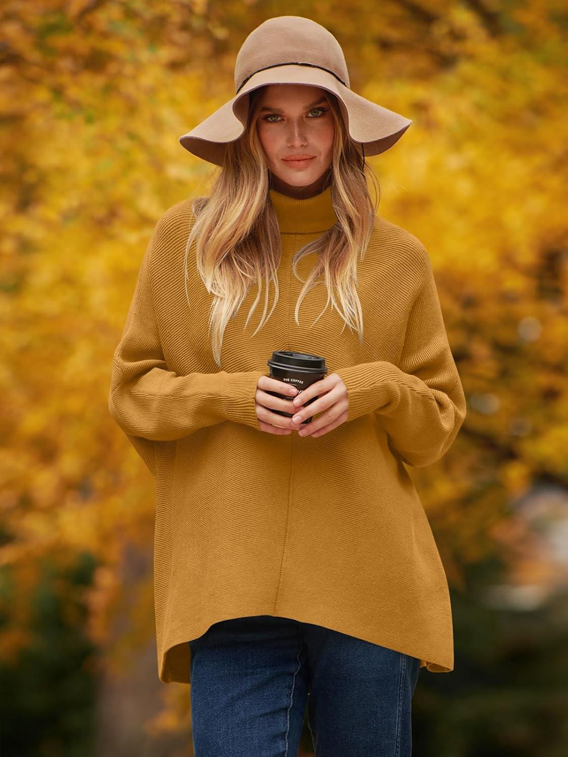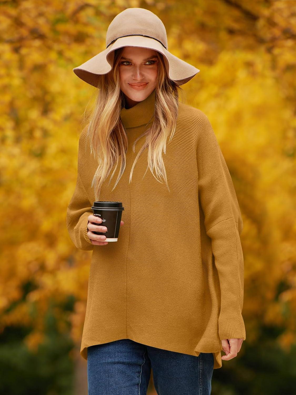 ANRABESS Womens Oversized Turtleneck Batwing Long Sleeve Casual Cozy Baggy Knit Pullover Tunic Sweater 2025 Fall Outfits(Caramel)