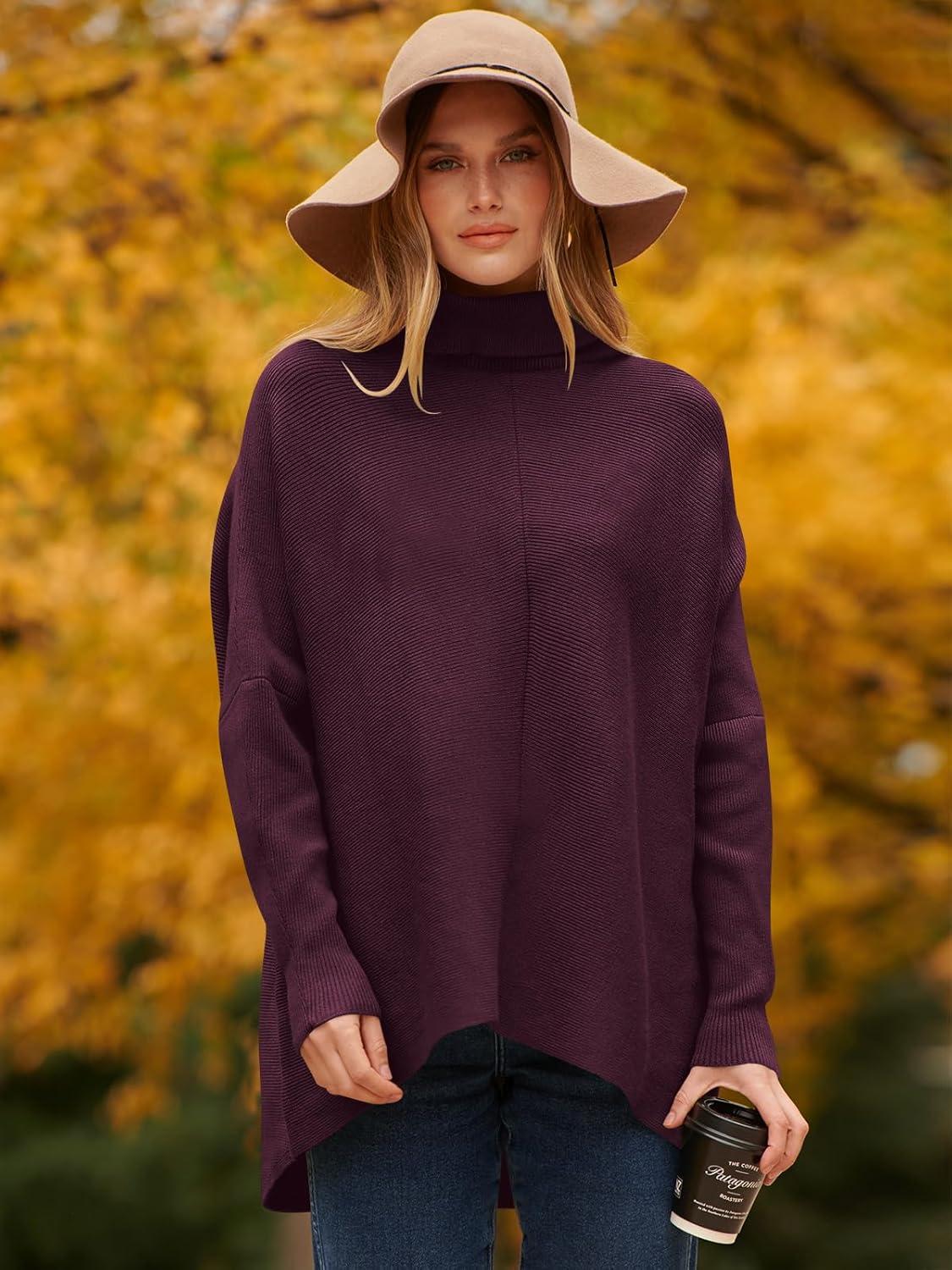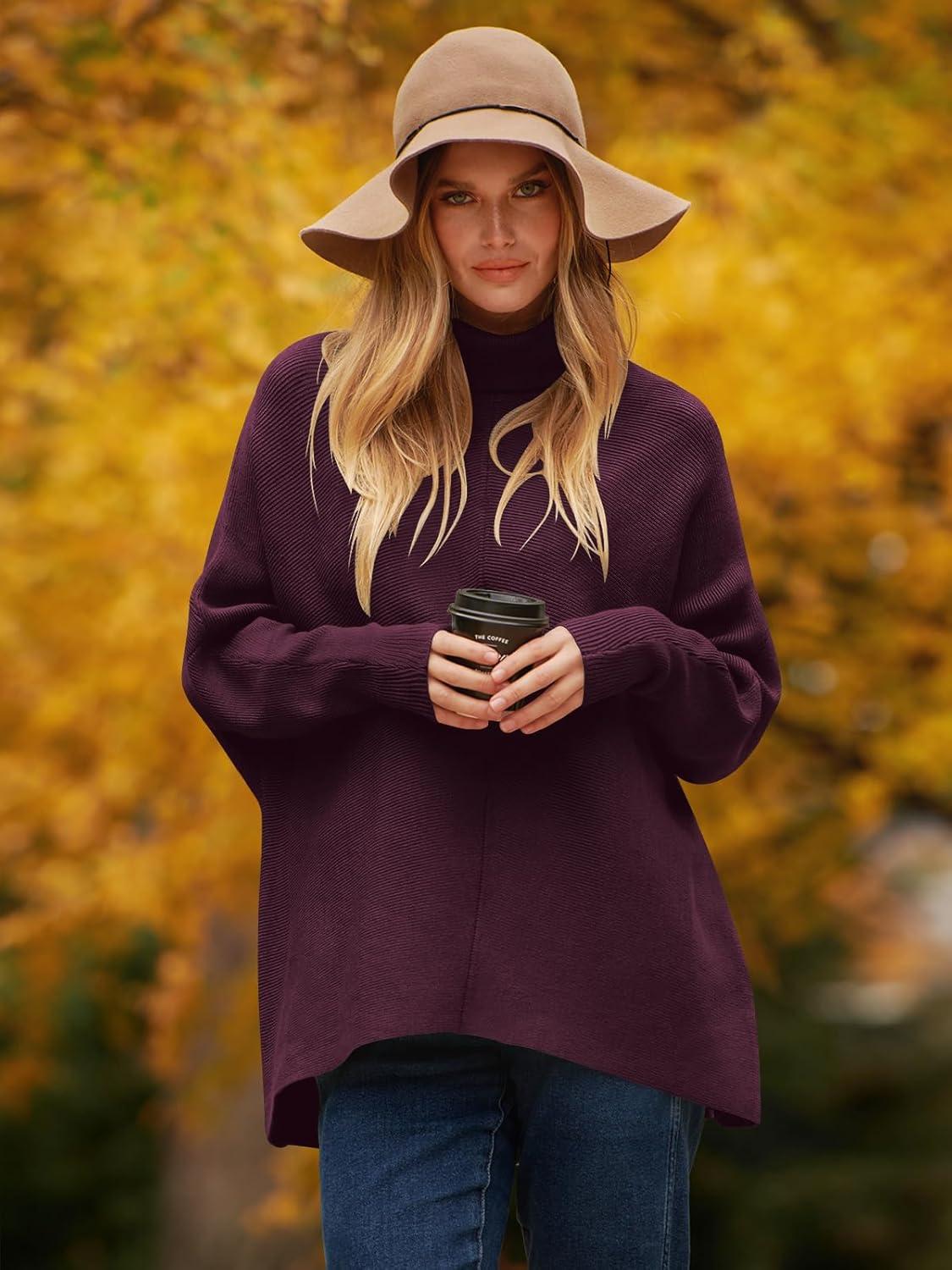ANRABESS Womens Oversized Turtleneck Batwing Long Sleeve Casual Cozy Baggy Knit Pullover Tunic Sweater 2025 Fall Outfits(Purple)