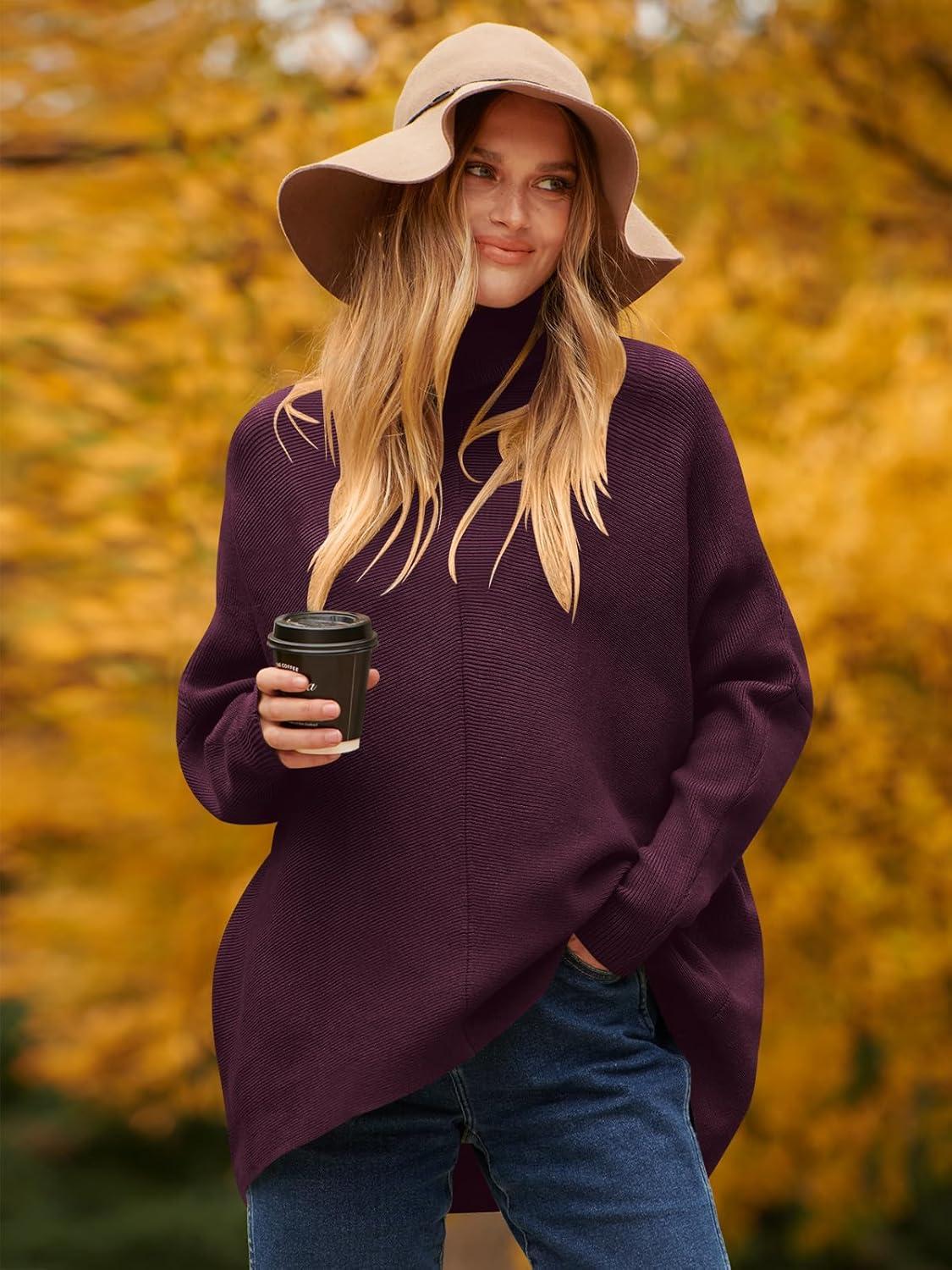 imageANRABESS Womens Oversized Turtleneck Batwing Long Sleeve Casual Cozy Baggy Knit Pullover Tunic Sweater 2025 Fall OutfitsPurple