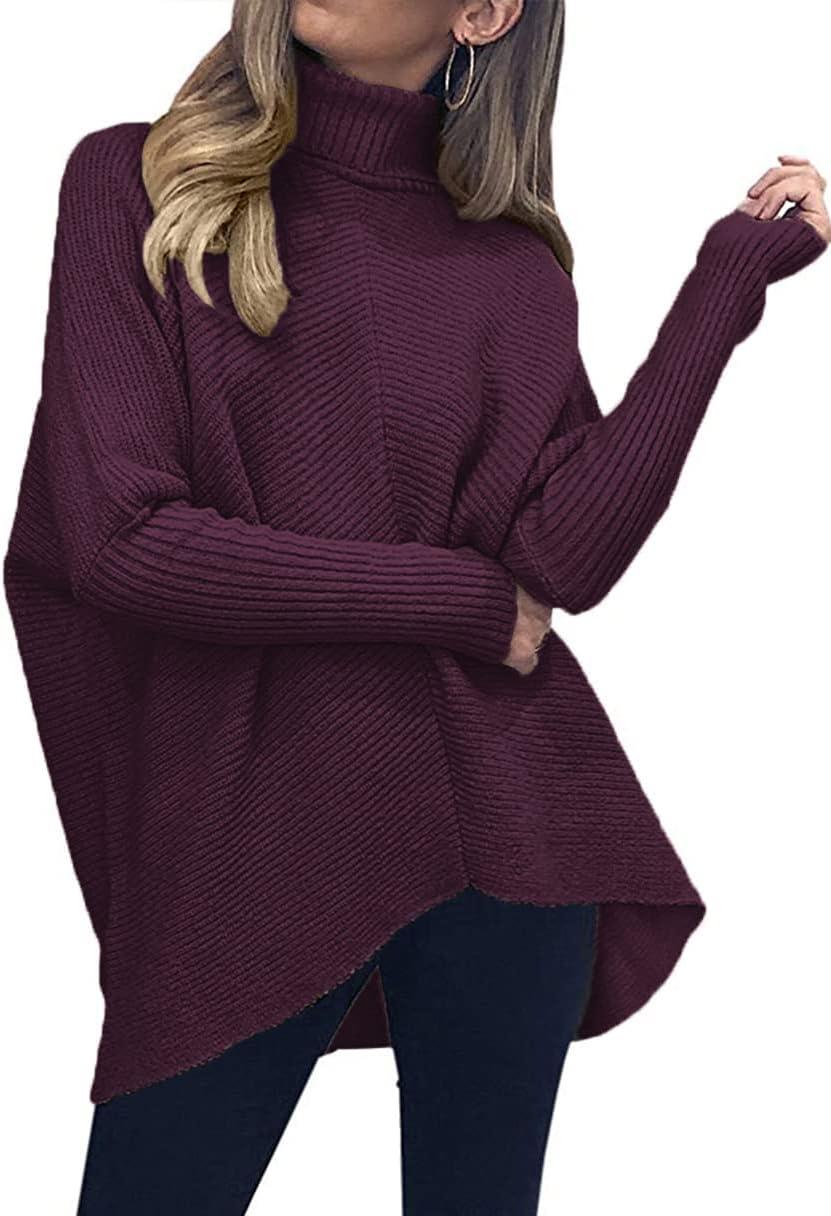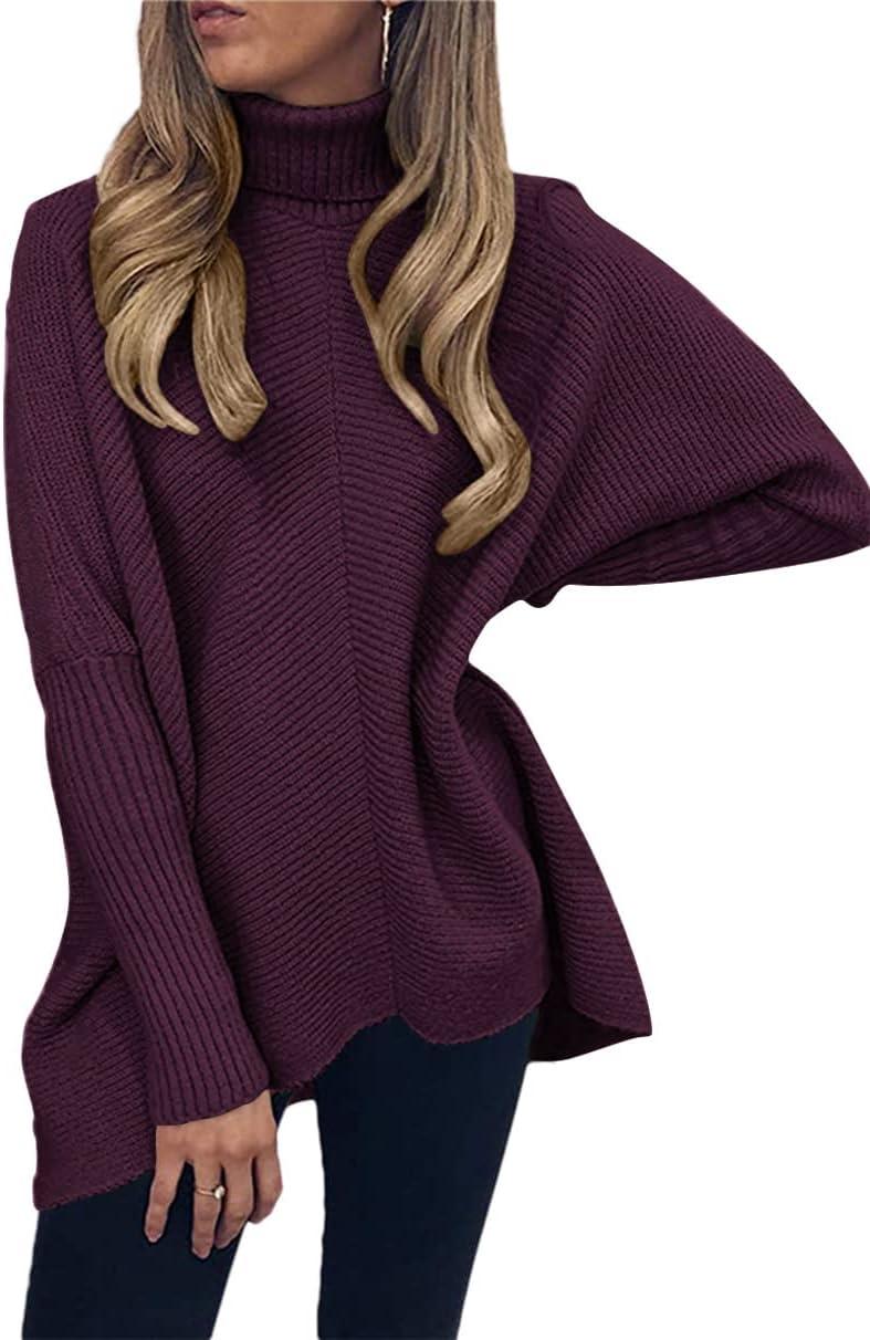 imageANRABESS Womens Oversized Turtleneck Batwing Long Sleeve Casual Cozy Baggy Knit Pullover Tunic Sweater 2025 Fall OutfitsWine Red