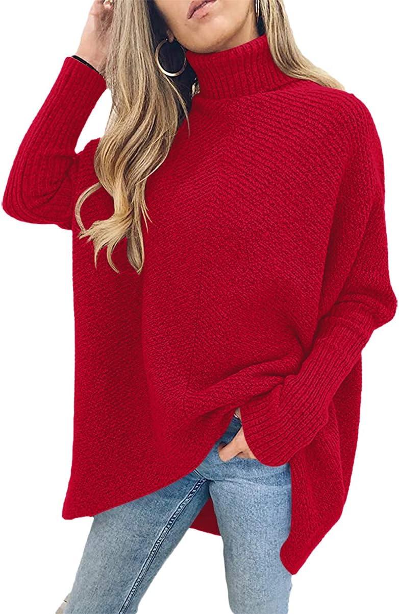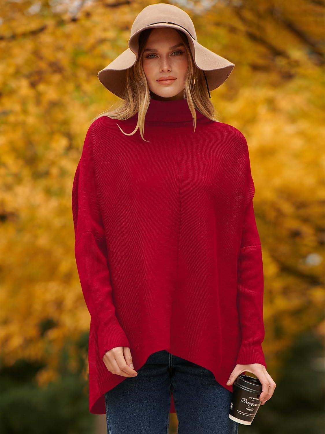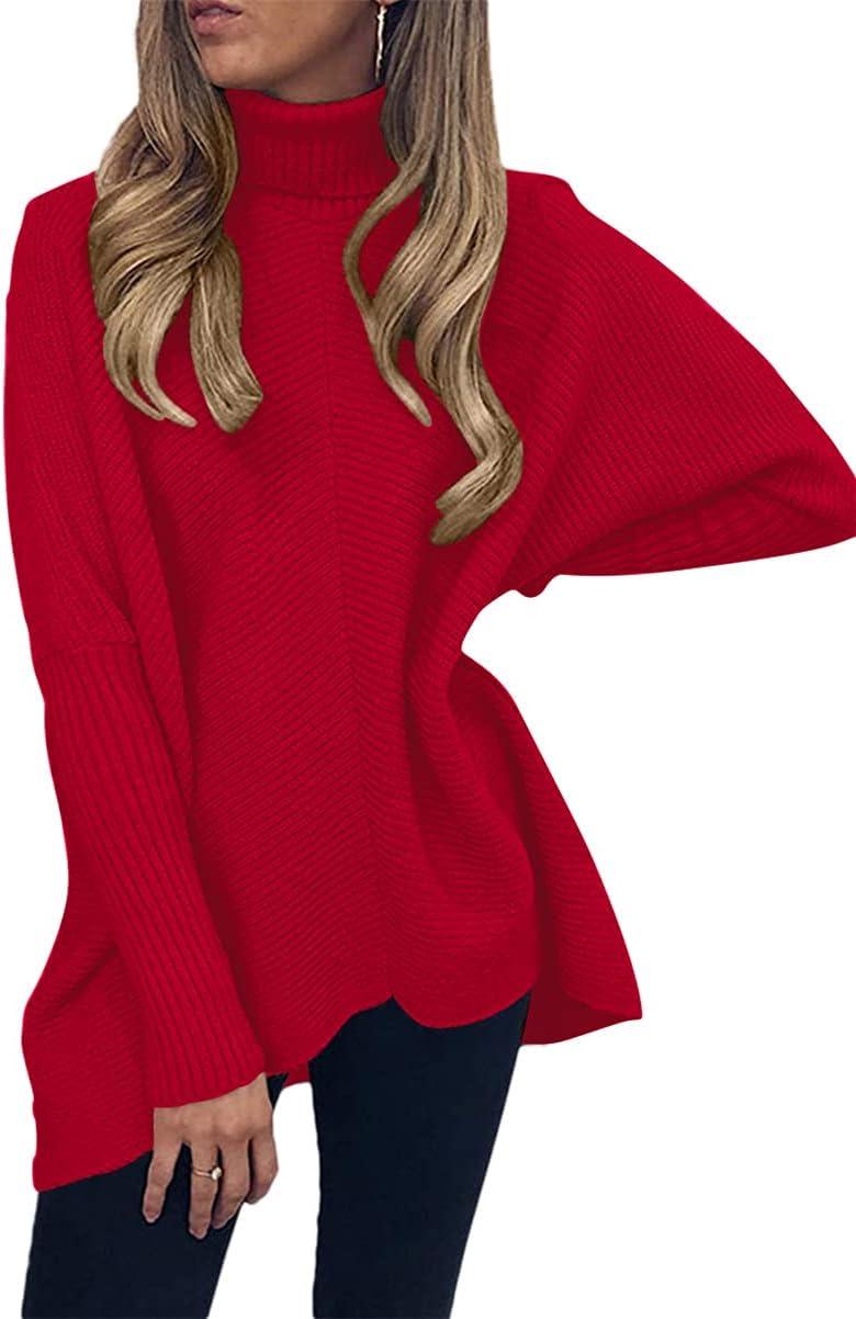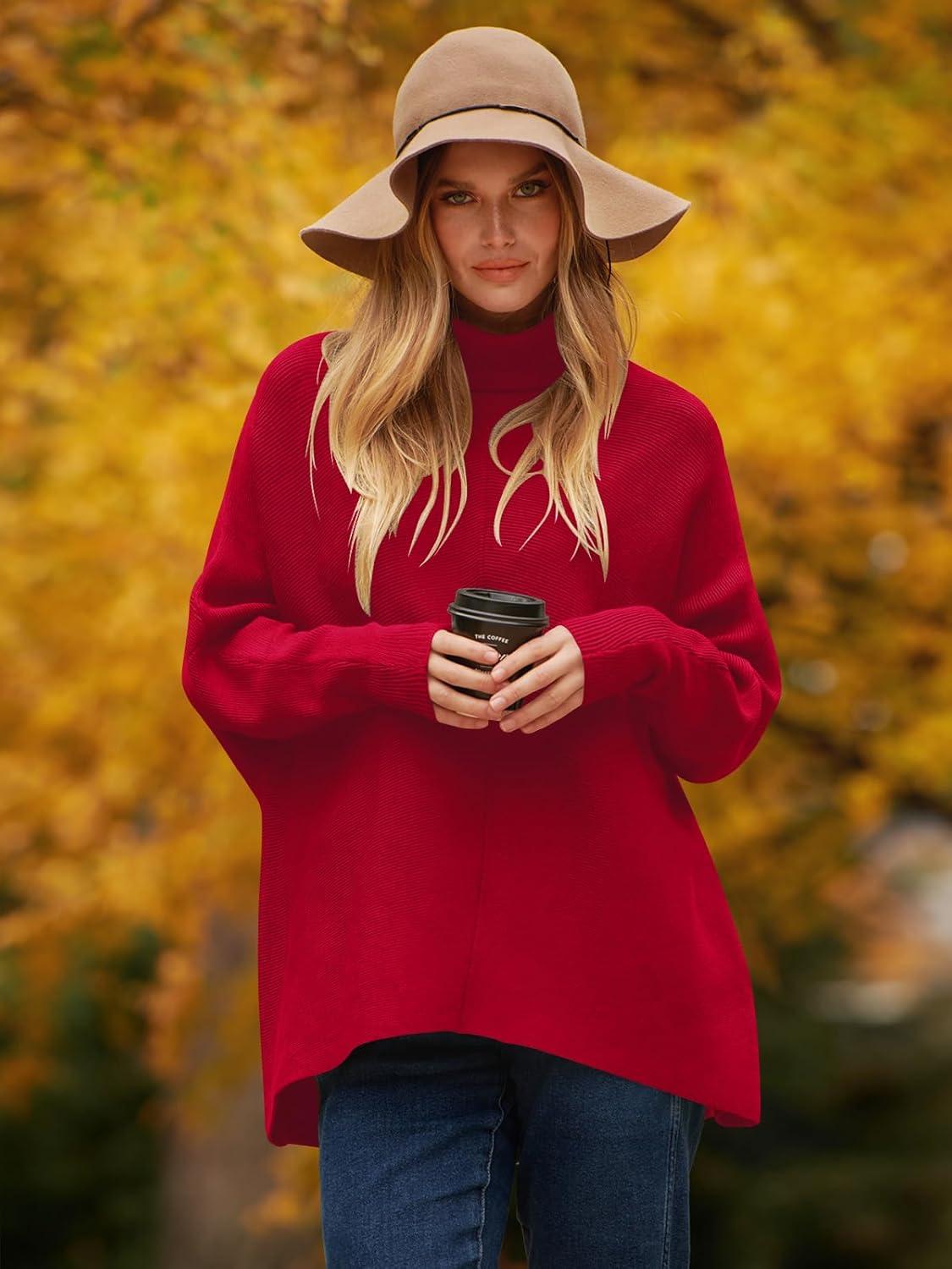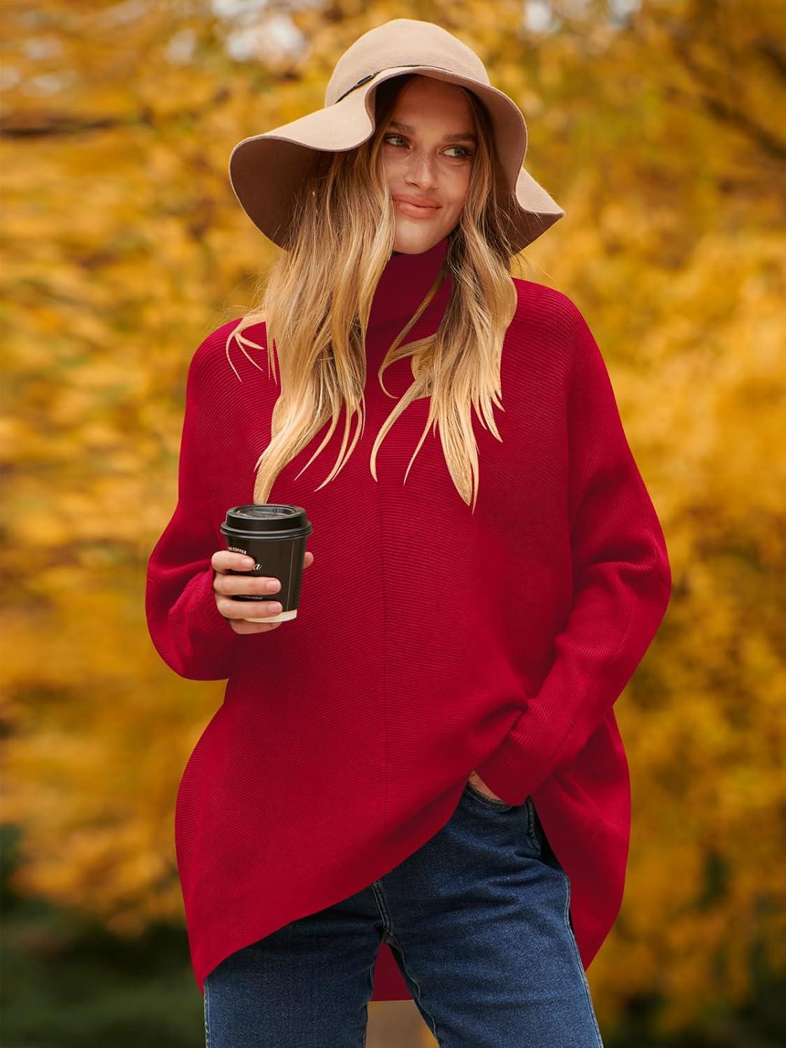 imageANRABESS Womens Oversized Turtleneck Batwing Long Sleeve Casual Cozy Baggy Knit Pullover Tunic Sweater 2025 Fall OutfitsRed