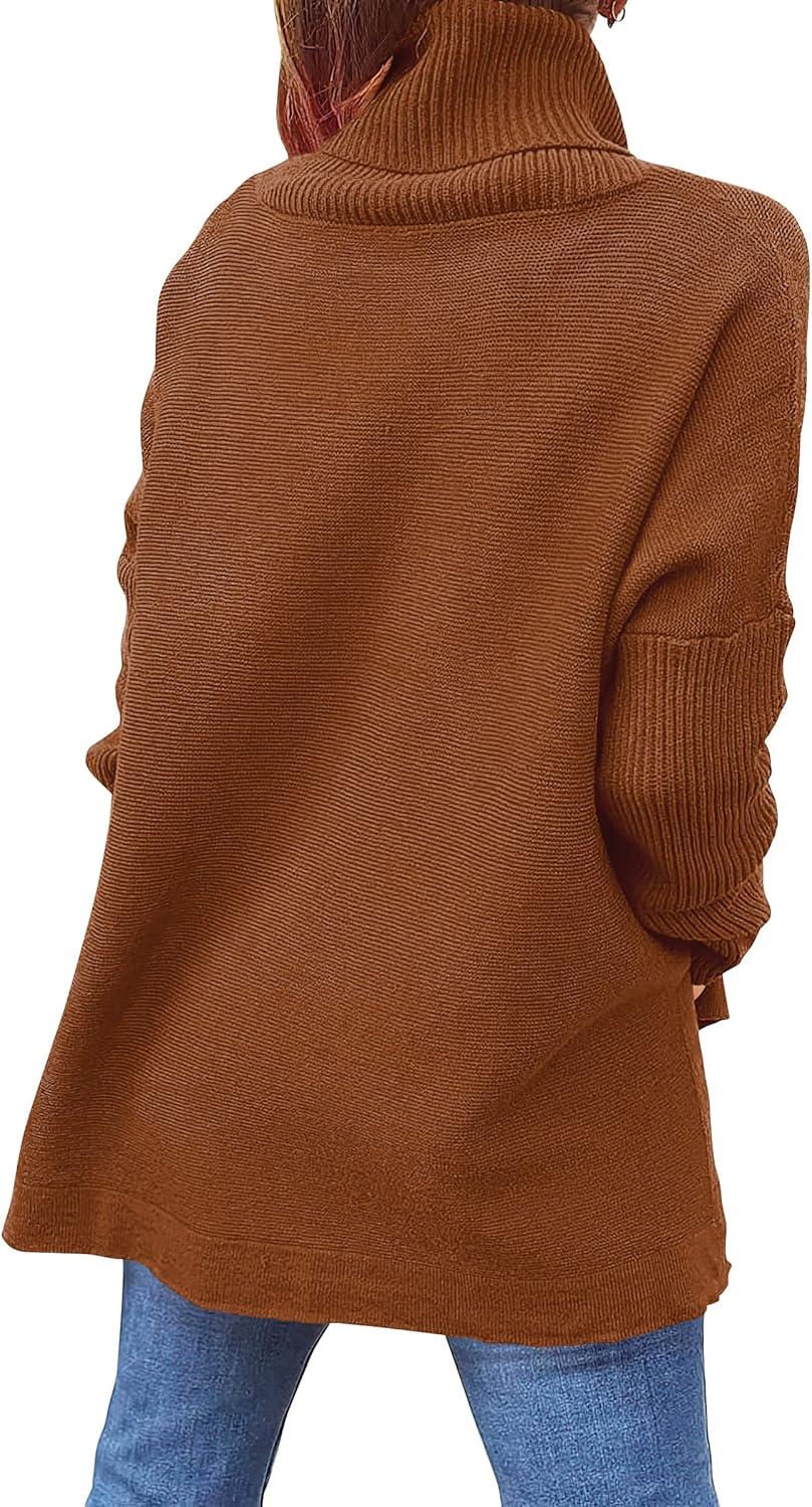 ANRABESS Women's Oversized Turtleneck Batwing Sleeve Spilt Casual Loose Knit Tunic Pullover Sweater Tops 2025 Fall Outfits(Auburn)