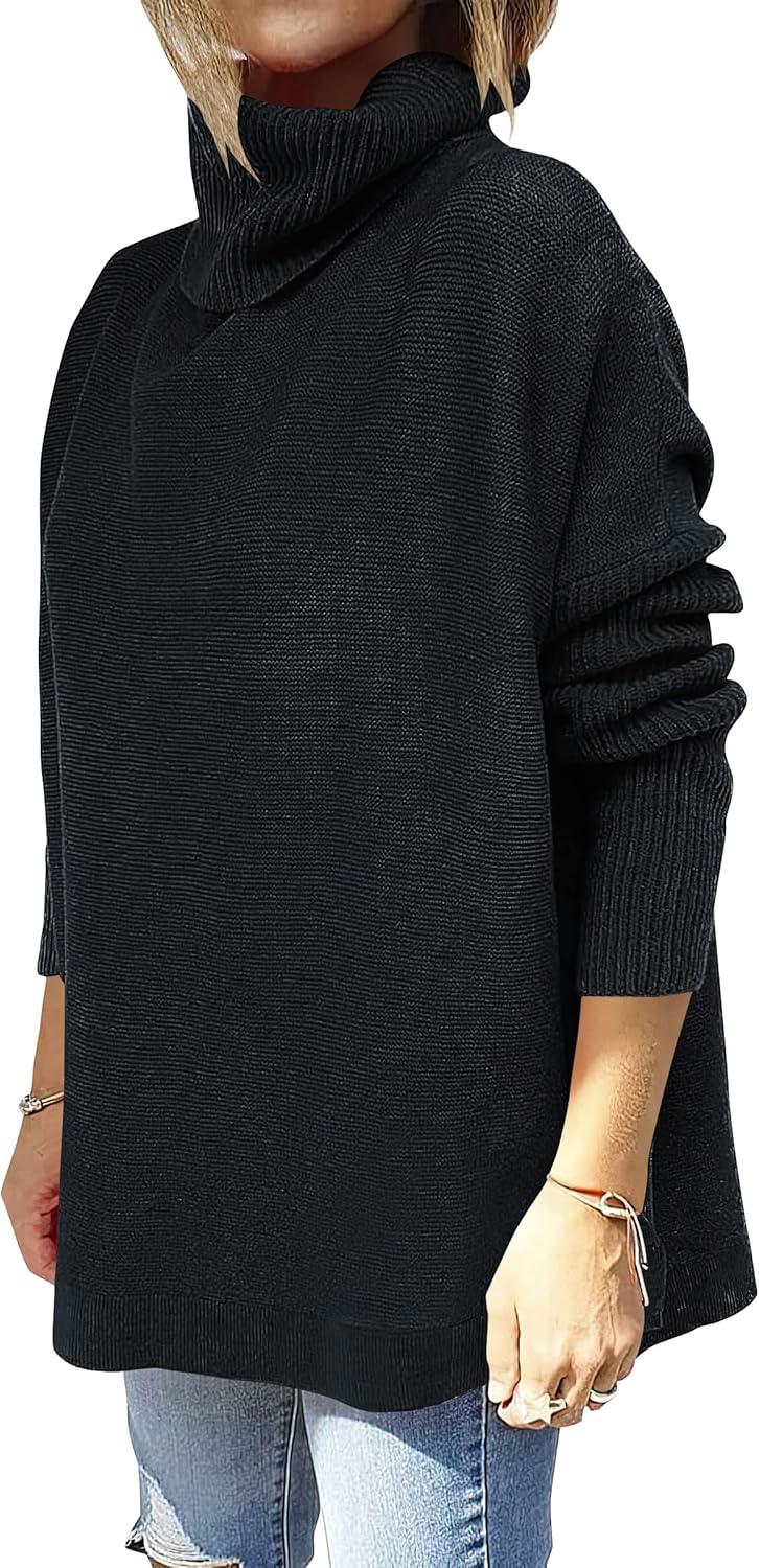 imageANRABESS Womens Oversized Turtleneck Batwing Sleeve Spilt Casual Loose Knit Tunic Pullover Sweater Tops 2025 Fall OutfitsBlack