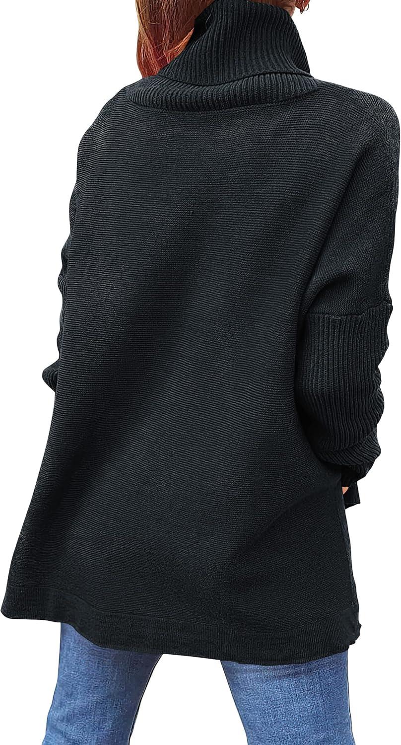 ANRABESS Women's Oversized Turtleneck Batwing Sleeve Spilt Casual Loose Knit Tunic Pullover Sweater Tops 2025 Fall Outfits(Black)