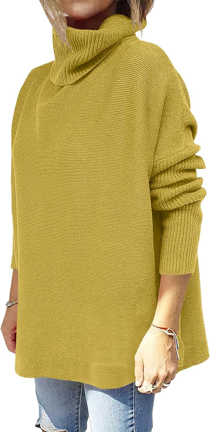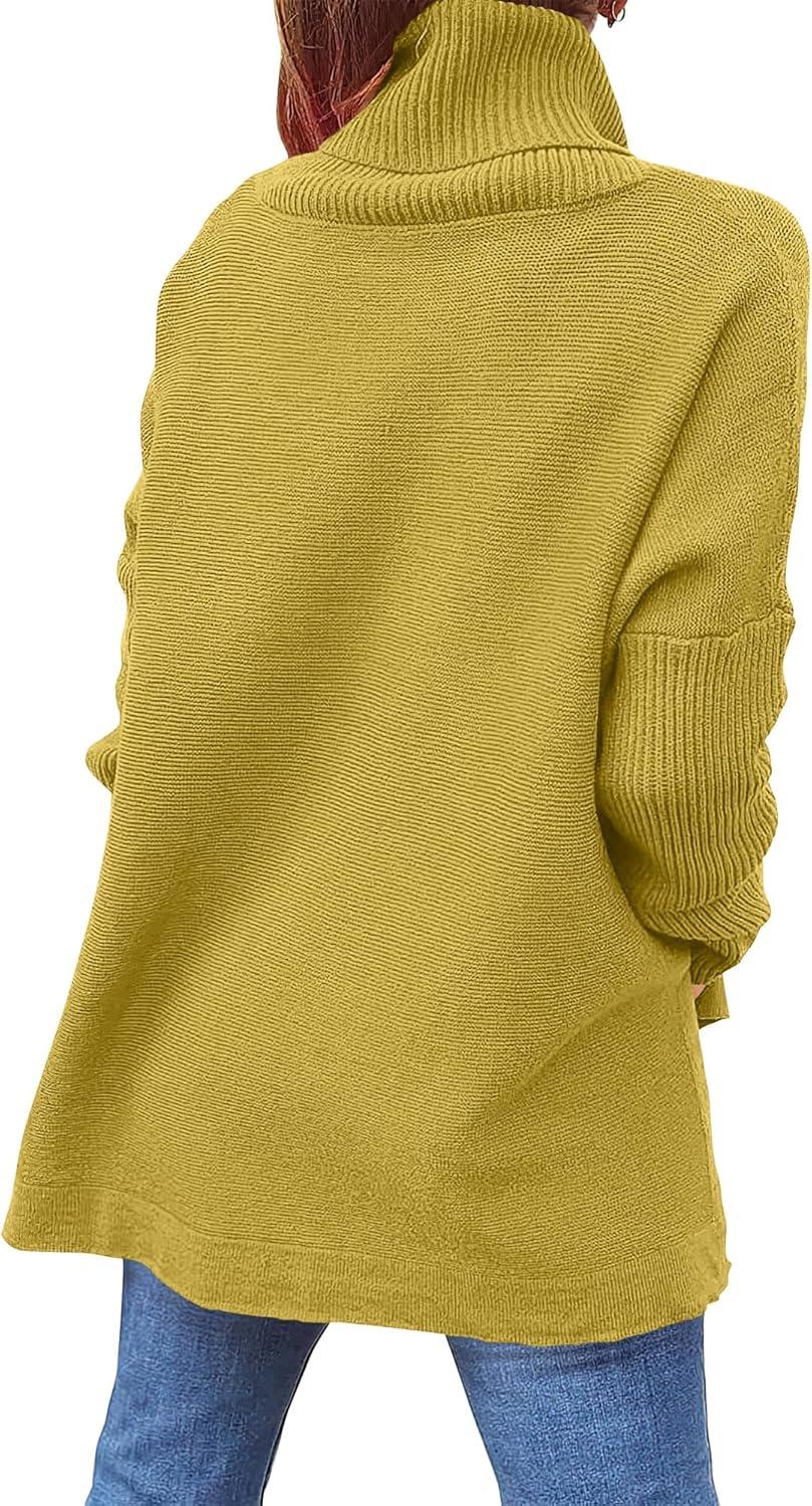 imageANRABESS Womens Oversized Turtleneck Batwing Sleeve Spilt Casual Loose Knit Tunic Pullover Sweater Tops 2025 Fall OutfitsGrass