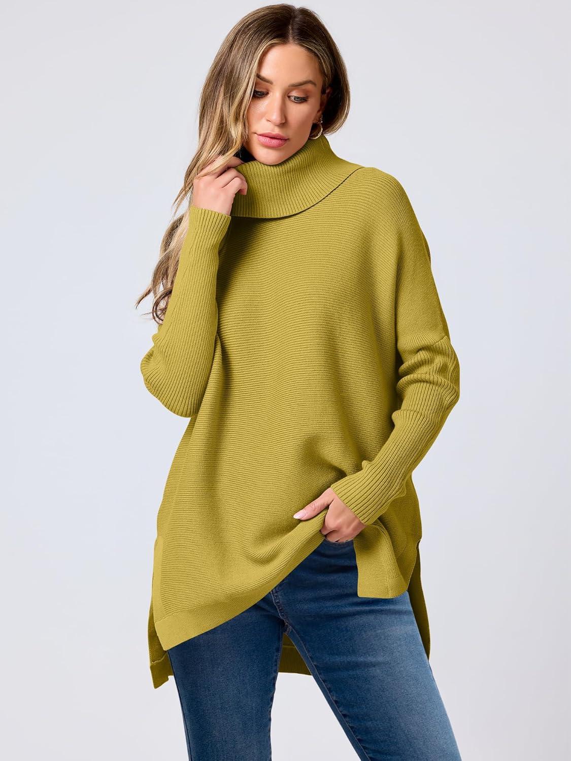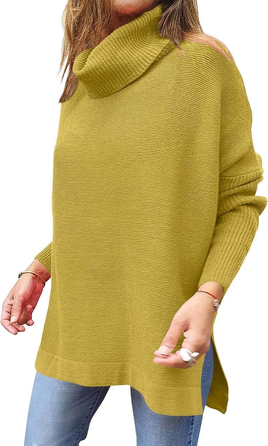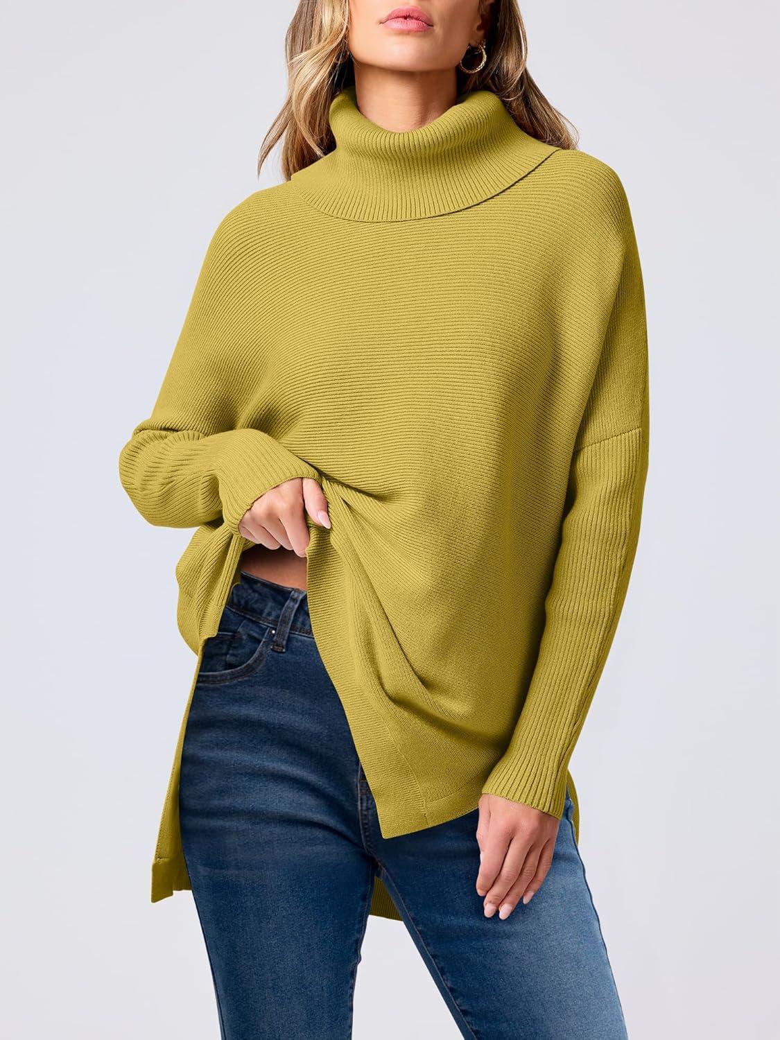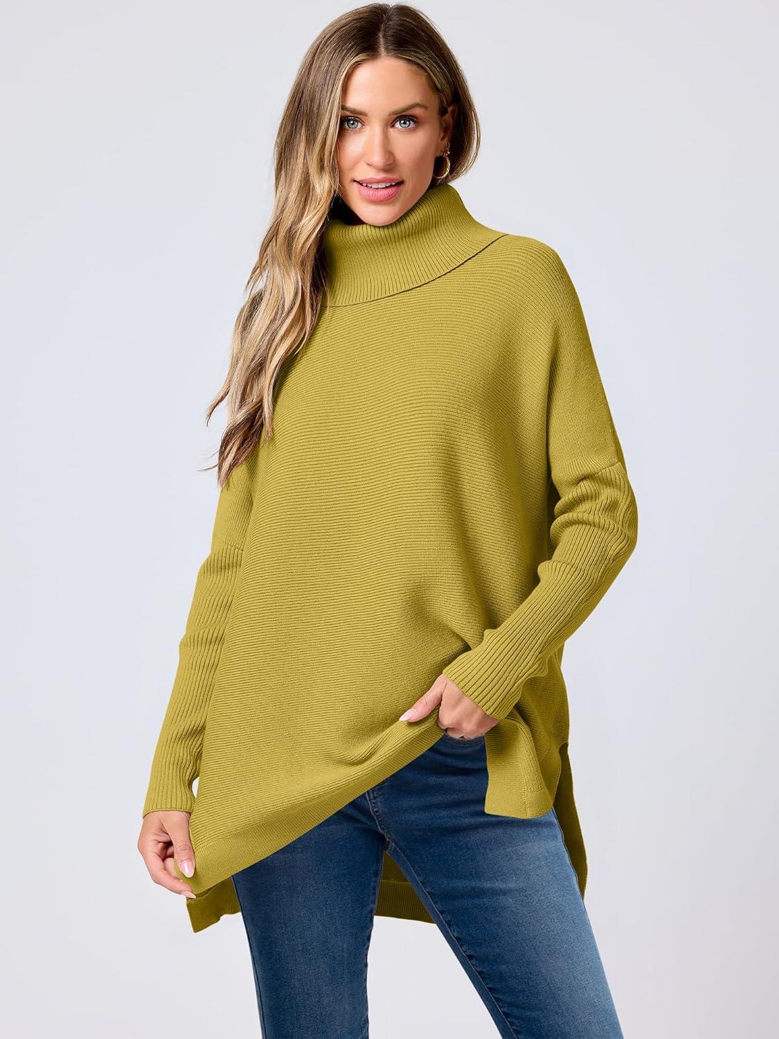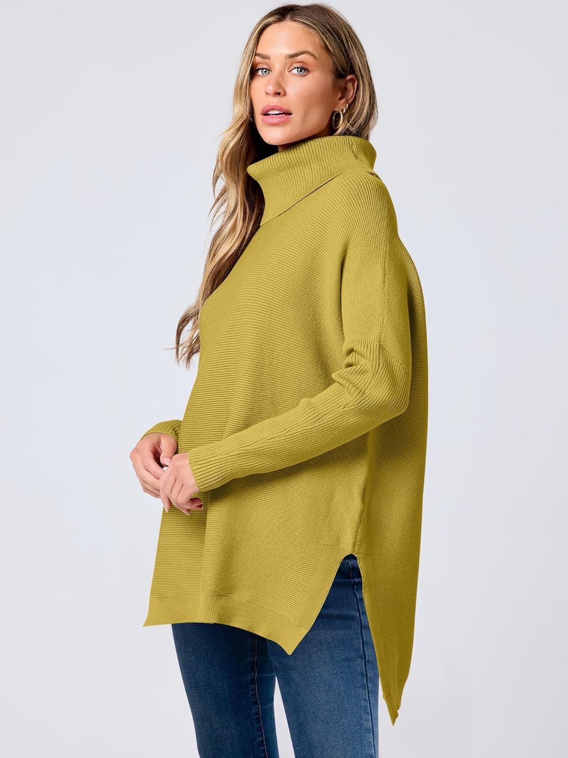 ANRABESS Women’s Oversized Turtleneck Batwing Sleeve Spilt Casual Loose Knit Tunic Pullover Sweater Tops 2025 Fall Outfits(Grass)