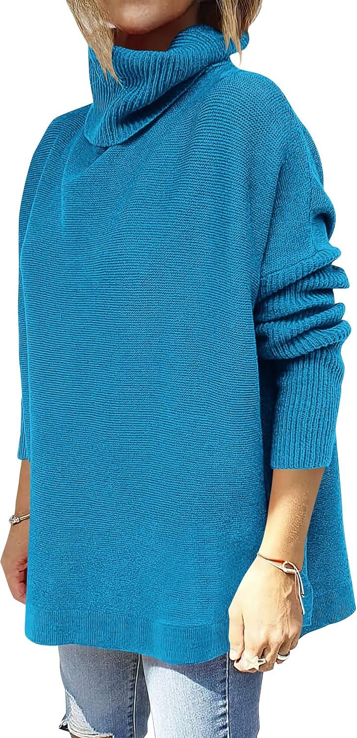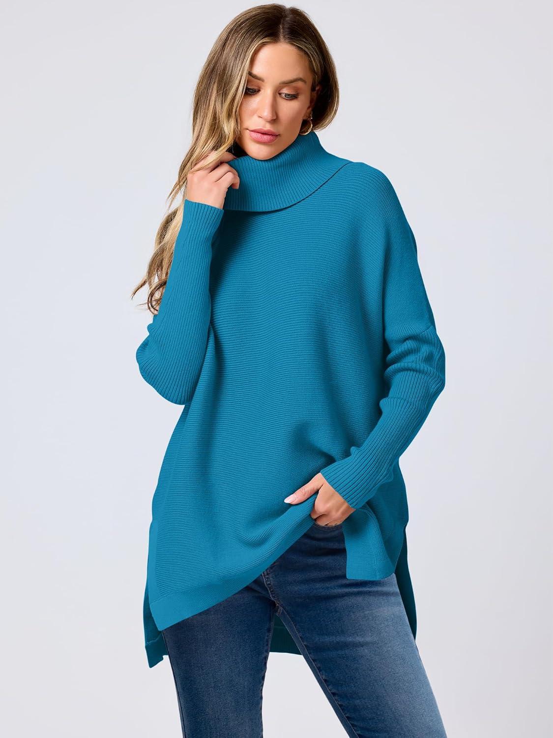 ANRABESS Women’s Oversized Turtleneck Batwing Sleeve Spilt Casual Loose Knit Tunic Pullover Sweater Tops 2025 Fall Outfits(Lake)