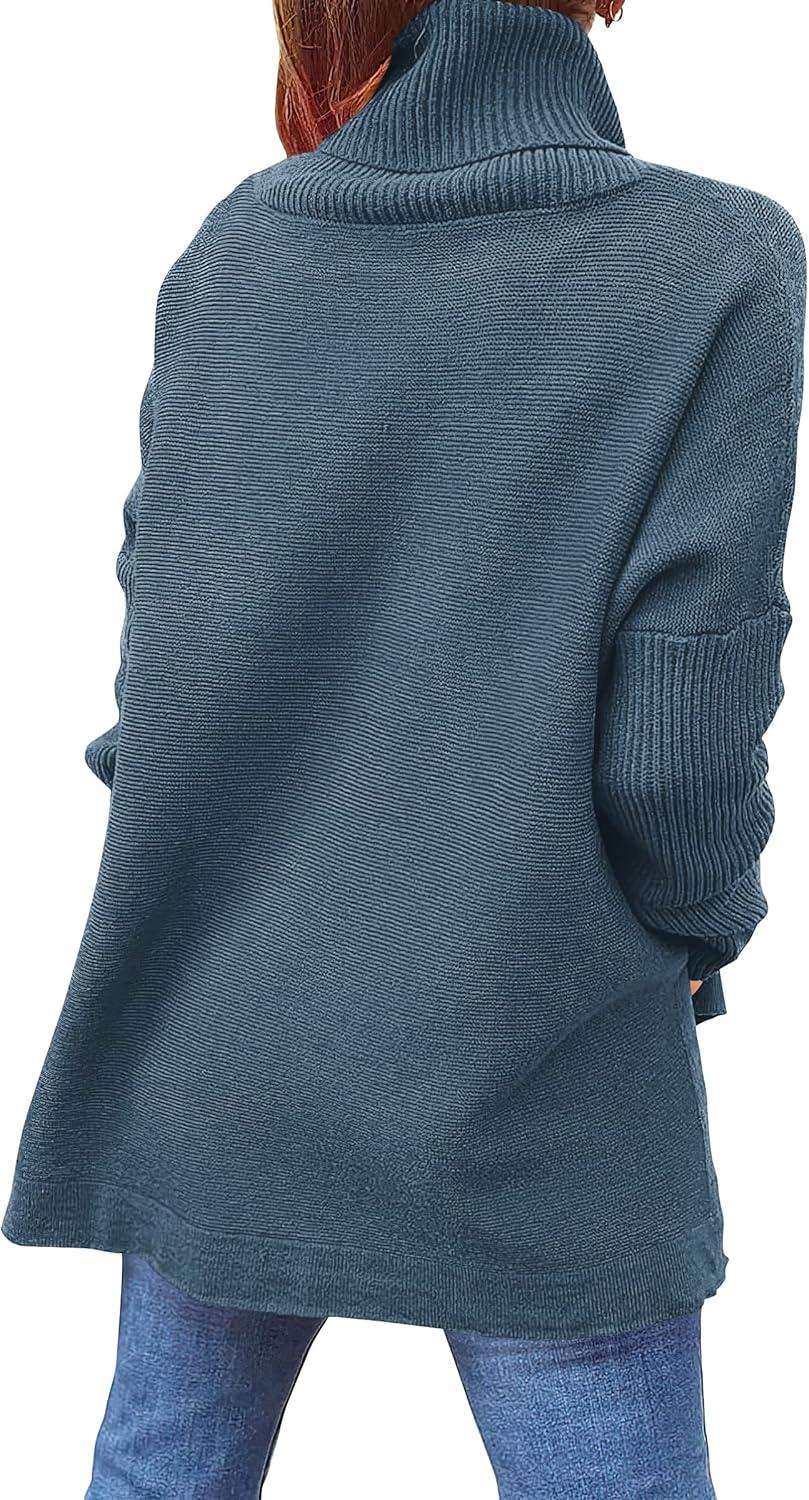 imageANRABESS Womens Oversized Turtleneck Batwing Sleeve Spilt Casual Loose Knit Tunic Pullover Sweater Tops 2025 Fall OutfitsTeal