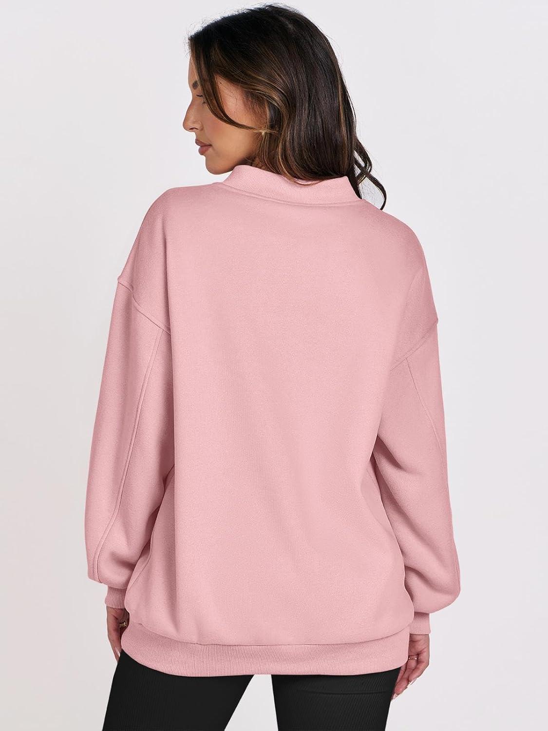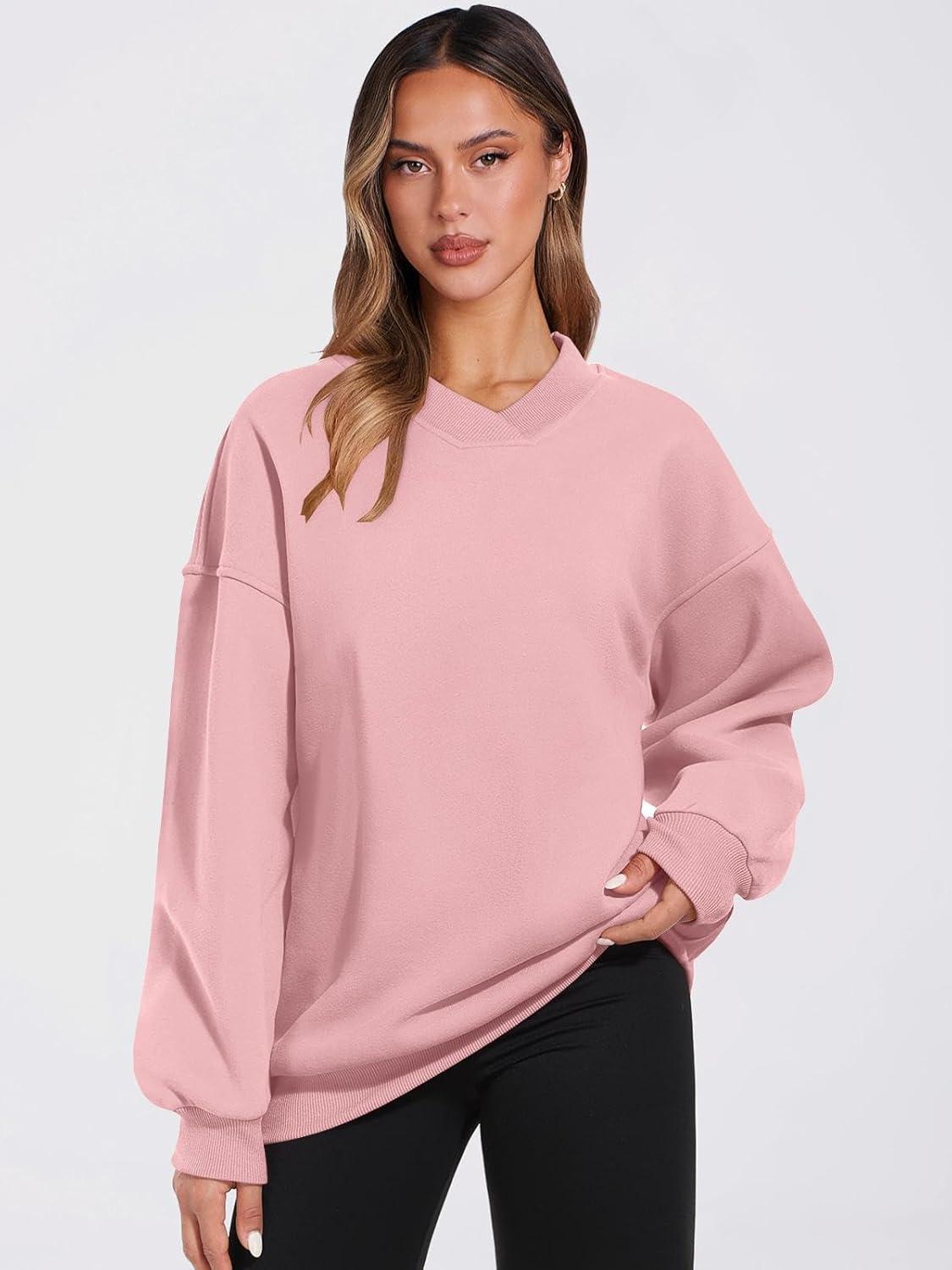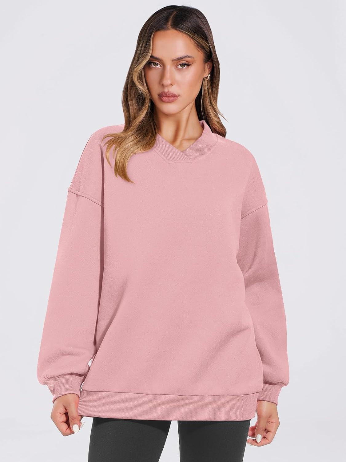 ANRABESS Womens Oversized V Neck Sweatshirt Fleece Long Sleeve Hoodies Pullover Comfy Top 2026 Outfits Teen Preppy Clothes(Light Pink)