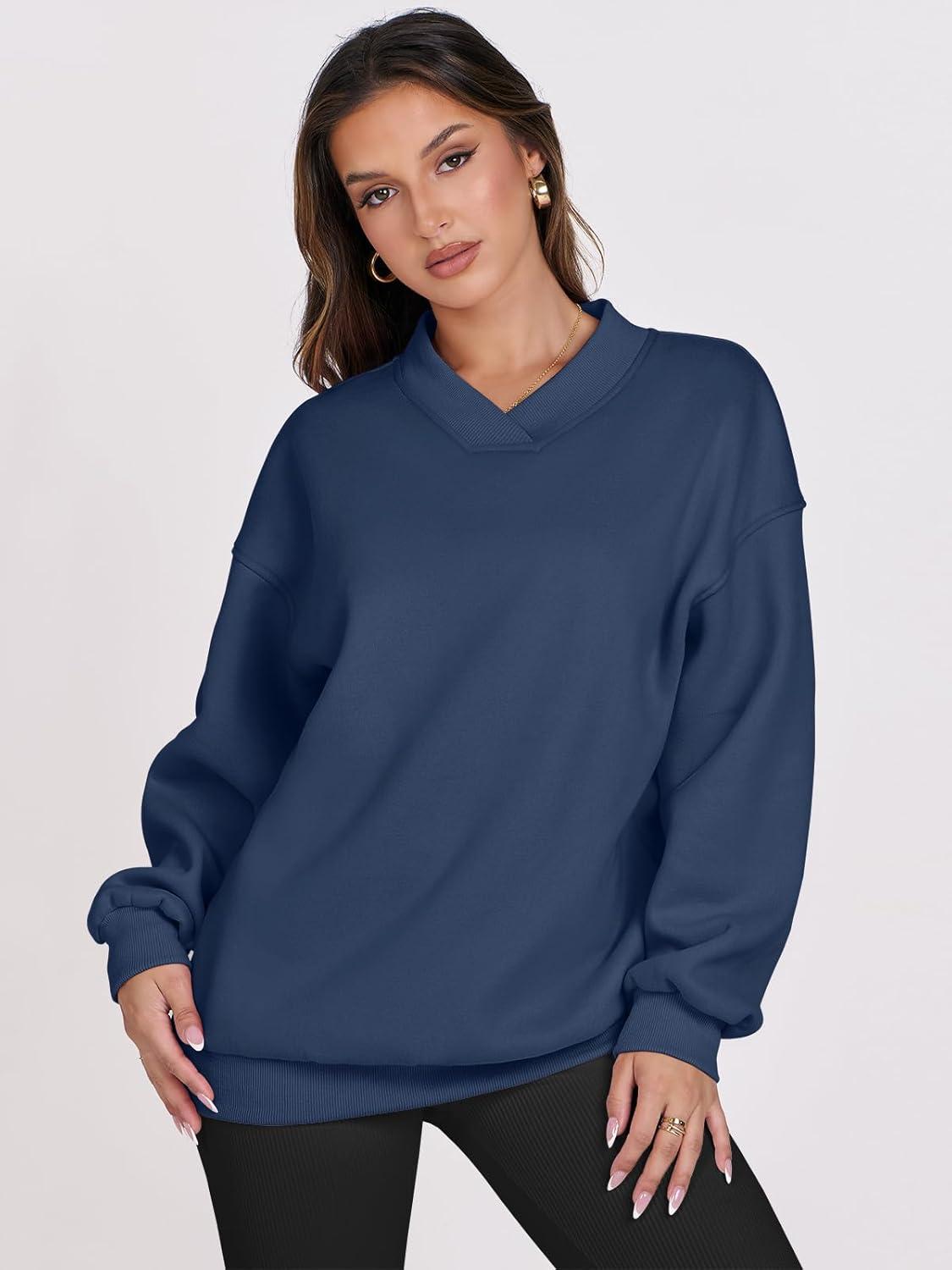 imageANRABESS Womens Oversized V Neck Sweatshirt Fleece Long Sleeve Hoodies Pullover Comfy Top Outfits 2025 Teen Preppy ClothesNavy Blue