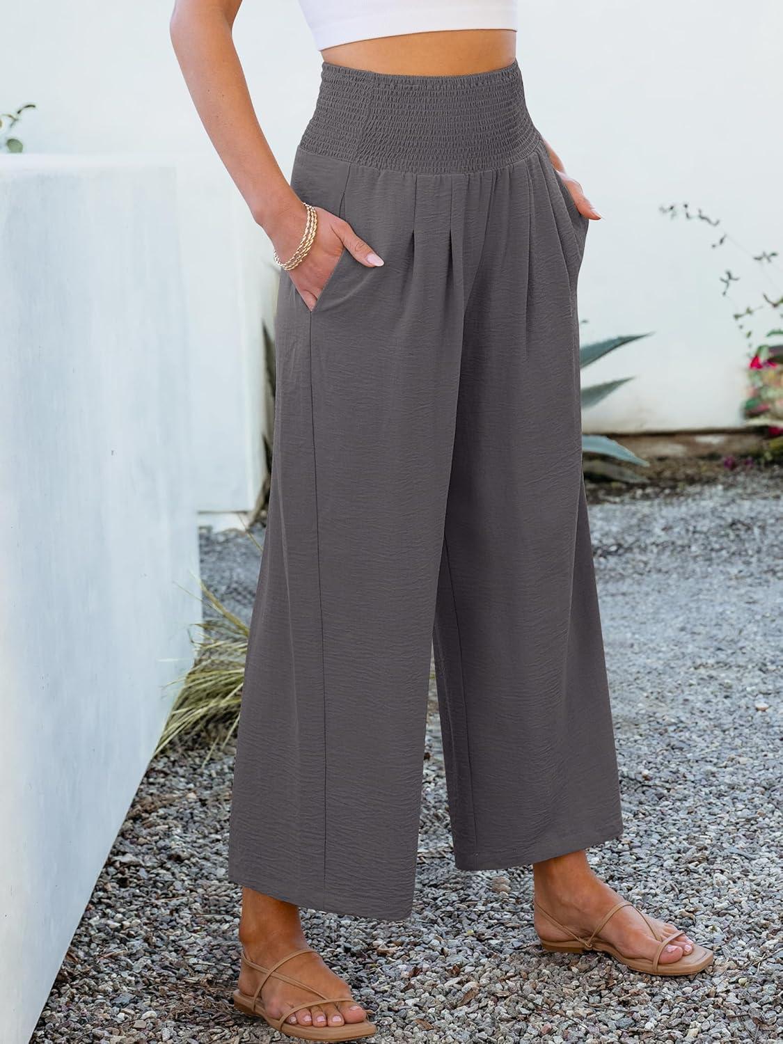 ANRABESS Womens Pants Wide Leg High Waisted Palazzo Pants Summer Flowy Beach Lounge Casual Trousers with Pockets(Dark Grey)