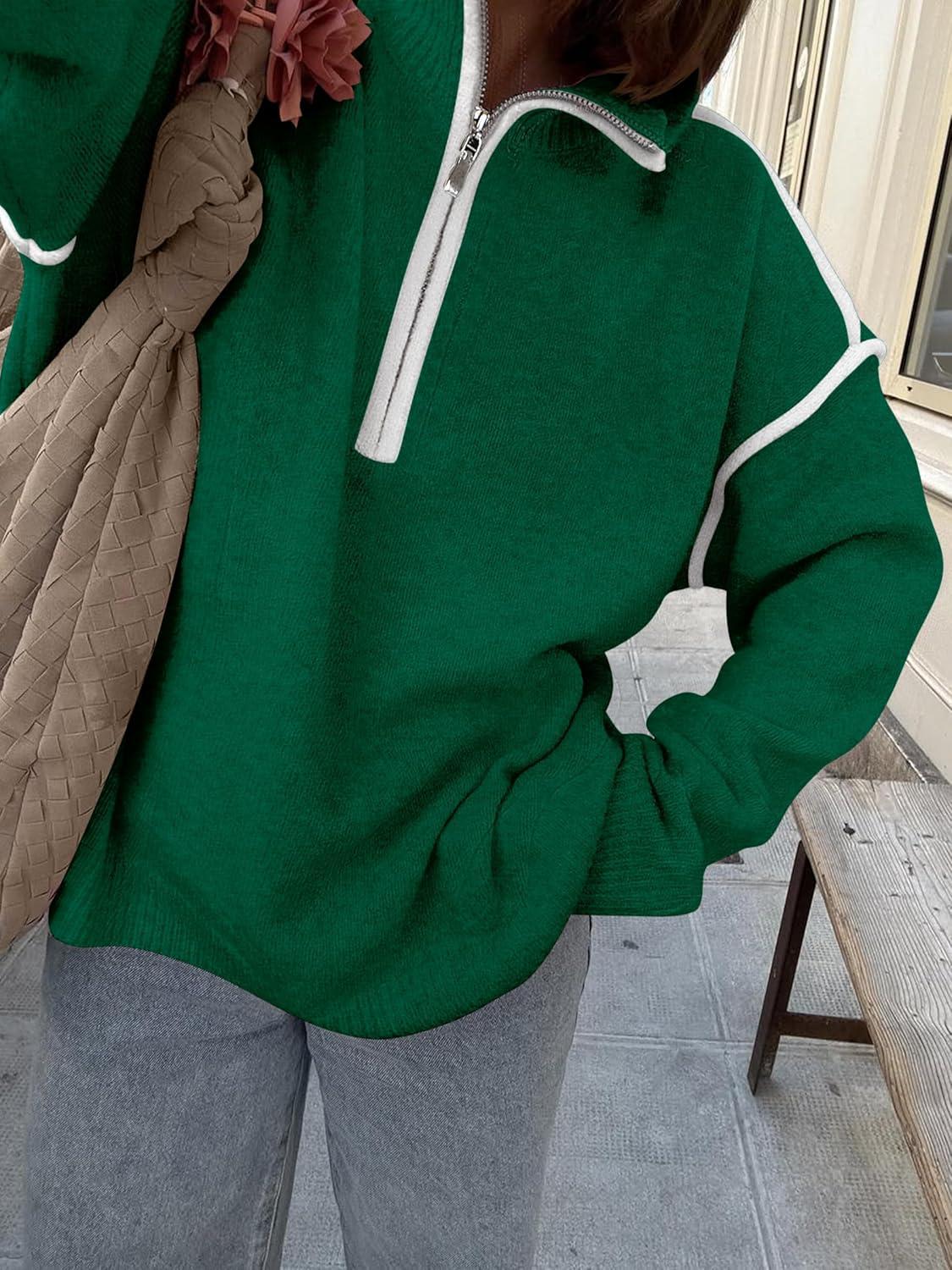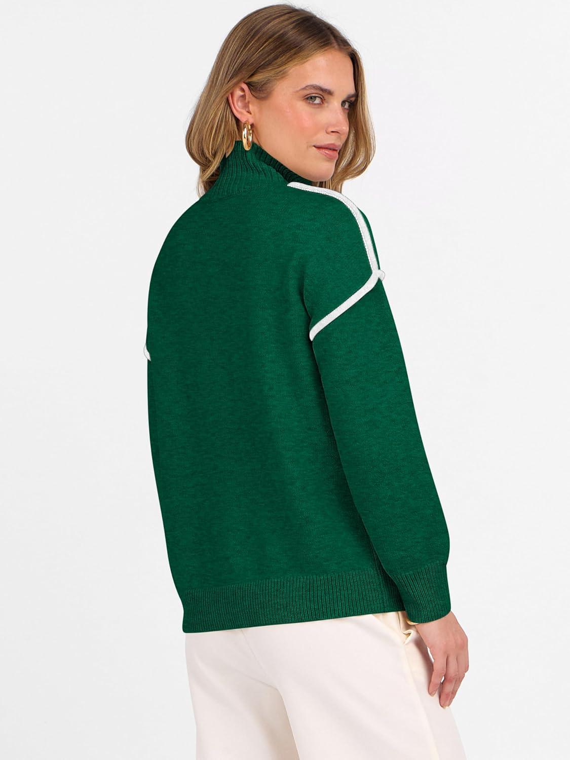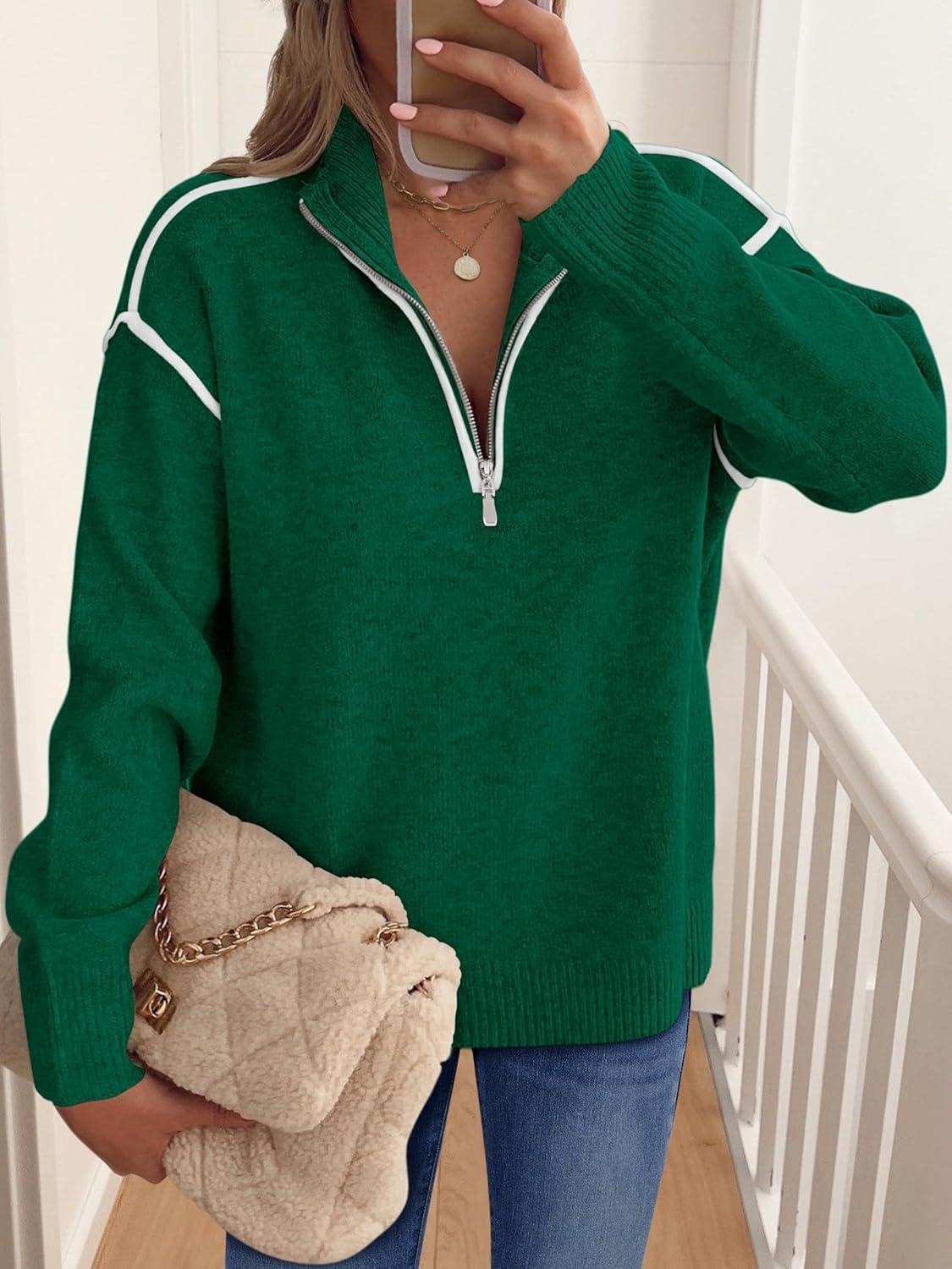 ANRABESS Womens Quarter Zip Sweaters Fall Long Sleeve V Neck Shirts Collared Business Casual Tops Knit Pullover Sweatshirts(Forest Green)