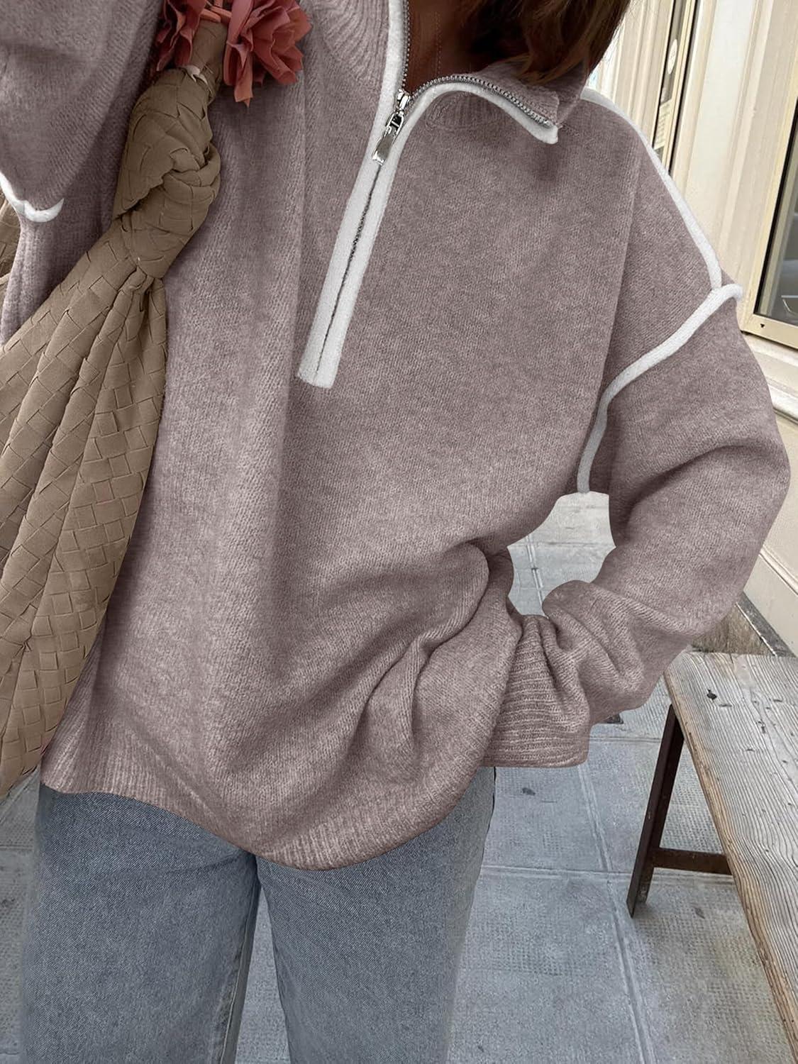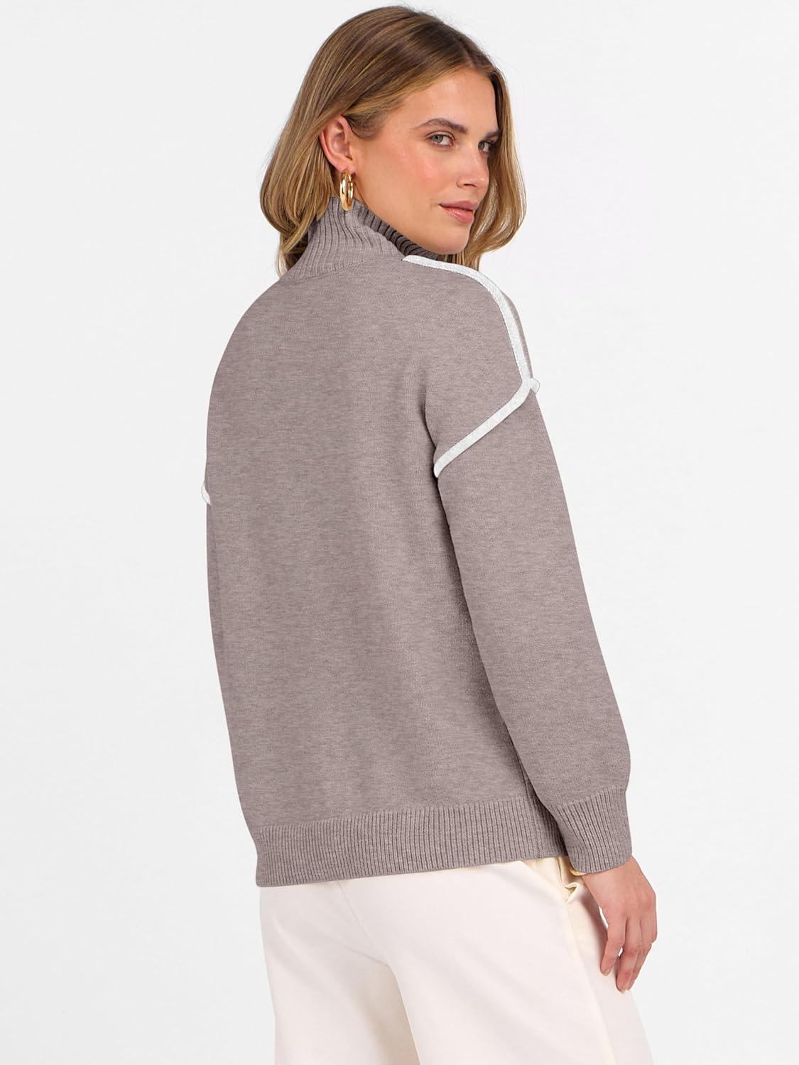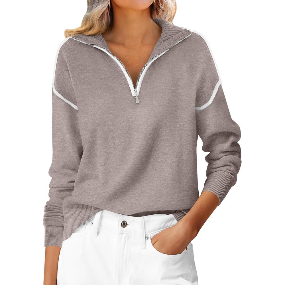 ANRABESS Womens Quarter Zip Sweaters Fall Long Sleeve V Neck Shirts Collared Business Casual Tops Knit Pullover Sweatshirts(Grey Khaki)