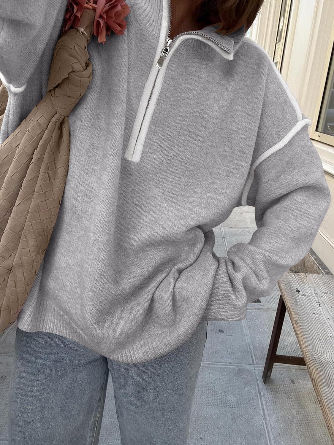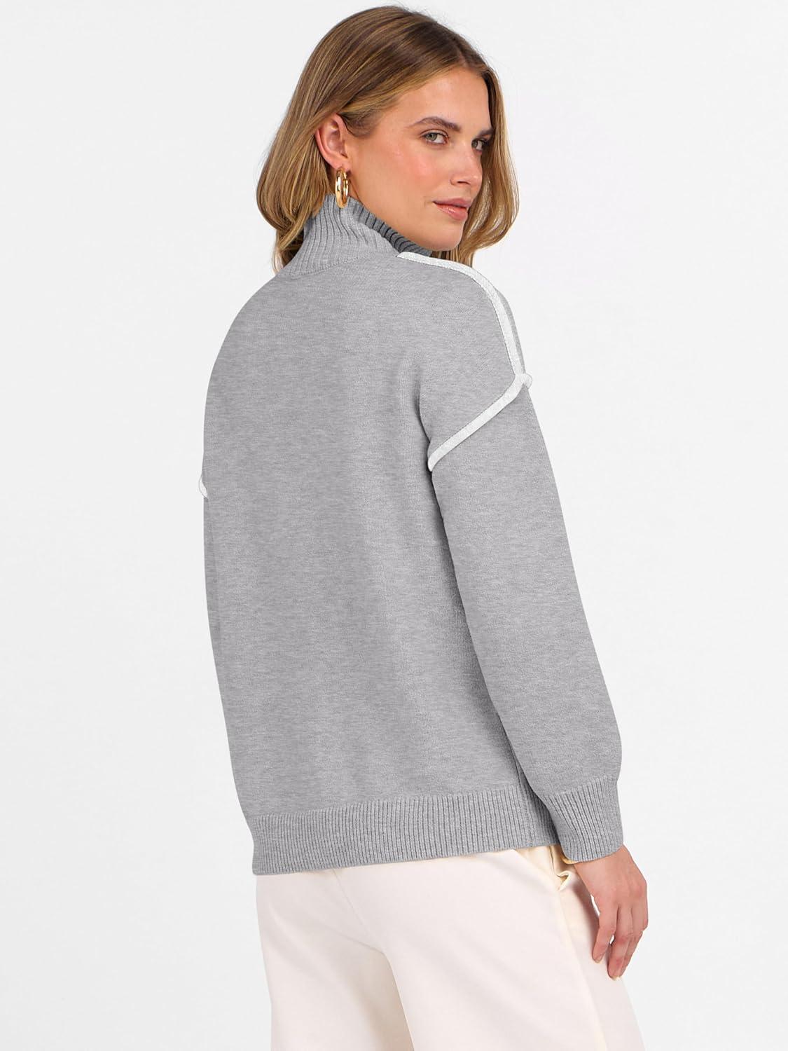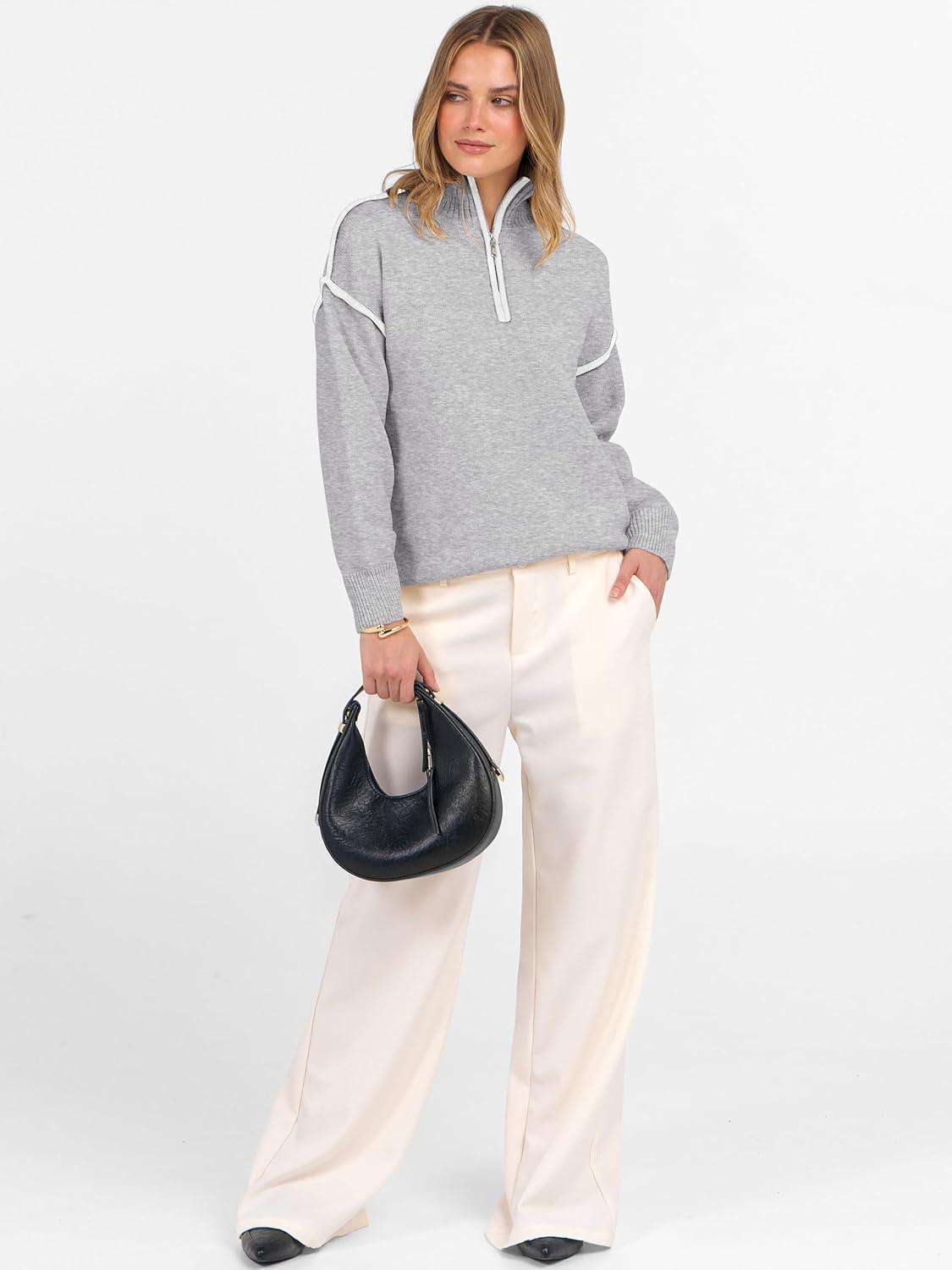 ANRABESS Womens Quarter Zip Sweaters Fall Long Sleeve V Neck Shirts Collared Business Casual Tops Knit Pullover Sweatshirts(Grey)