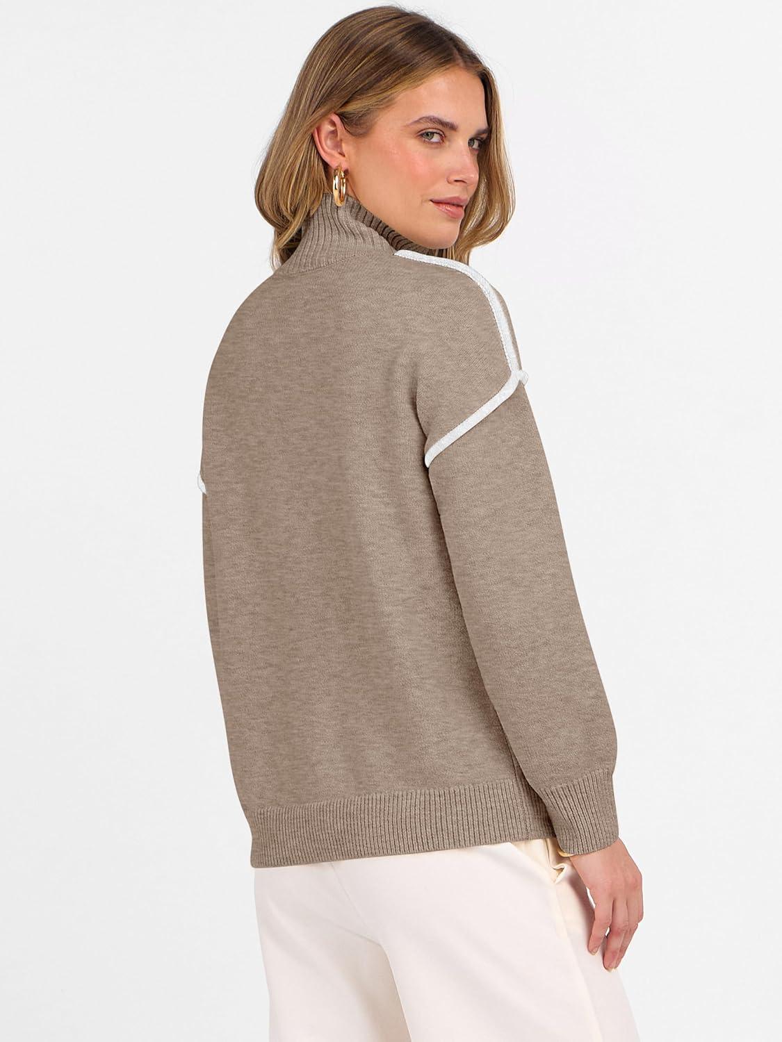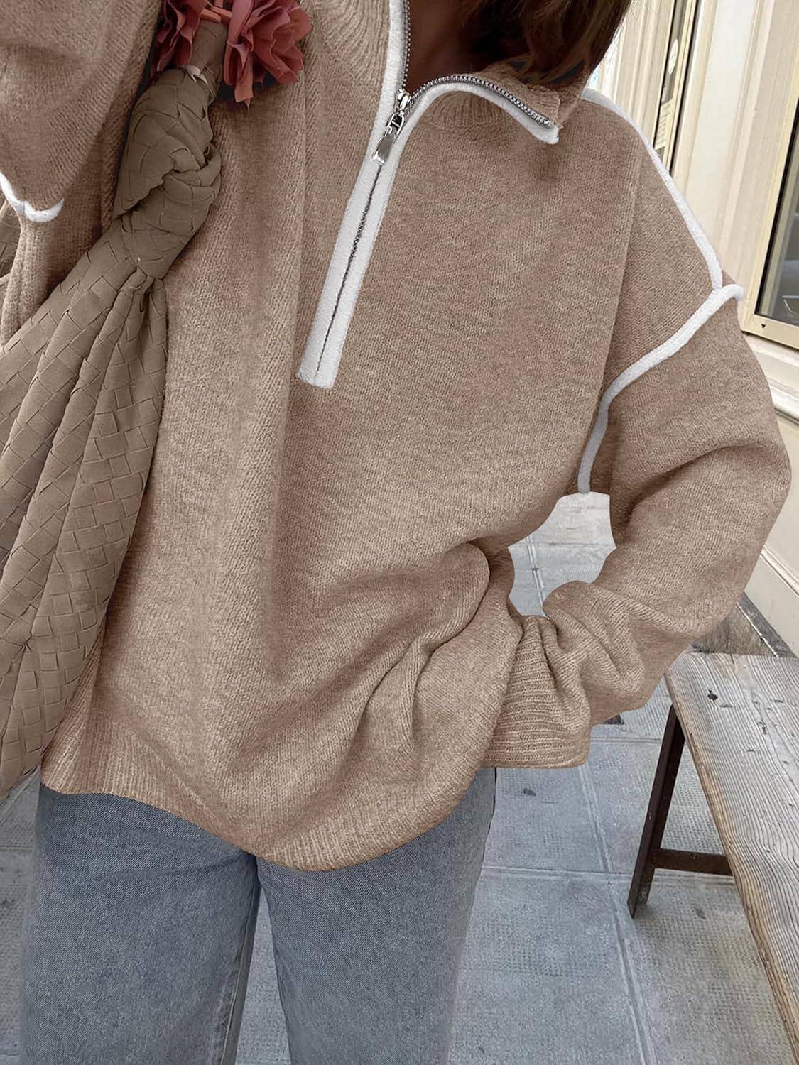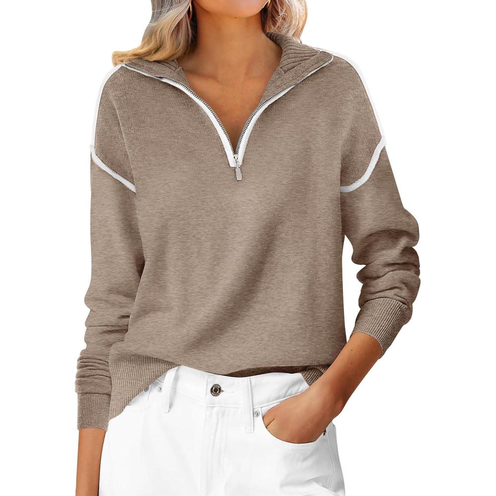 ANRABESS Womens Quarter Zip Sweaters Fall Long Sleeve V Neck Shirts Collared Business Casual Tops Knit Pullover Sweatshirts(Tan)