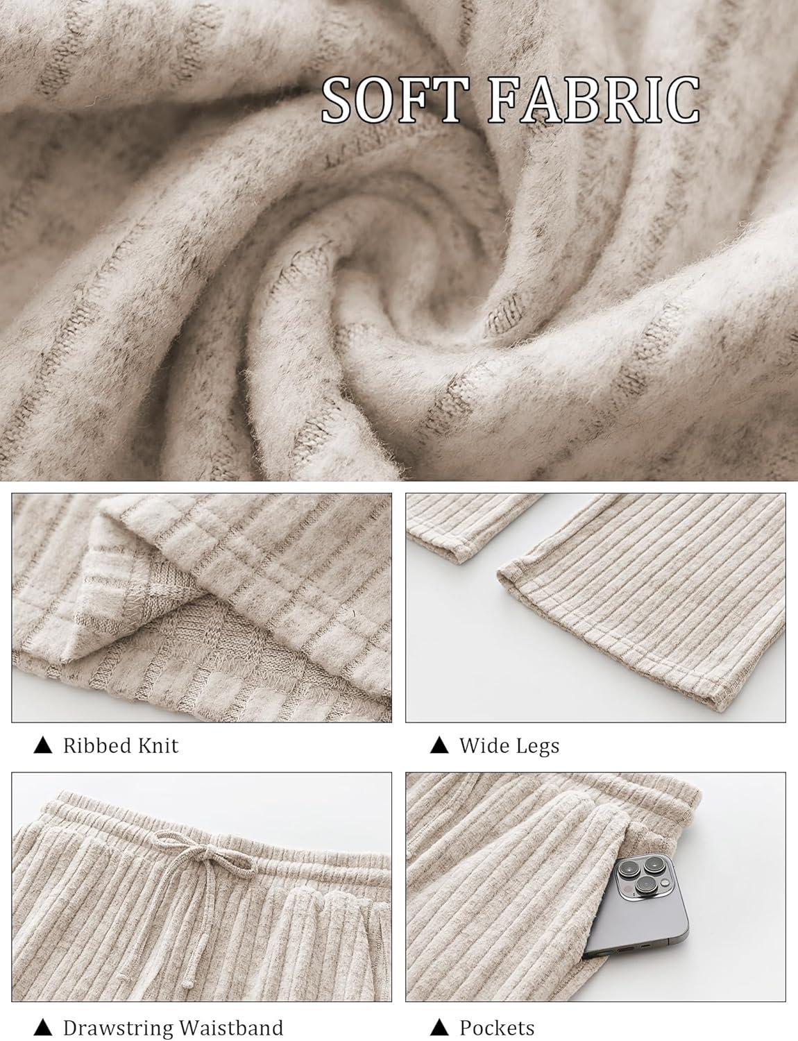 ANRABESS Womens Ribbed Knit Lounge Pajama Pants Soft Fuzzy Comfy Straight Leg Drawstring Fall Loose Pj Bottoms with Pockets(Tan)