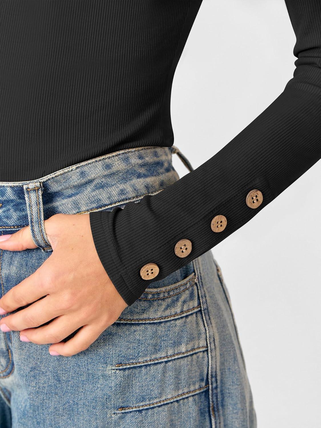 ANRABESS Womens Ribbed Long Sleeve Tops Slim Fitted Dressy Shirts Basic Tee Tshirts 2025 Fall Fasion Outfits with Buttons(Black)