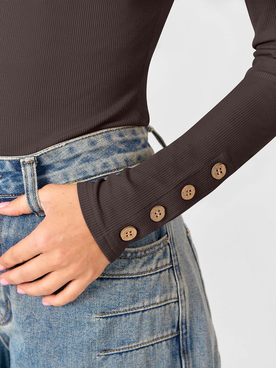 ANRABESS Womens Ribbed Long Sleeve Tops Slim Fitted Dressy Shirts Basic Tee Tshirts 2025 Fall Fasion Outfits with Buttons(Coffee)