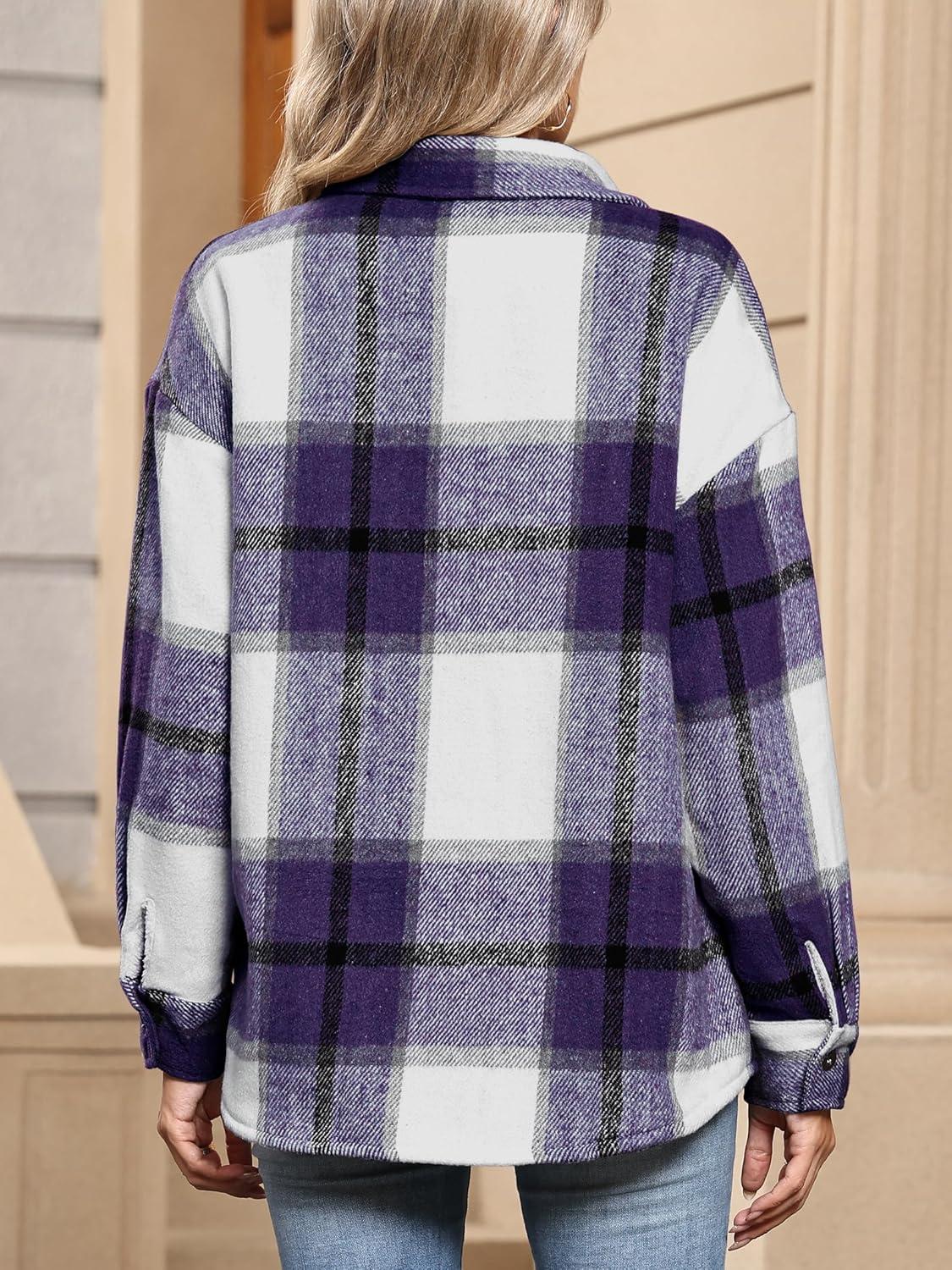 ANRABESS Womens Sherpa Fleece Lined Flannel Plaid Shirt Jackets Fuzzy Warm Button Down Shacket with Pockets 2025 Fall Outfits(Purple Plaid)