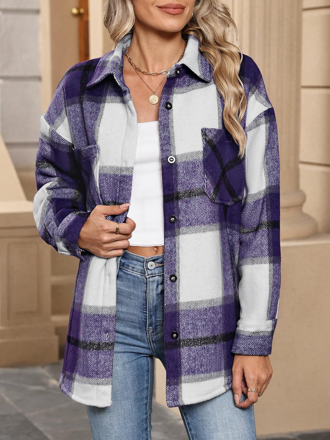 imageANRABESS Womens Sherpa Fleece Lined Flannel Plaid Shirt Jackets Fuzzy Warm Button Down Shacket with Pockets 2025 Fall OutfitsPurple Plaid
