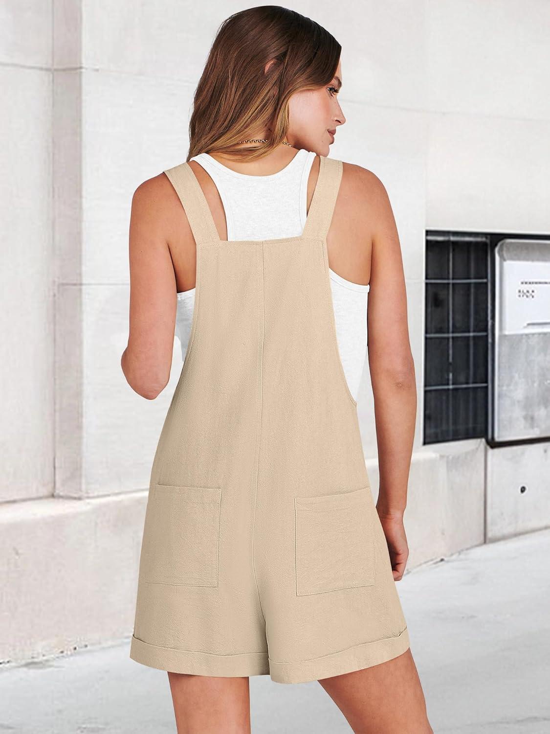 ANRABESS Women’s Short Overalls Summer Adjustable Strap Loose Fit Bib Shortalls Rompers Spring Travel Vacation Clothes(Khaki)