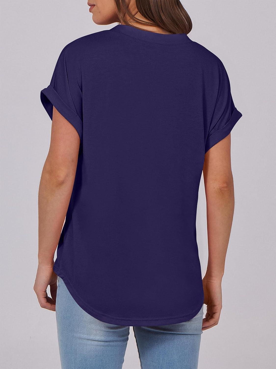ANRABESS Womens Short Sleeve Henley Tops V Neck Dressy Casual Blouses Summer Trendy Tee Shirts 2025 Vacation Fashion Clothes(Dark Blue)