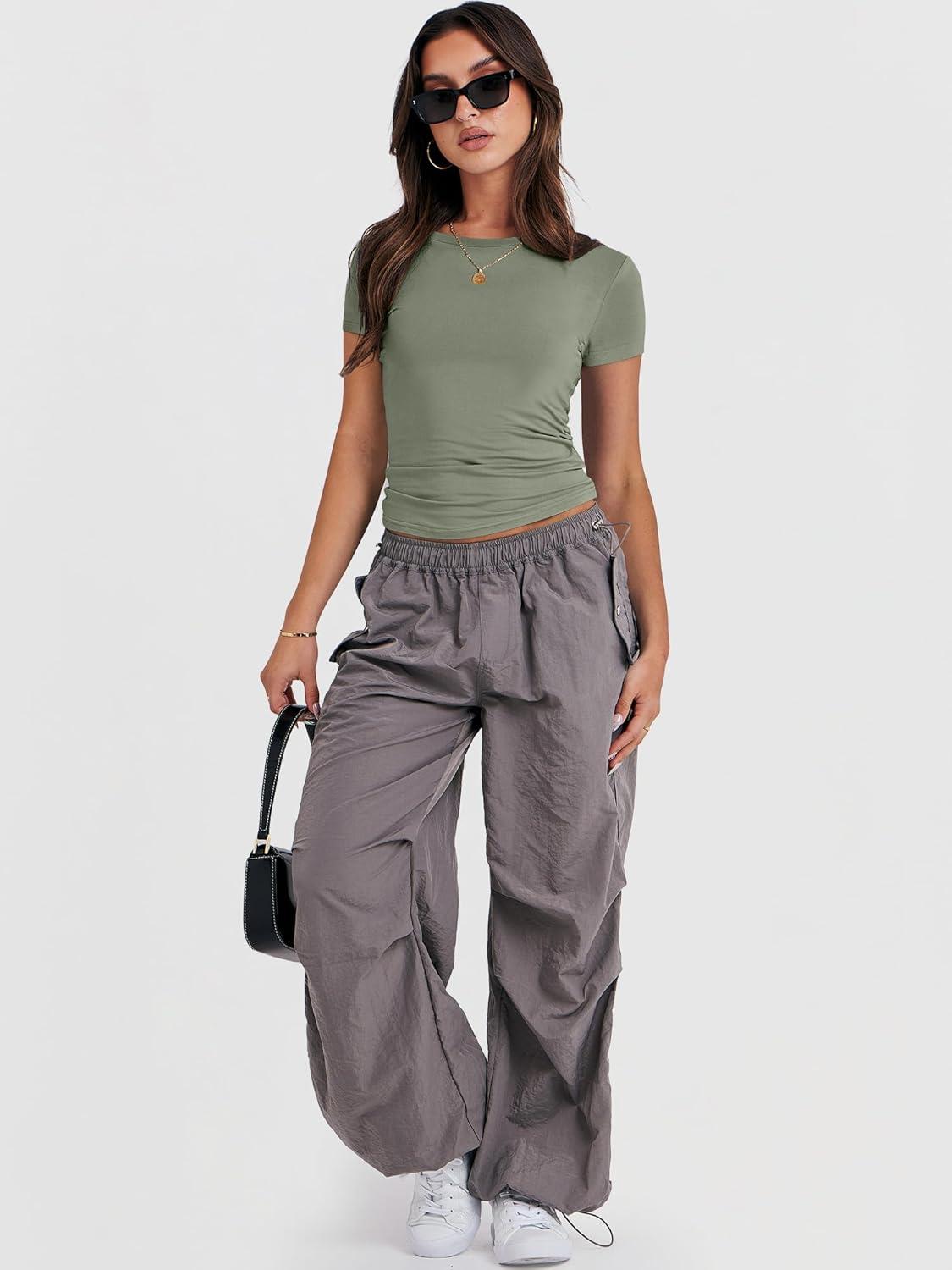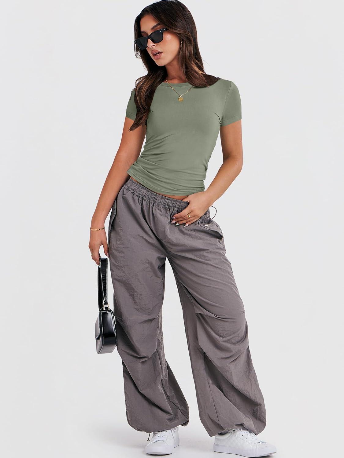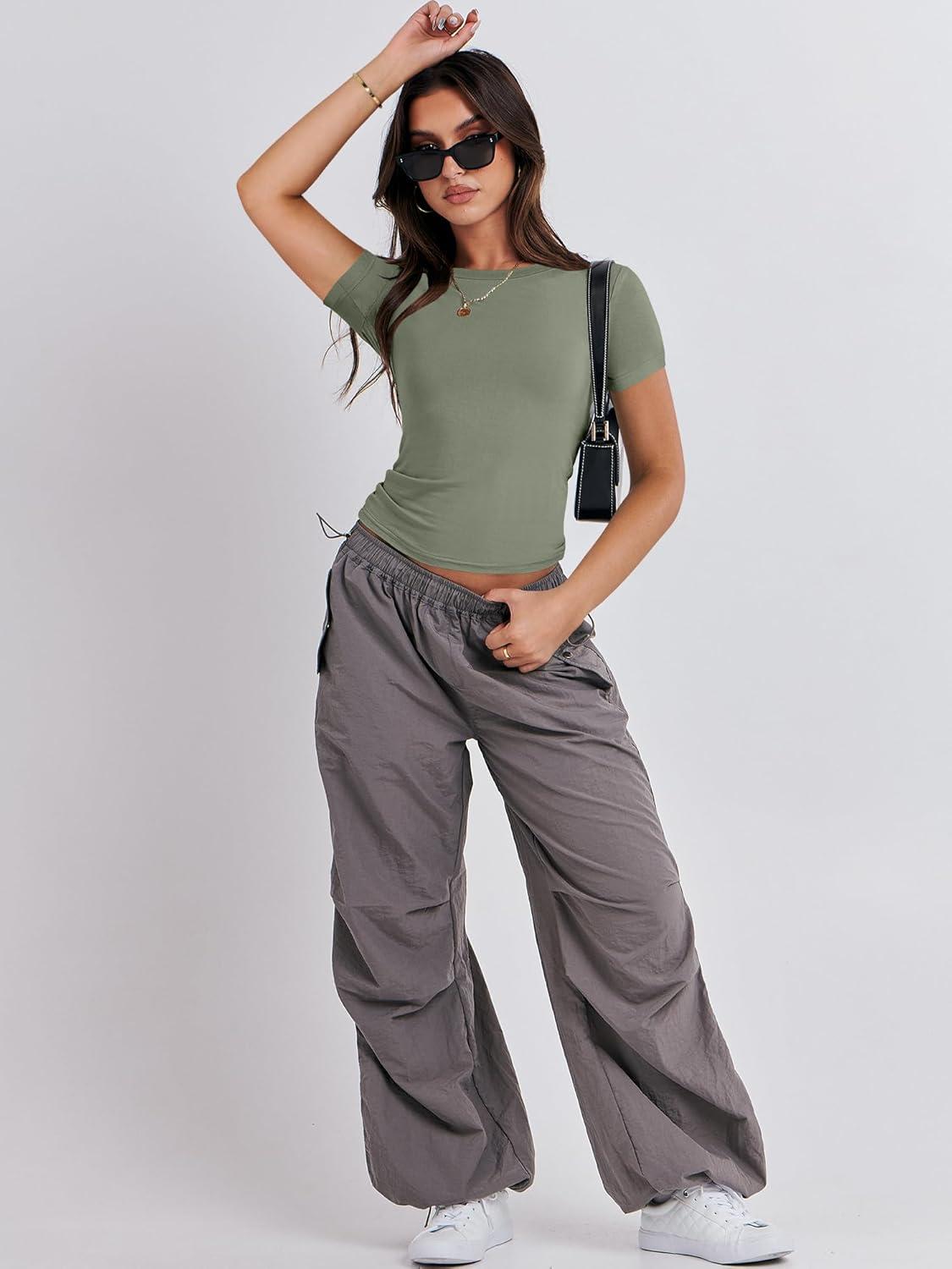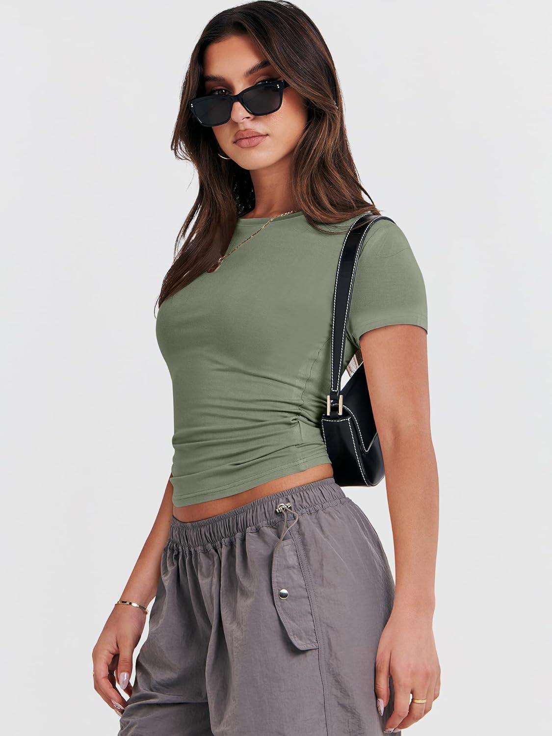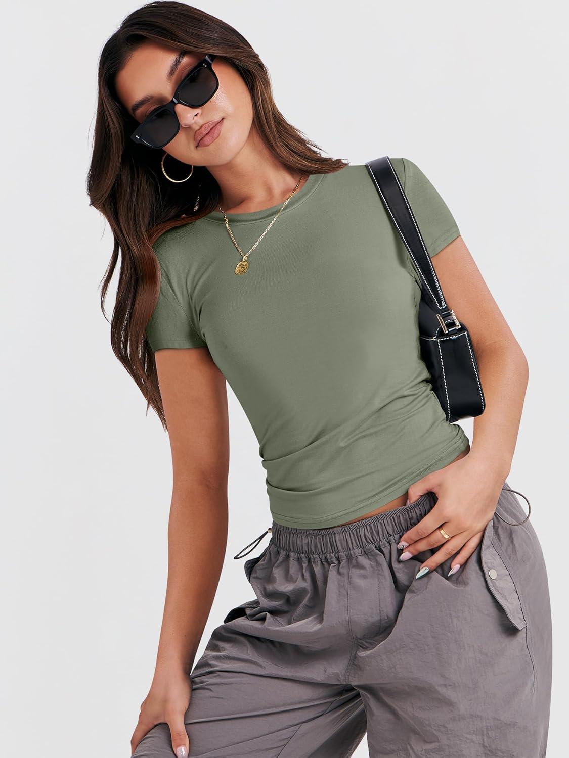 ANRABESS Women’s Short Sleeve Summer T Shirts Crew Neck Slim Fit Basic Tees 2025 Crop Tops Y2k Clothes Outfits(Army Green)