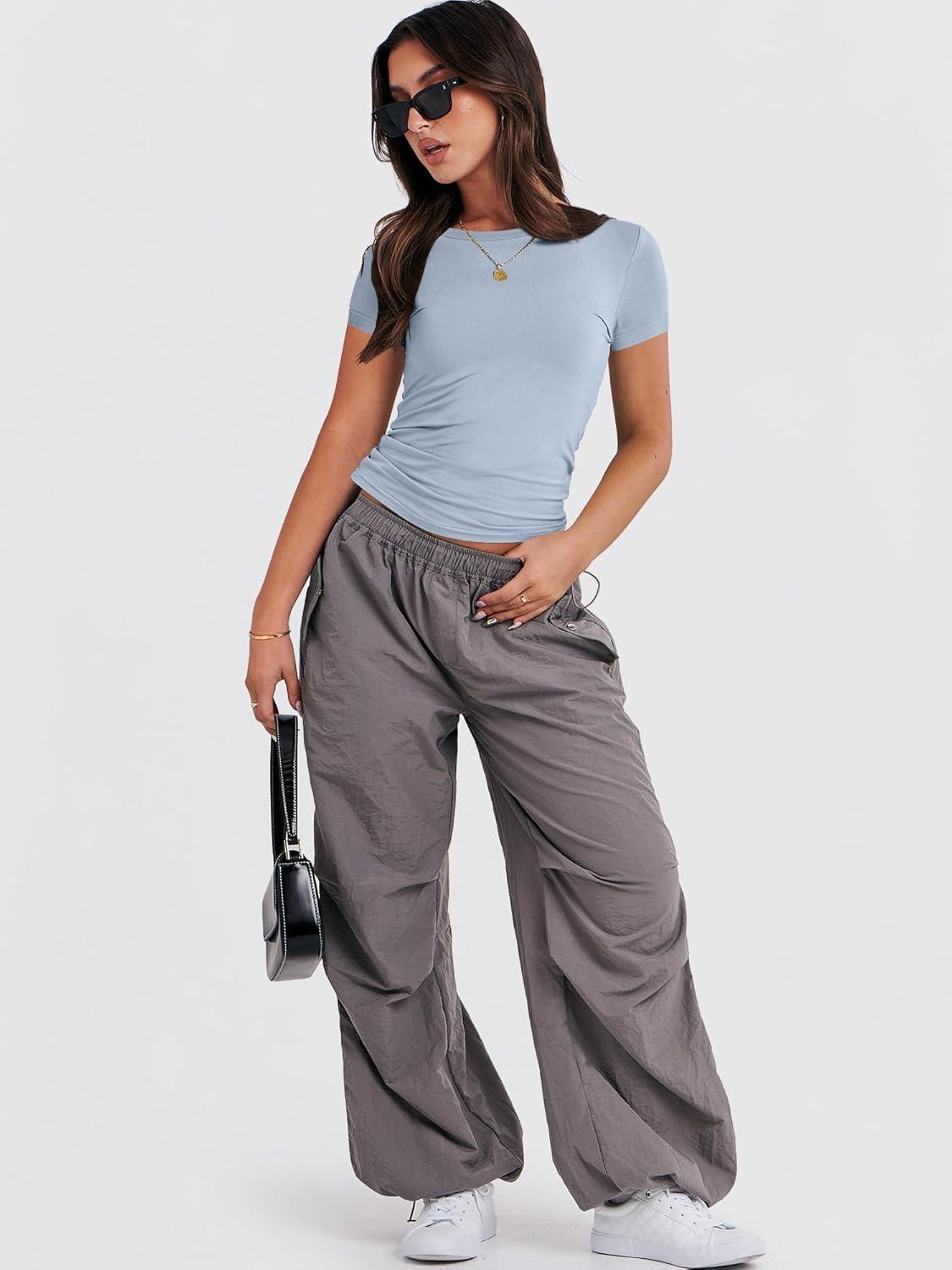 ANRABESS Women’s Short Sleeve Summer T Shirts Crew Neck Slim Fit Basic Tees 2025 Crop Tops Y2k Clothes Outfits(Haze Blue)