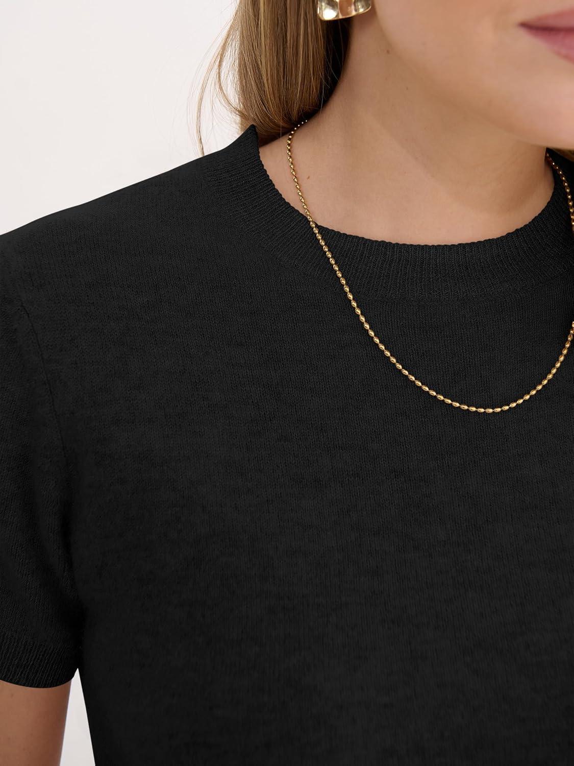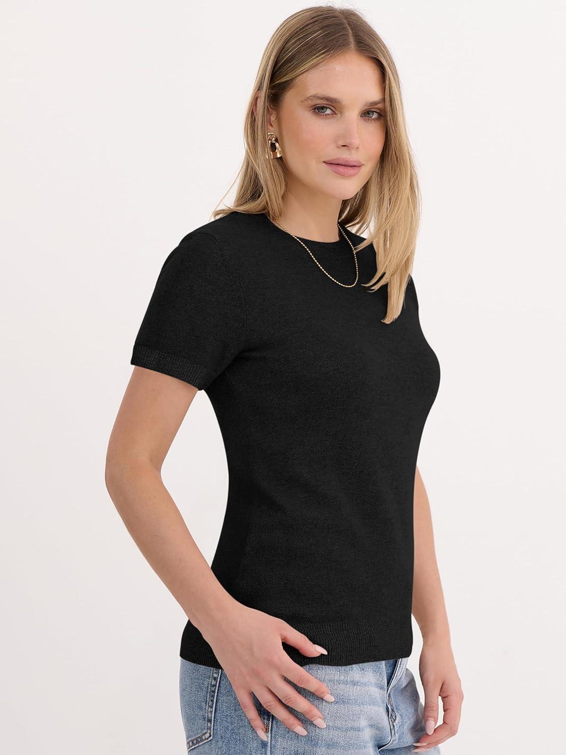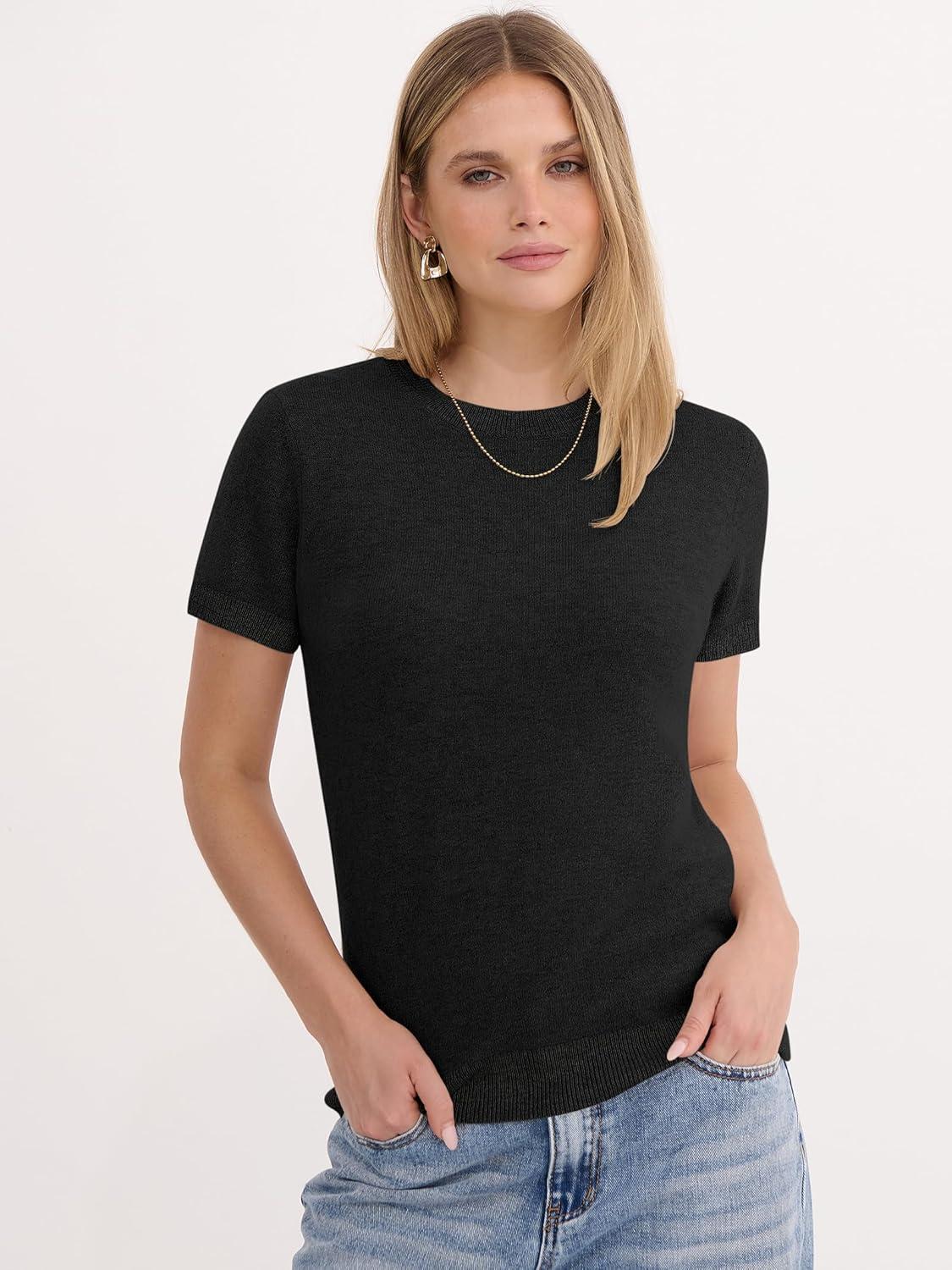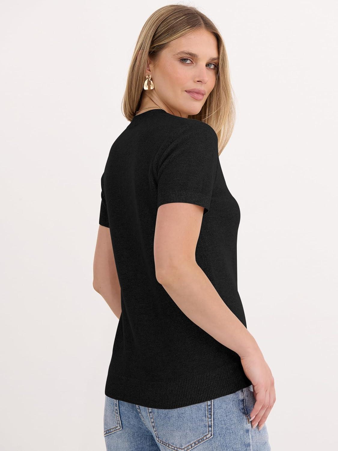 imageANRABESS Womens Short Sleeve Sweater100 Wool Sweaters TopCasual for Work OfficeVersatile for Summer Spring Early FallBlack