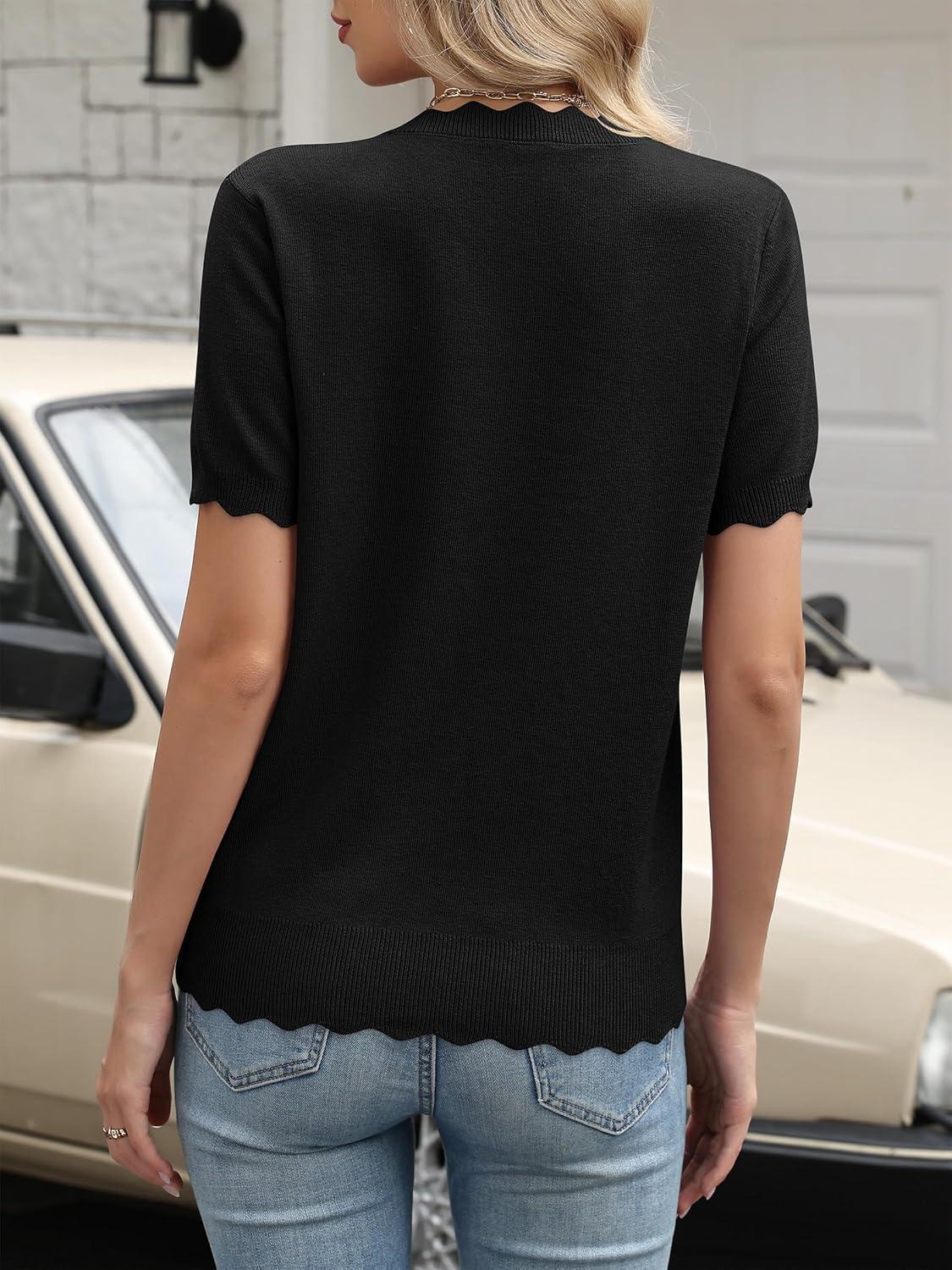 ANRABESS Womens Short Sleeve Sweater Wool Blend Scalloped Cute Summer Dressy Tops Business Casual Loose Vacation Outfits 2026(Black)