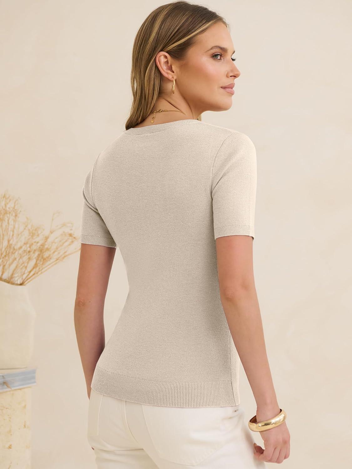 ANRABESS Womens 100% Wool Short Sleeve Summer Sweaters Dressy Casual Blouse Work Office Top 2026 Spring Vacation Clothes(Apricot)