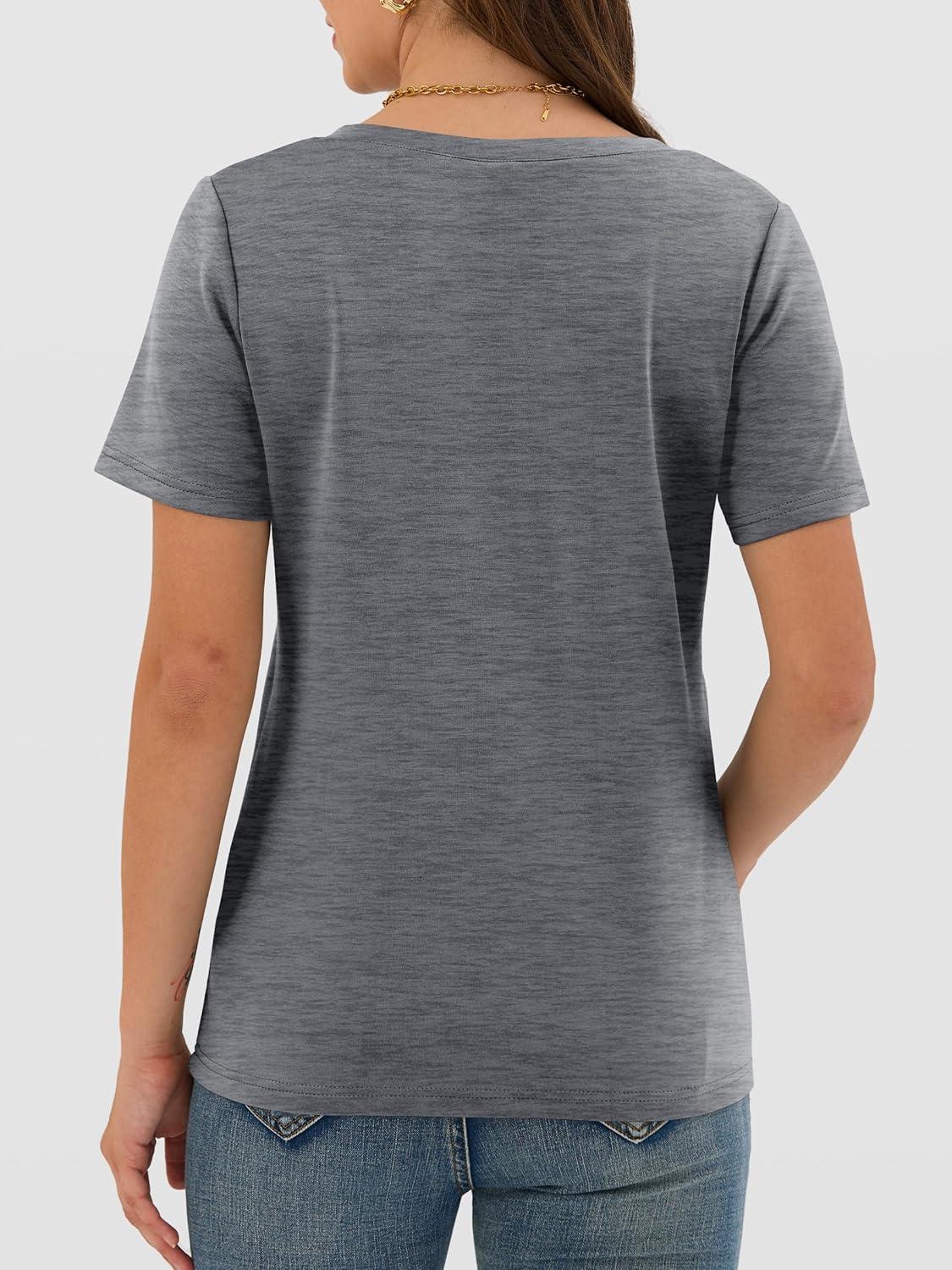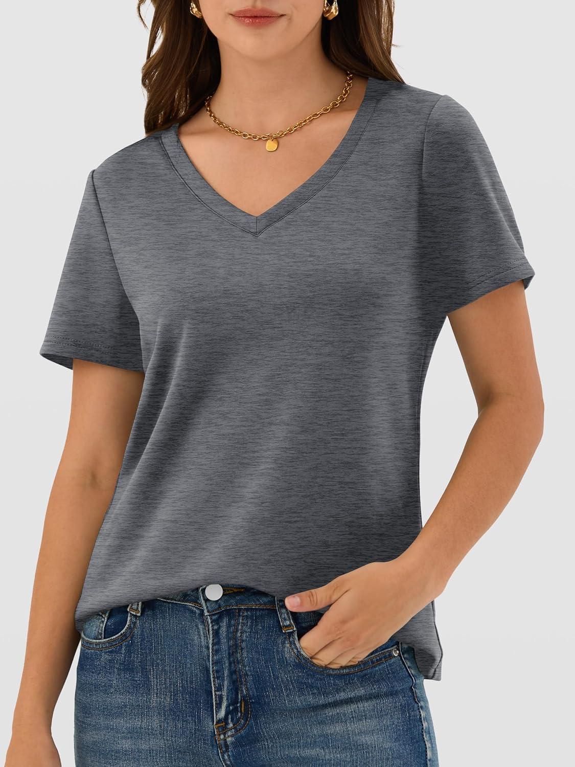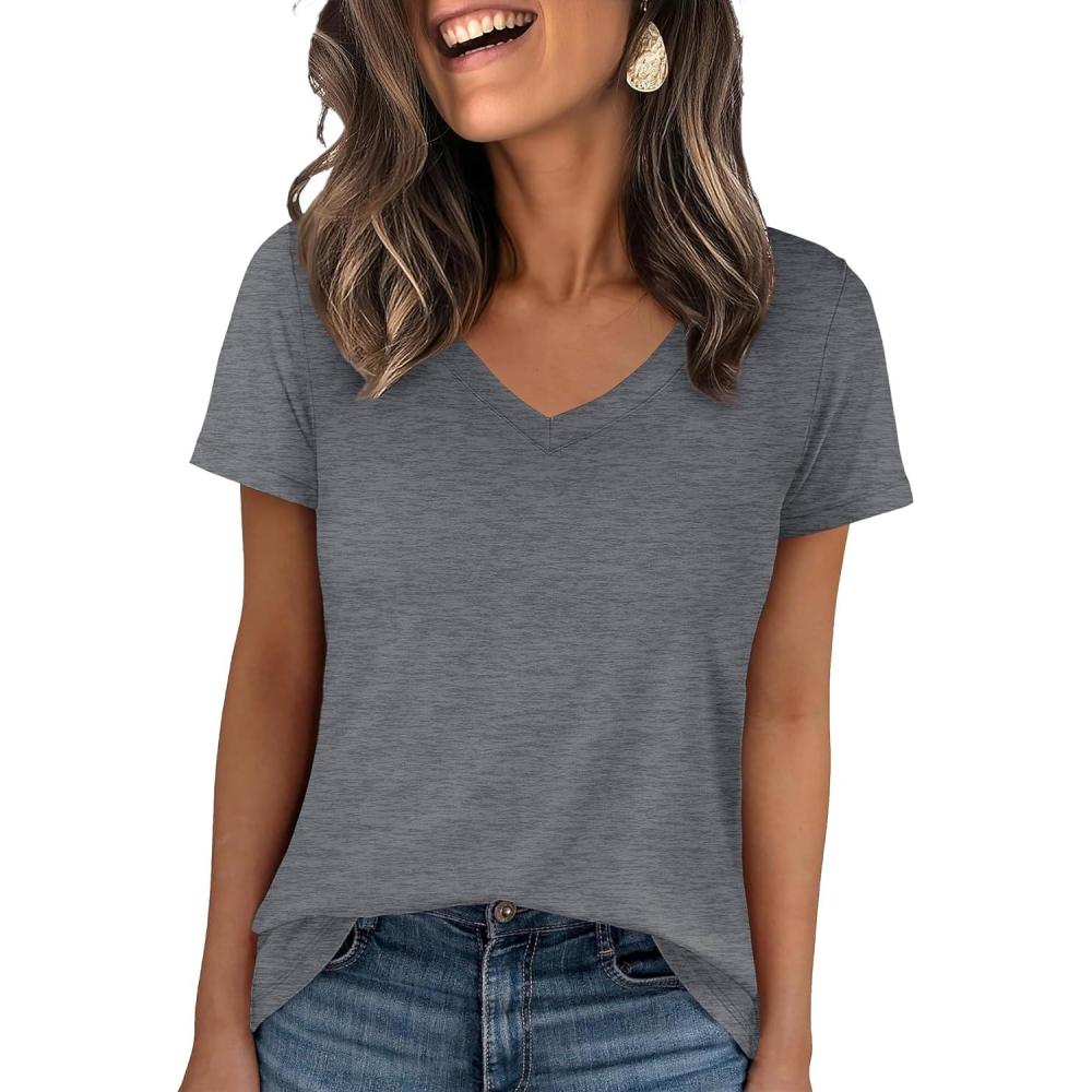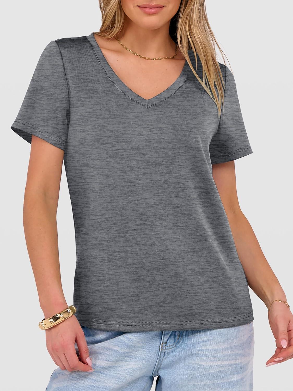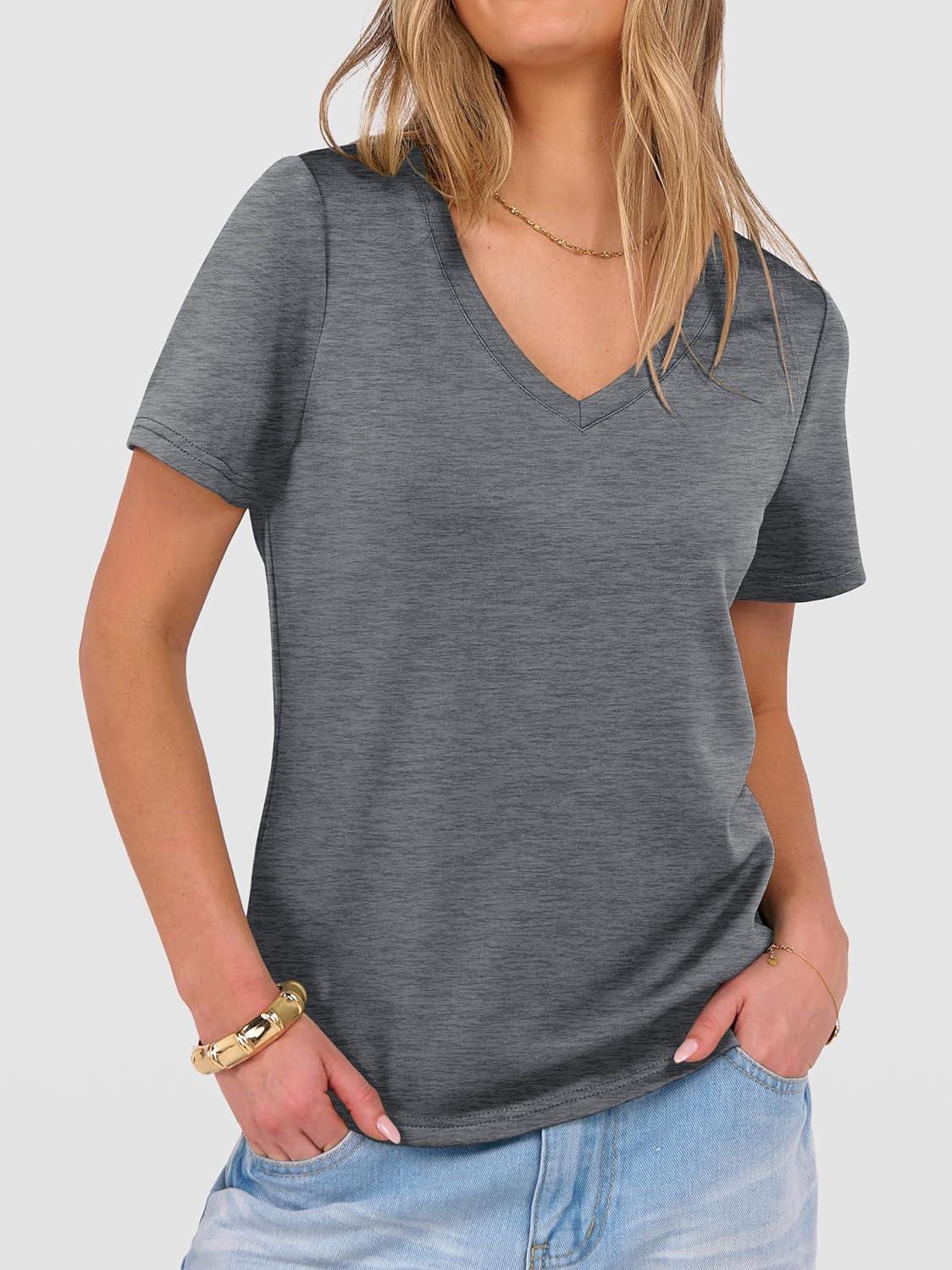 ANRABESS Womens Short Sleeve Tops Casual V Neck Wrinkle - Free Basic T Shirts Summer Cute Tee 2026 Spring Fashion Clothes(Grey)
