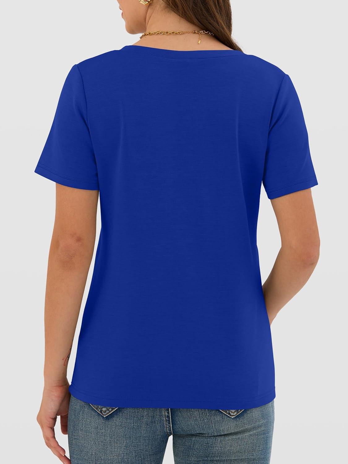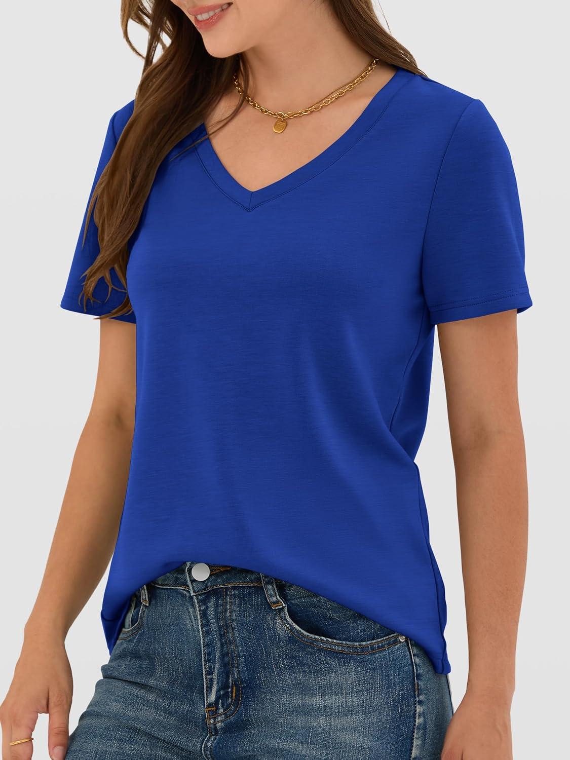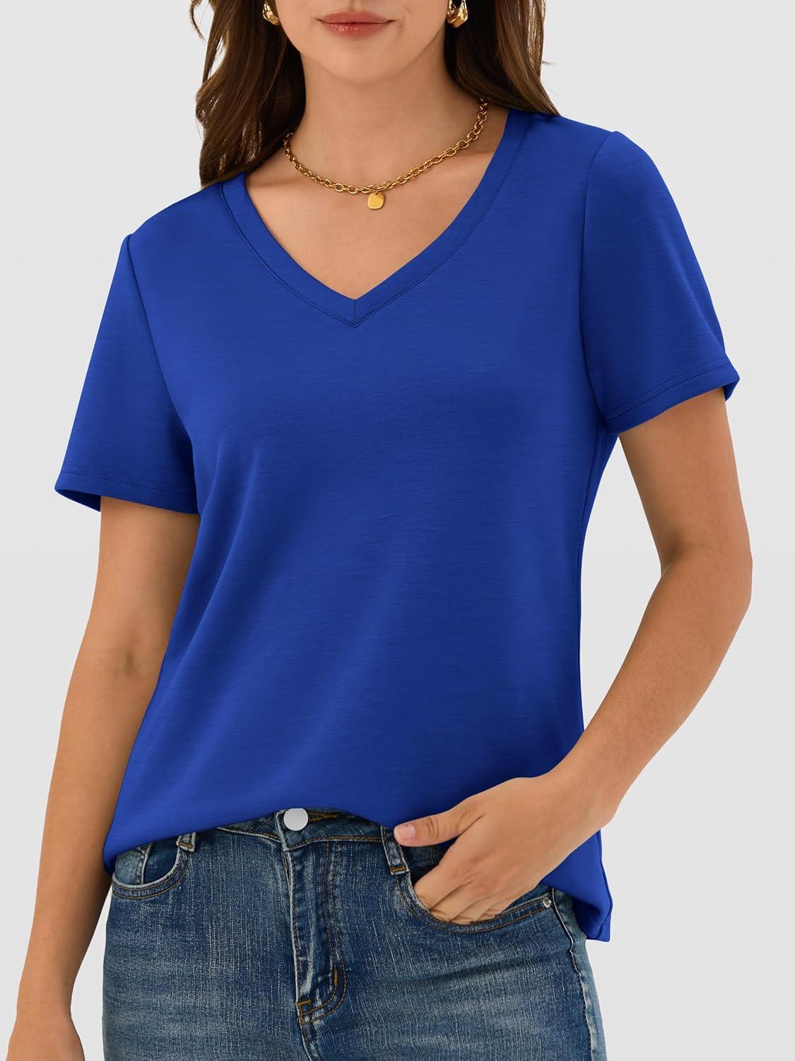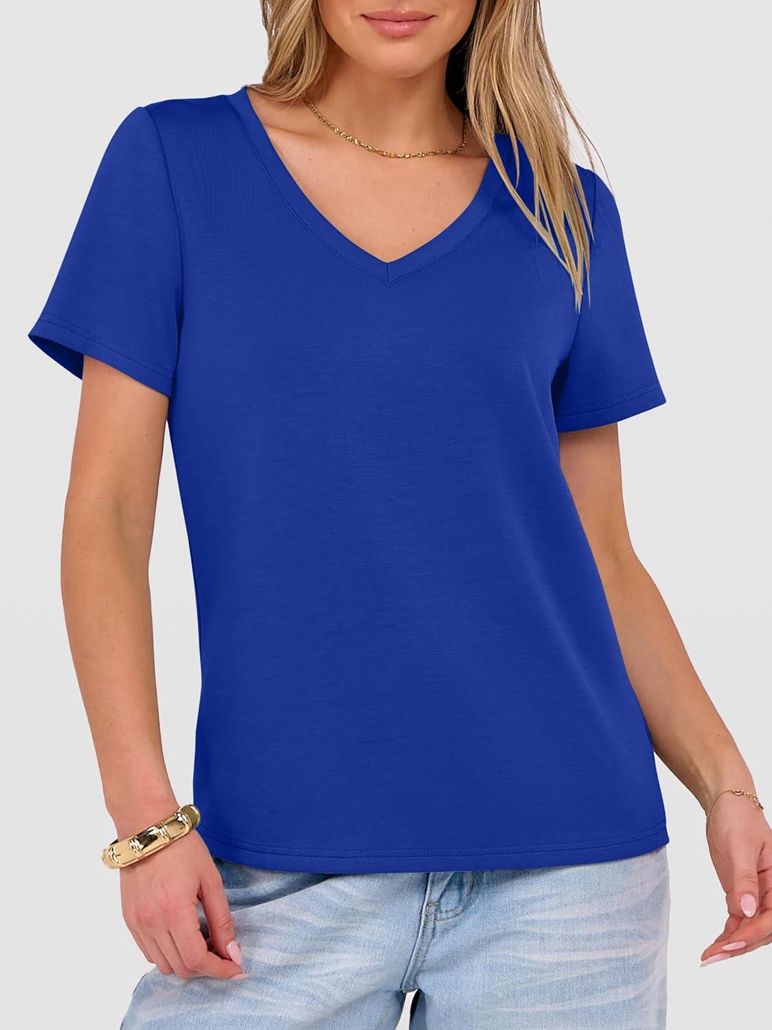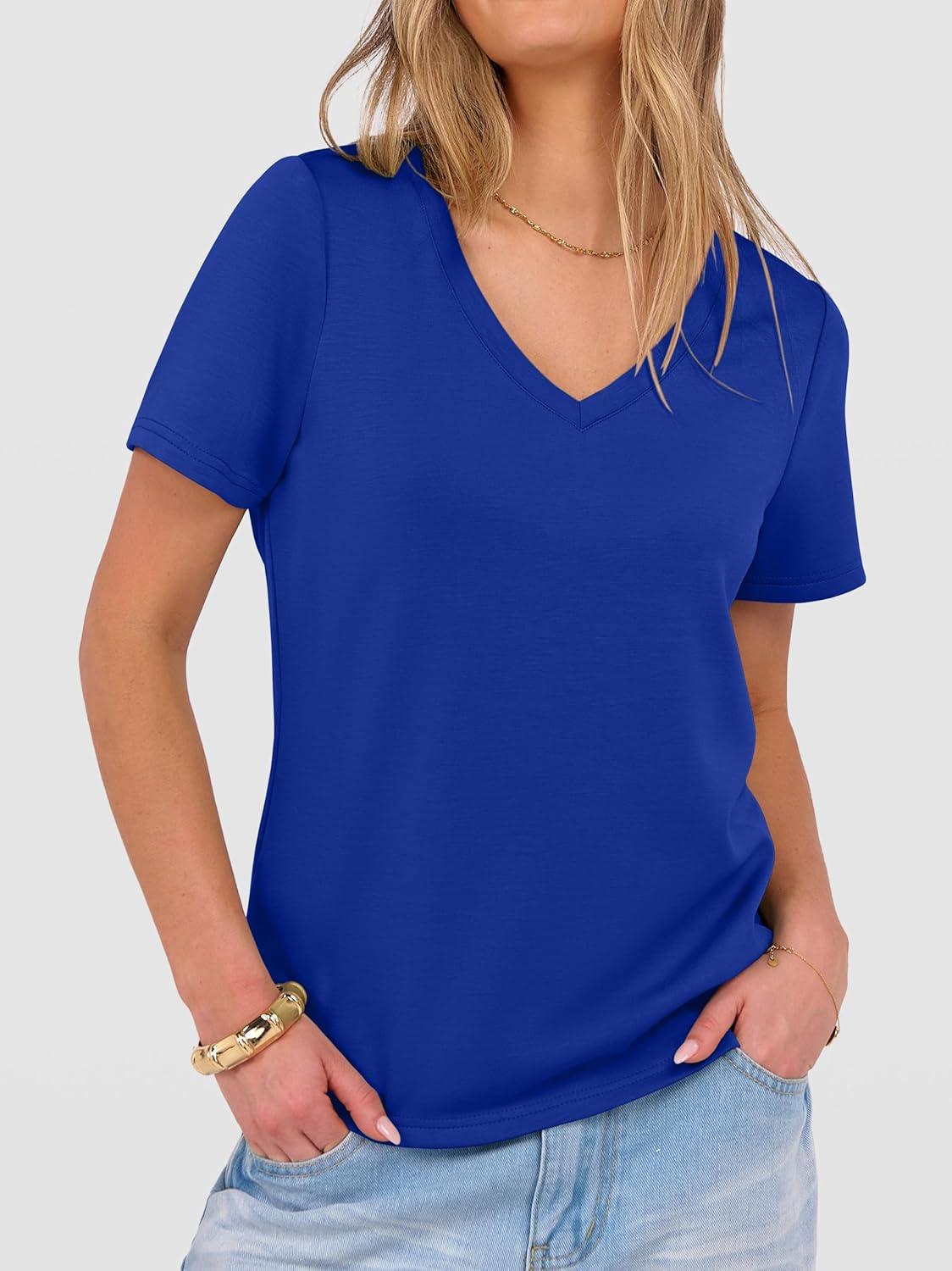 ANRABESS Womens Short Sleeve Tops Casual V Neck Wrinkle - Free Basic T Shirts Summer Cute Tee 2026 Spring Fashion Clothes(Royal Blue)