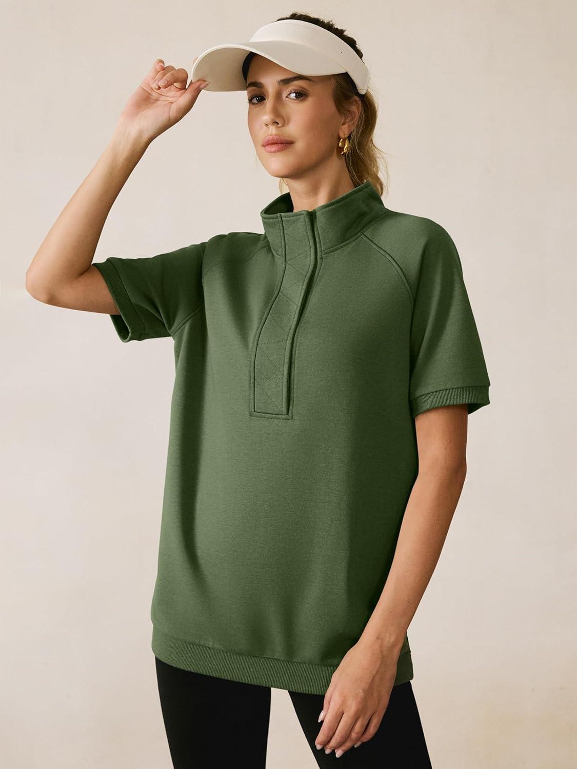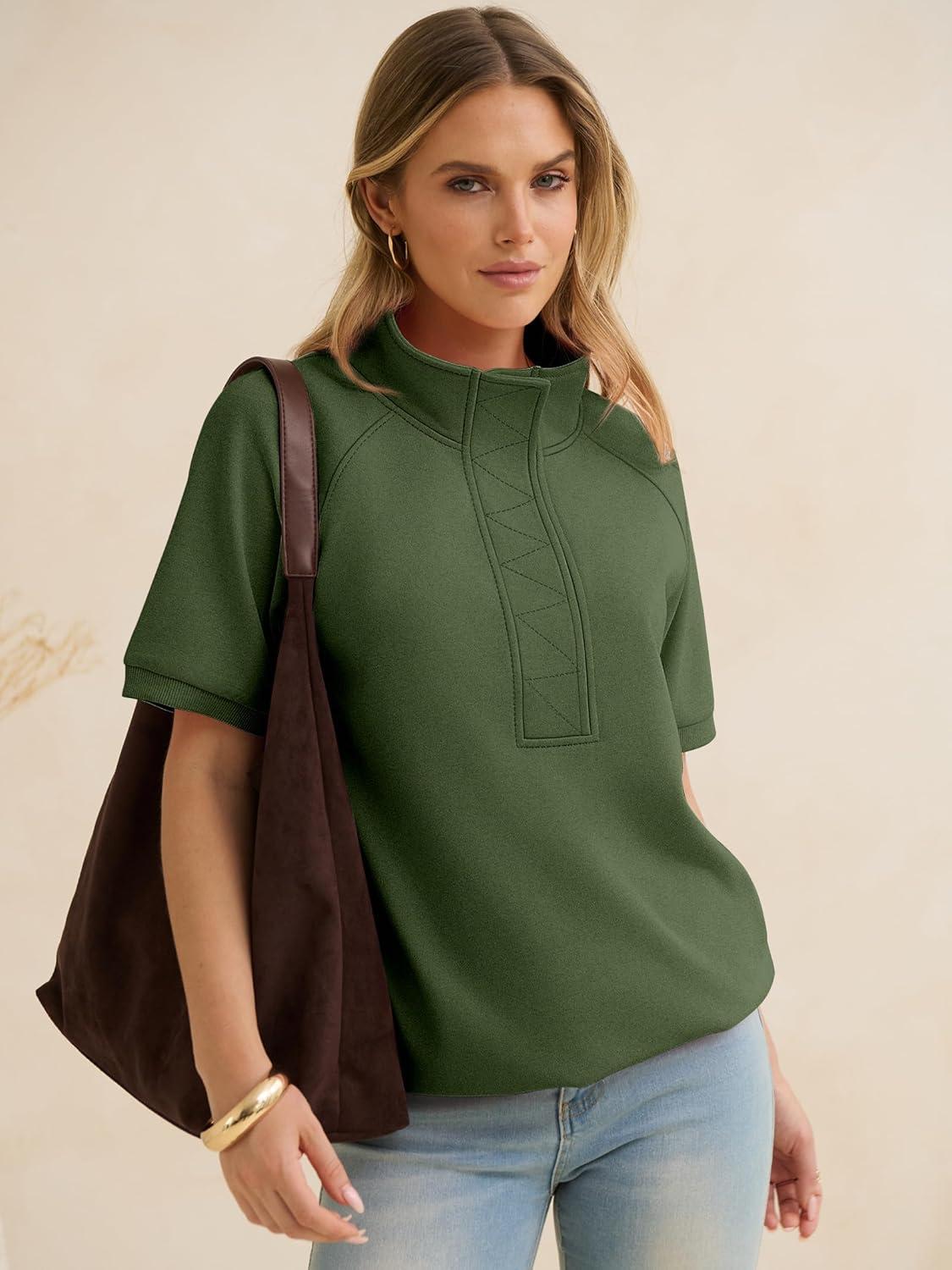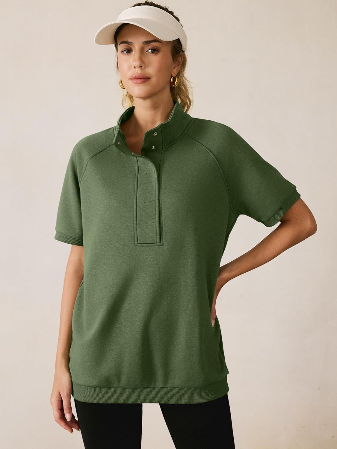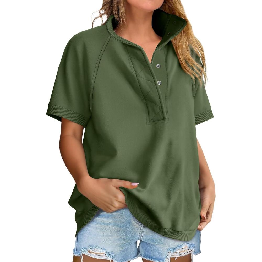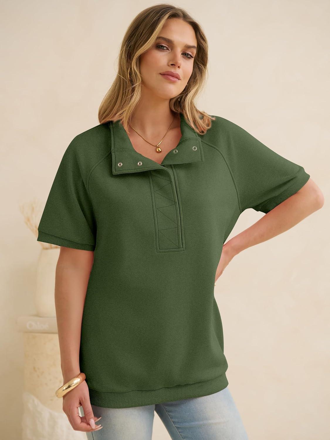 ANRABESS Womens Short Sleeve Tops Oversized Lightweight Sweatshirt Polo Shirts 2026 Summer Casual Button Pullover Top Outfits(Army Green)
