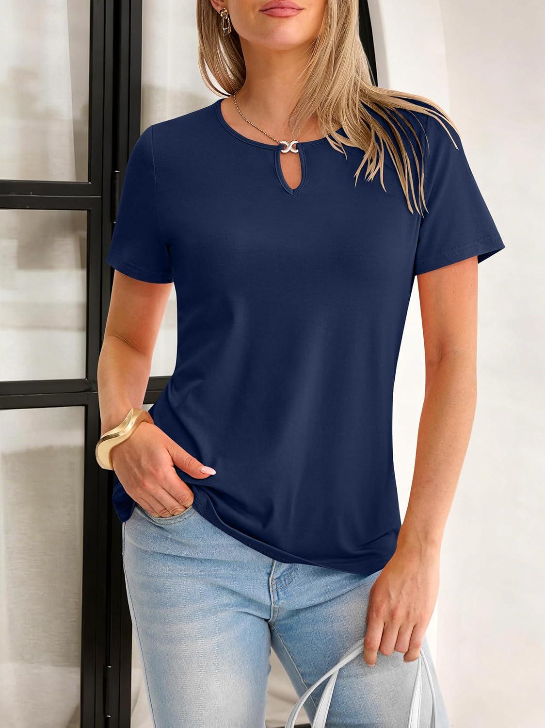 ANRABESS Womens Short Sleeve Tops Summer Tshirts Cute Keyhole Neck Casual Basic Tee Dressy Work 2026 Spring Trendy Outfits(Deep Royal Blue)