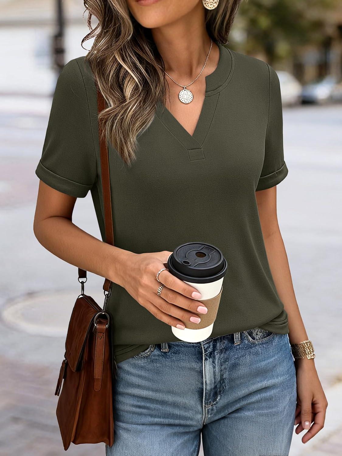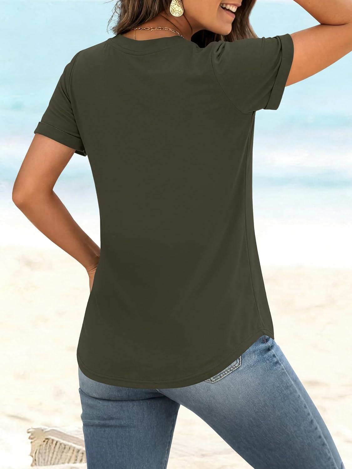 ANRABESS Womens Short Sleeve V Neck Tops Summer Casual T-Shirts Blouses 2026 Spring Trendy Beach Vacation Clothes(Army Green)