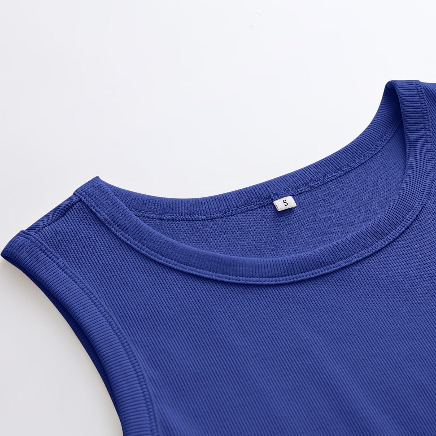 ANRABESS Womens Sleeveless High Neck Tank Tops Fashion Summer Casual Basic Slim Fit Ribbed Racerback Top Shirt Clothes(Klein Blue)