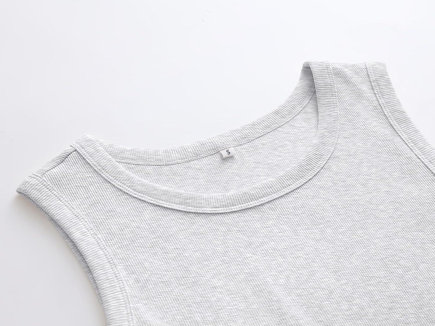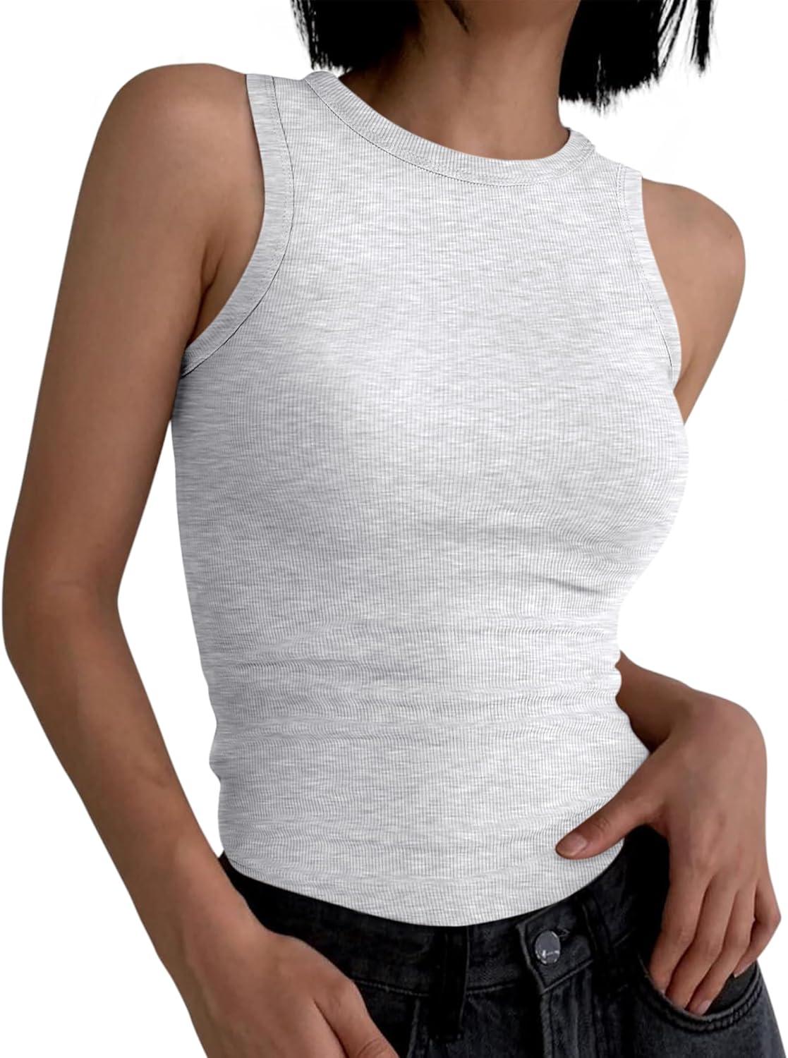 ANRABESS Womens Sleeveless High Neck Tank Tops Fashion Summer Casual Basic Slim Fit Ribbed Racerback Top Shirt Clothes(Light Gray)